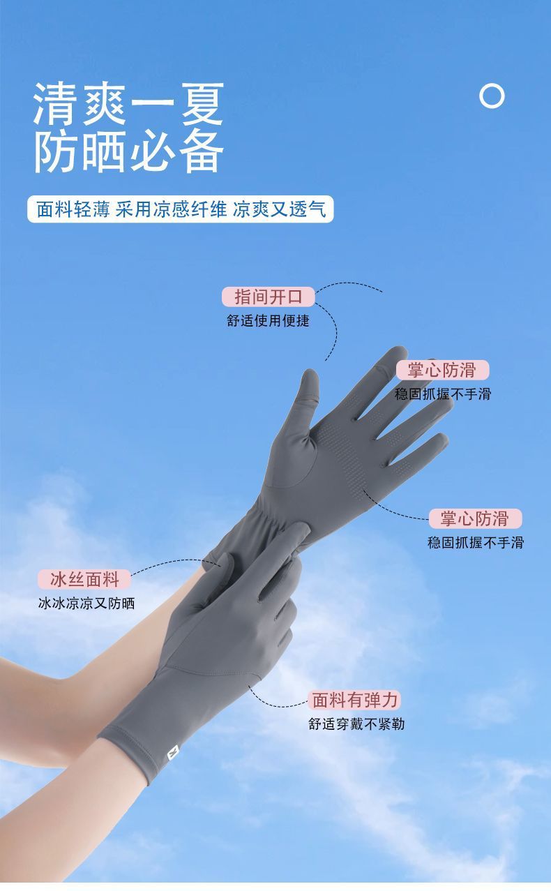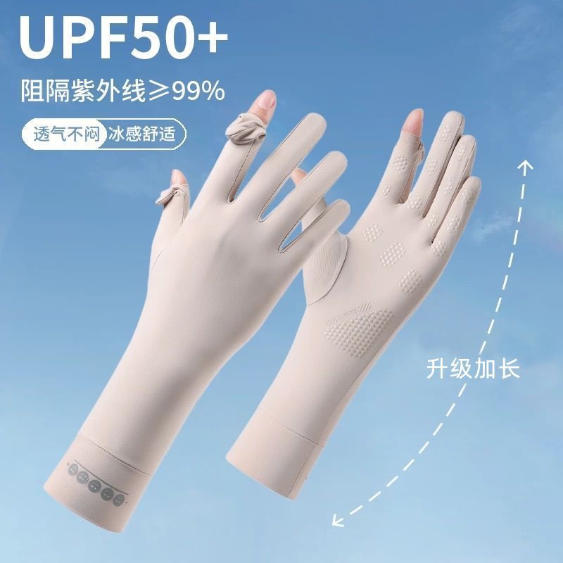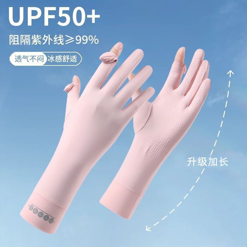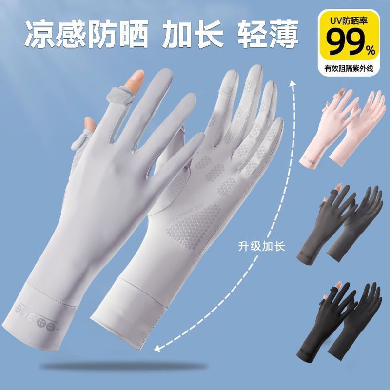冰丝防晒手套女夏骑车防滑防紫外线加长护腕触屏冰感防晒骑行手套