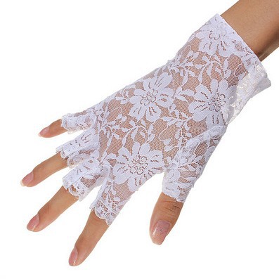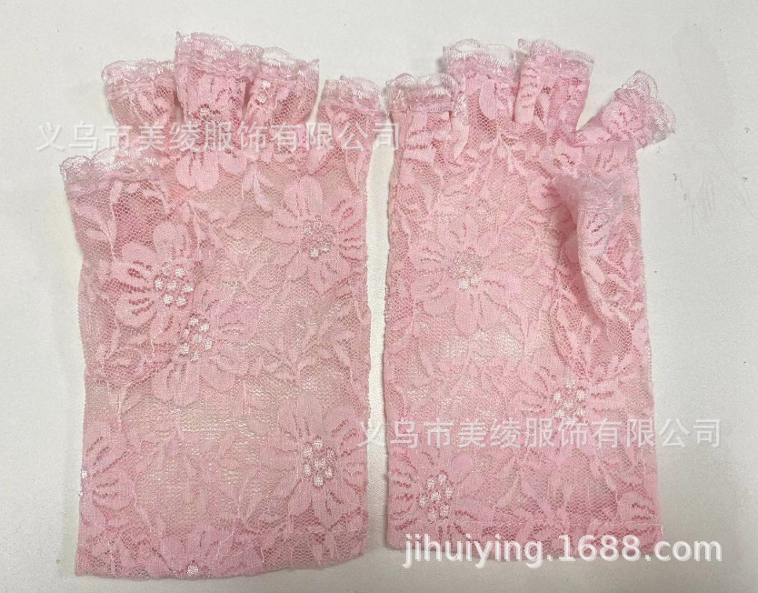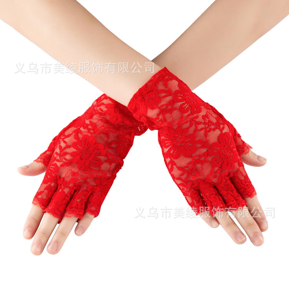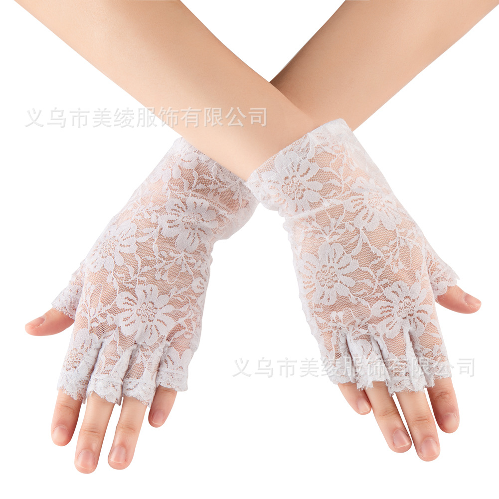 夏季女士短蕾丝半指花边防晒手套/露指蕾丝婚礼装饰手套 跨境