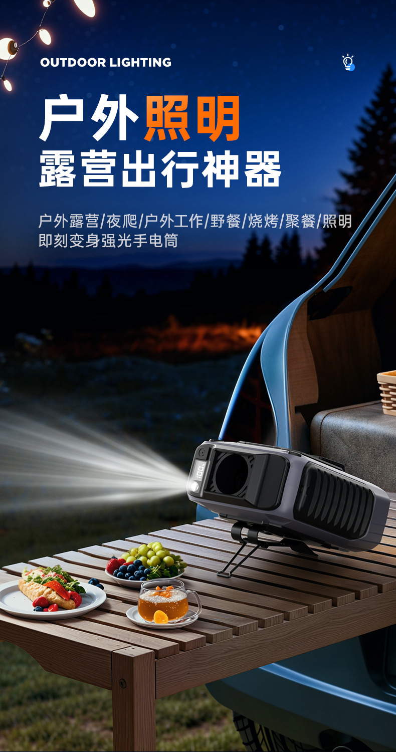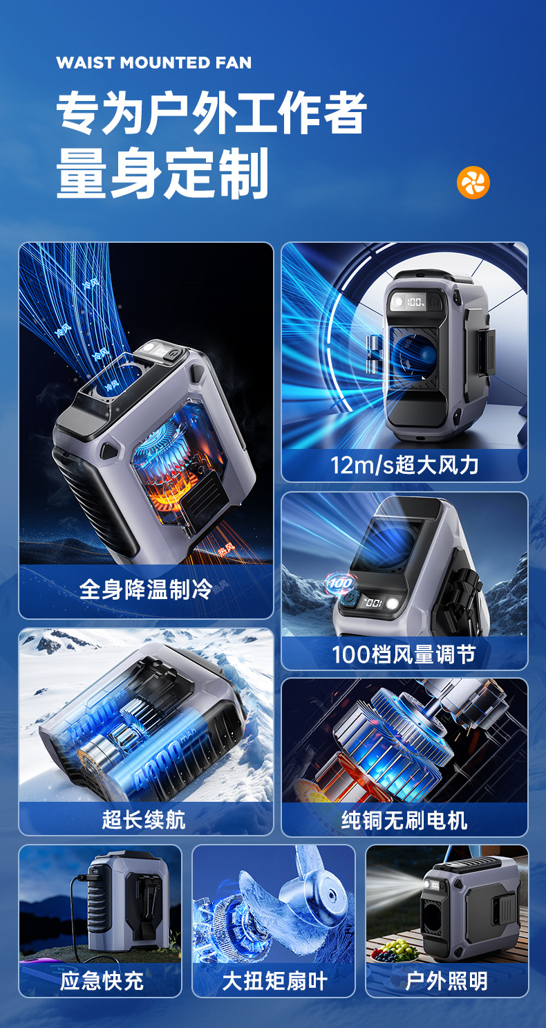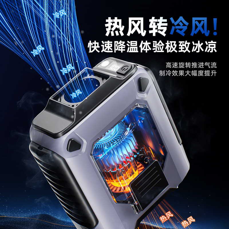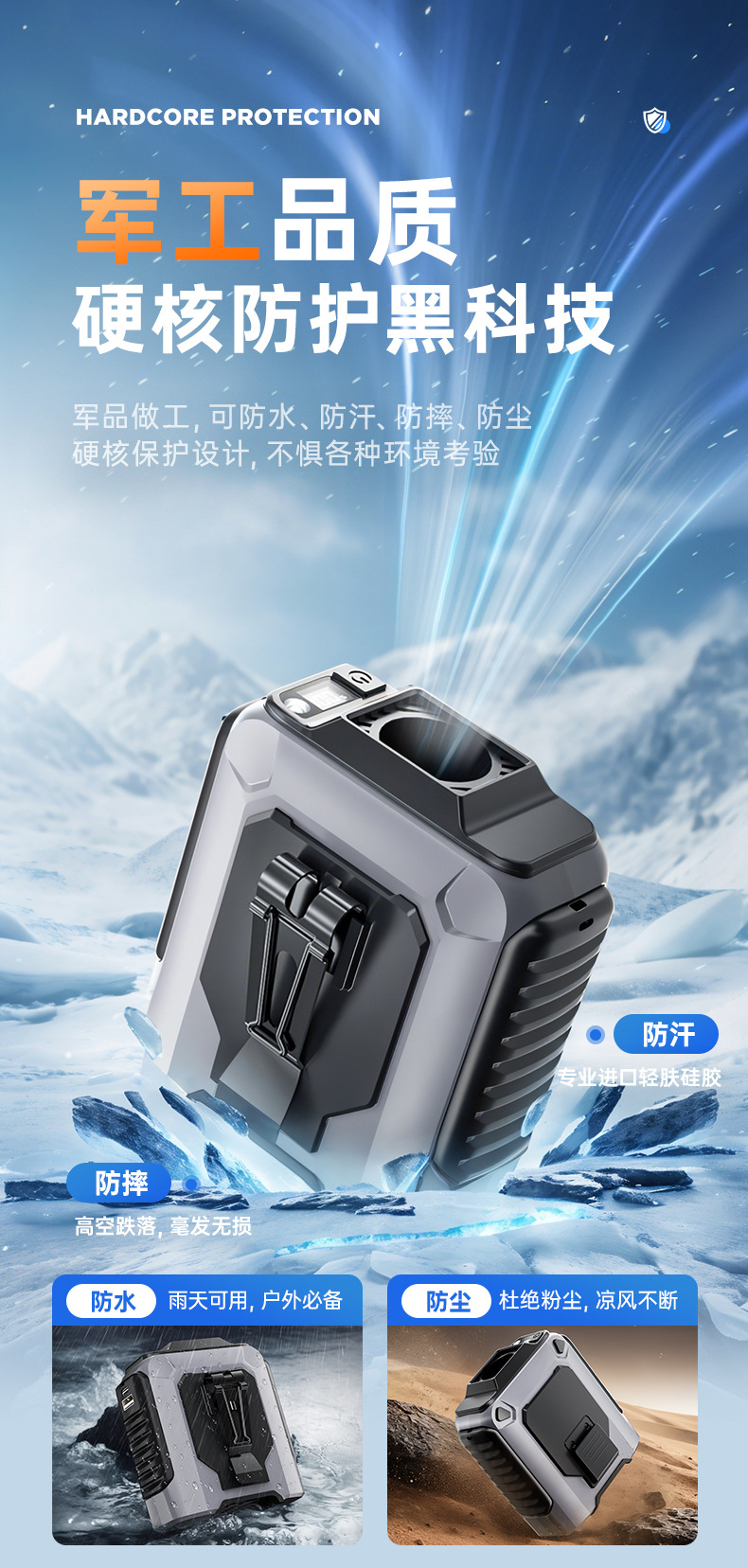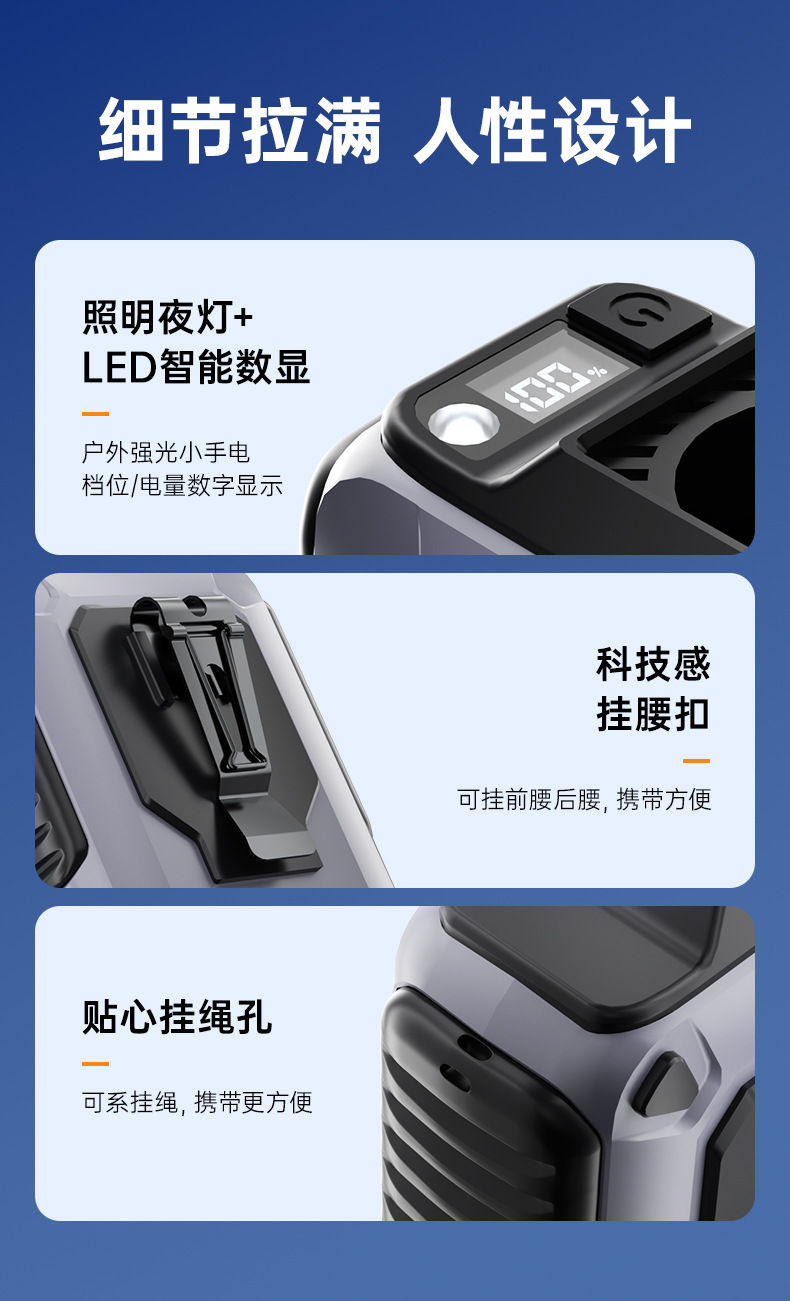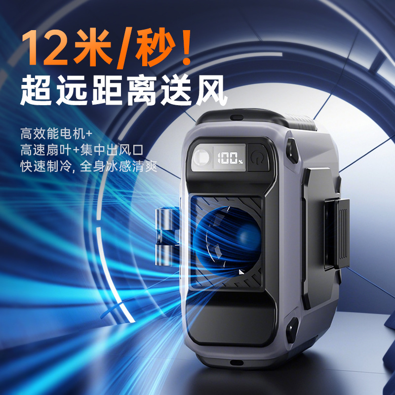 跨境户外大容量高速挂腰风扇便携式挂脖长续航暴力风扇露营小风扇