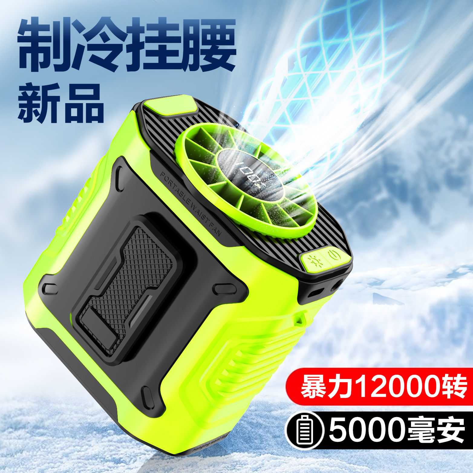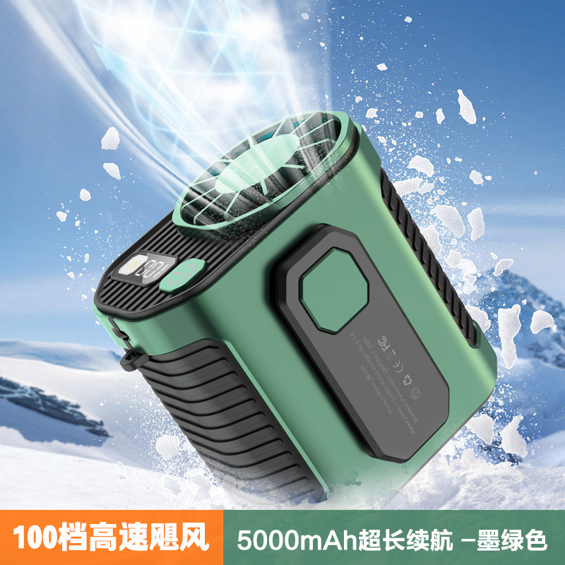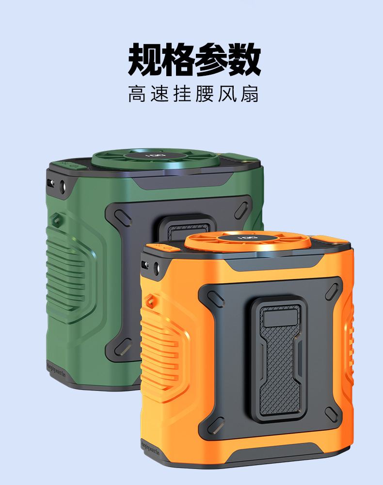 跨境2025挂腰电风扇工地户外制冷大风力便携腰挂充电式小风扇照明