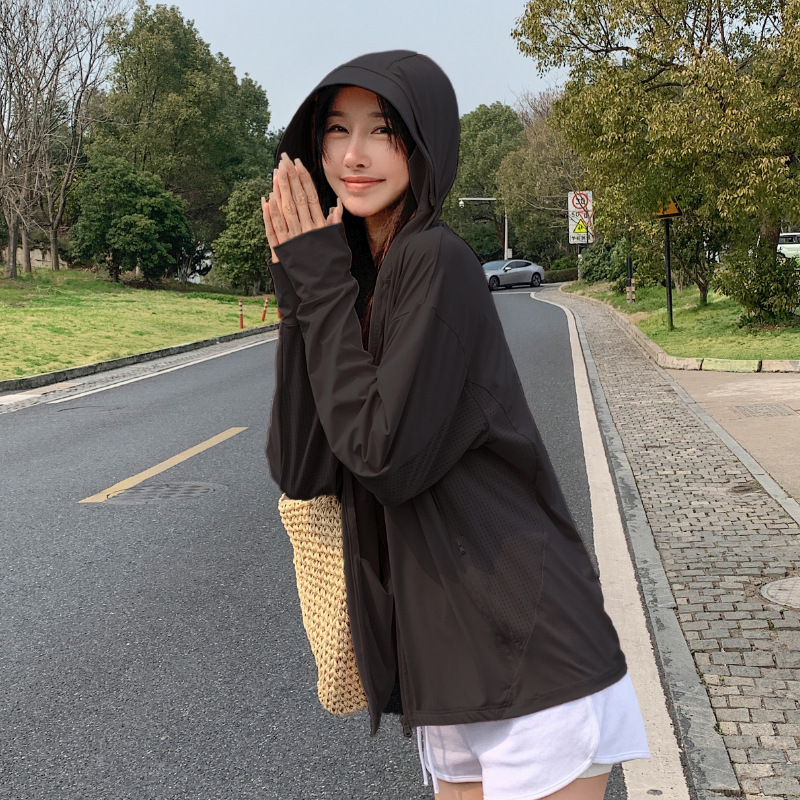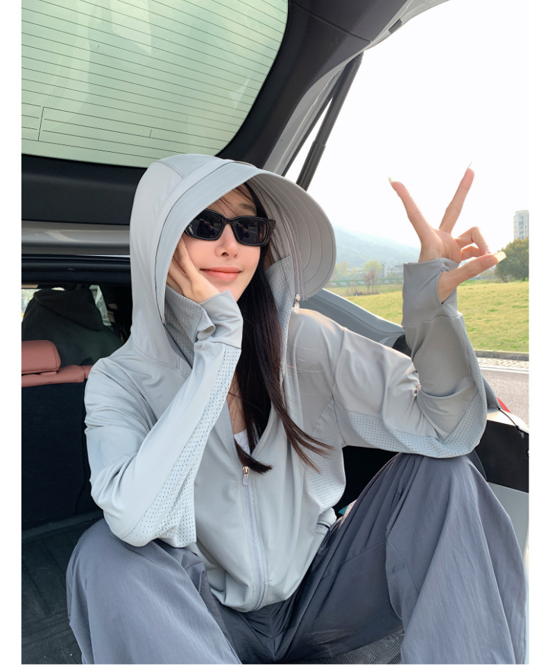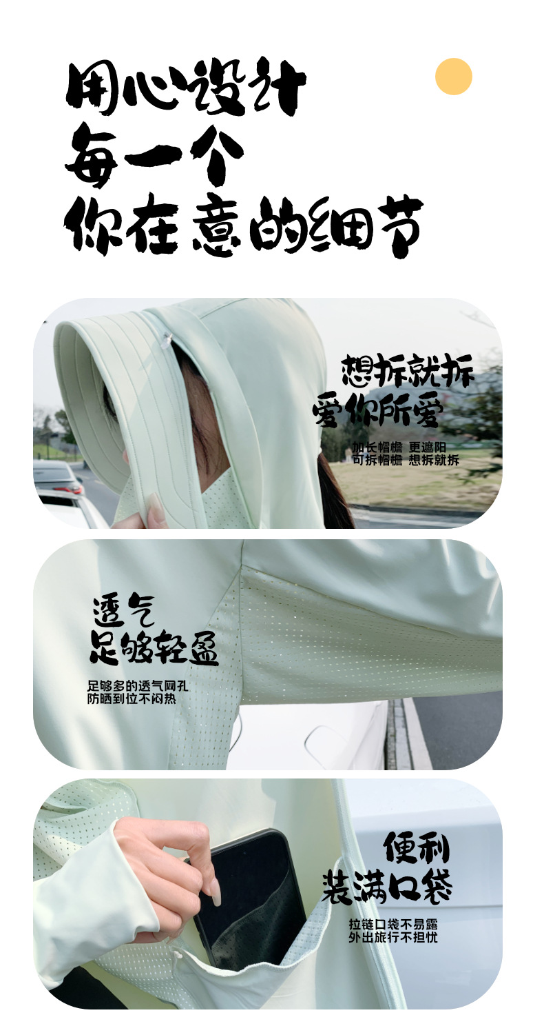 户外锦纶原纱防晒衣女2025新款可拆卸黑胶大帽檐冰丝凉感防晒服男