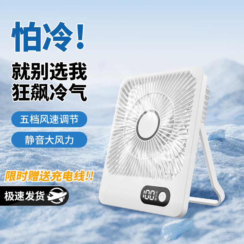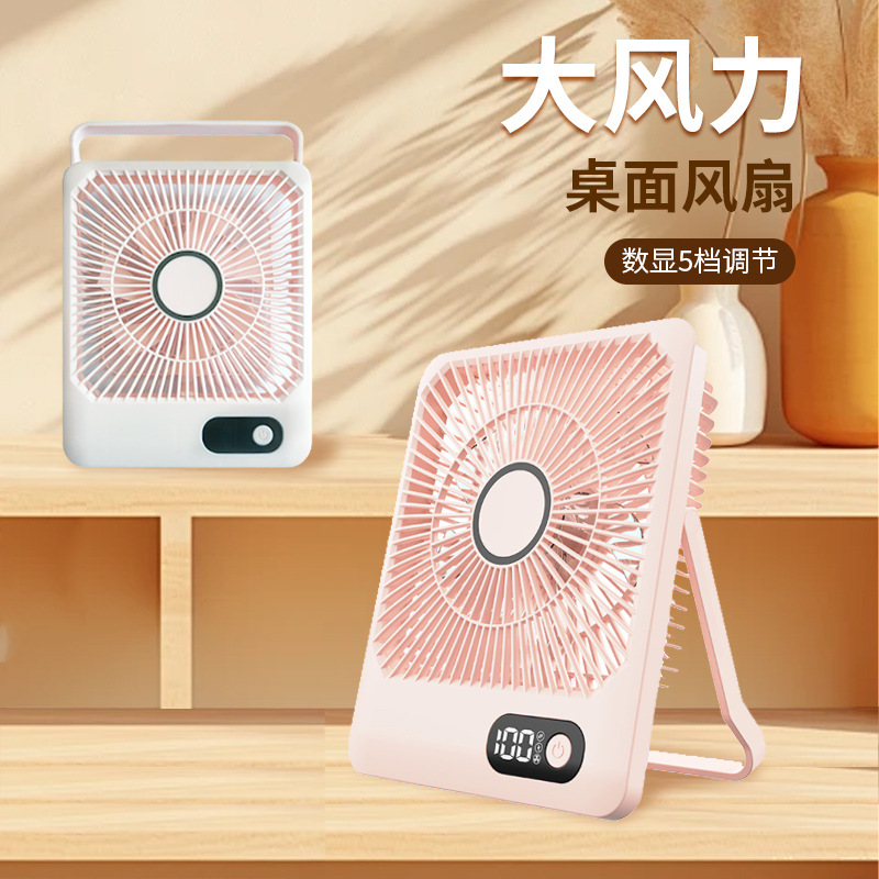 跨境新款小型迷你充电风扇便携usb静音小风扇数显手持桌面小风扇