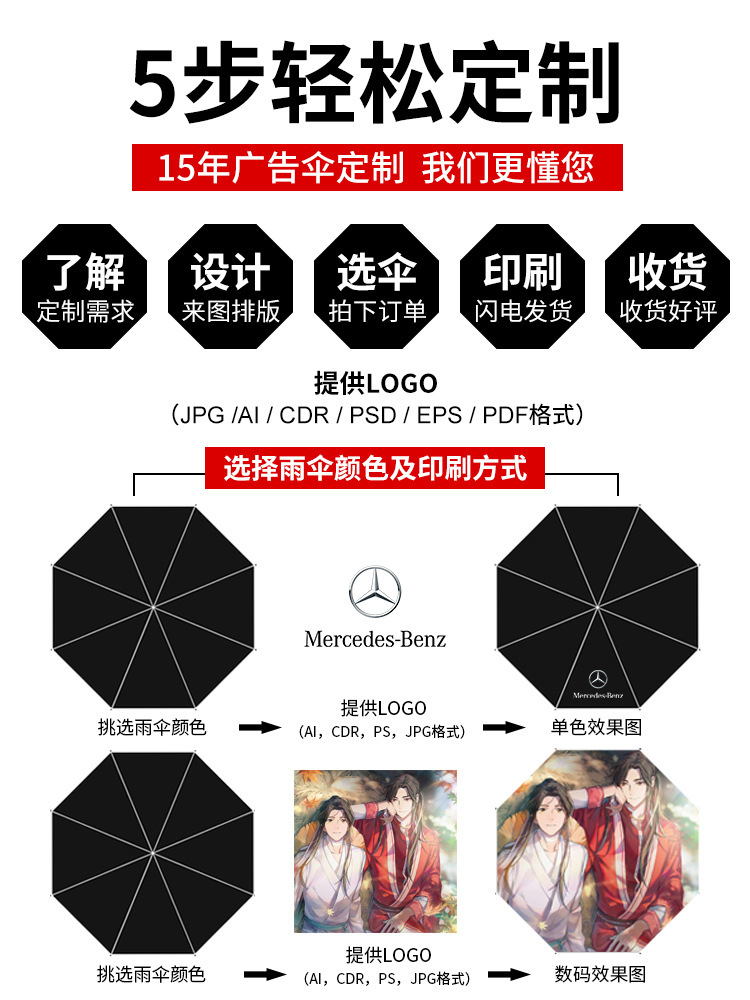 数码印雨伞图案定制动漫插画文创伞满版印刷广告伞防晒礼品伞自动