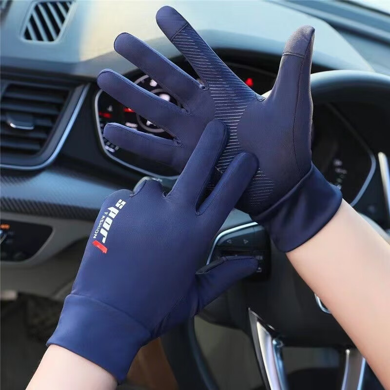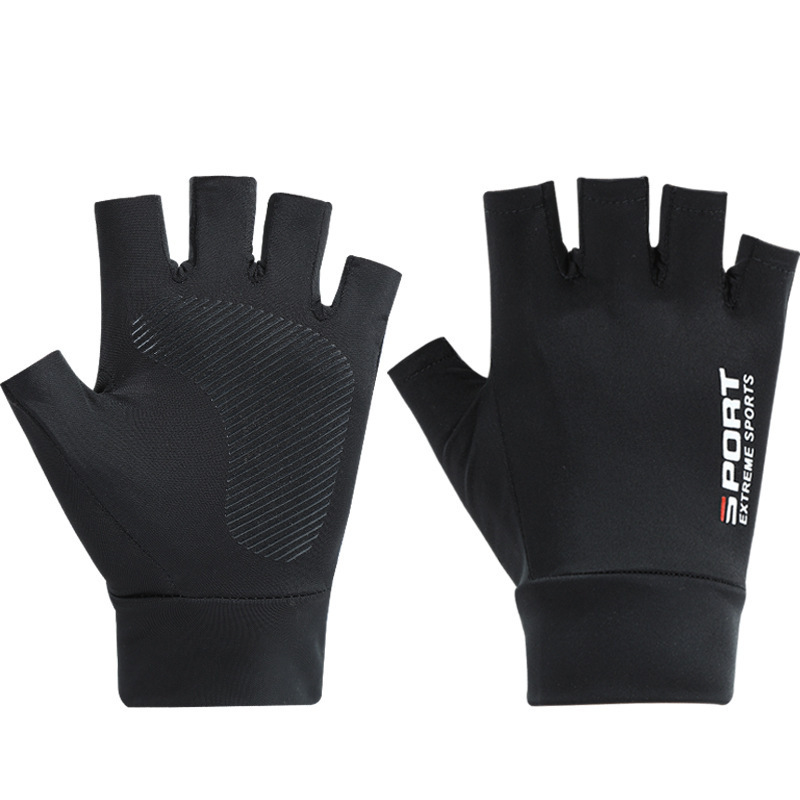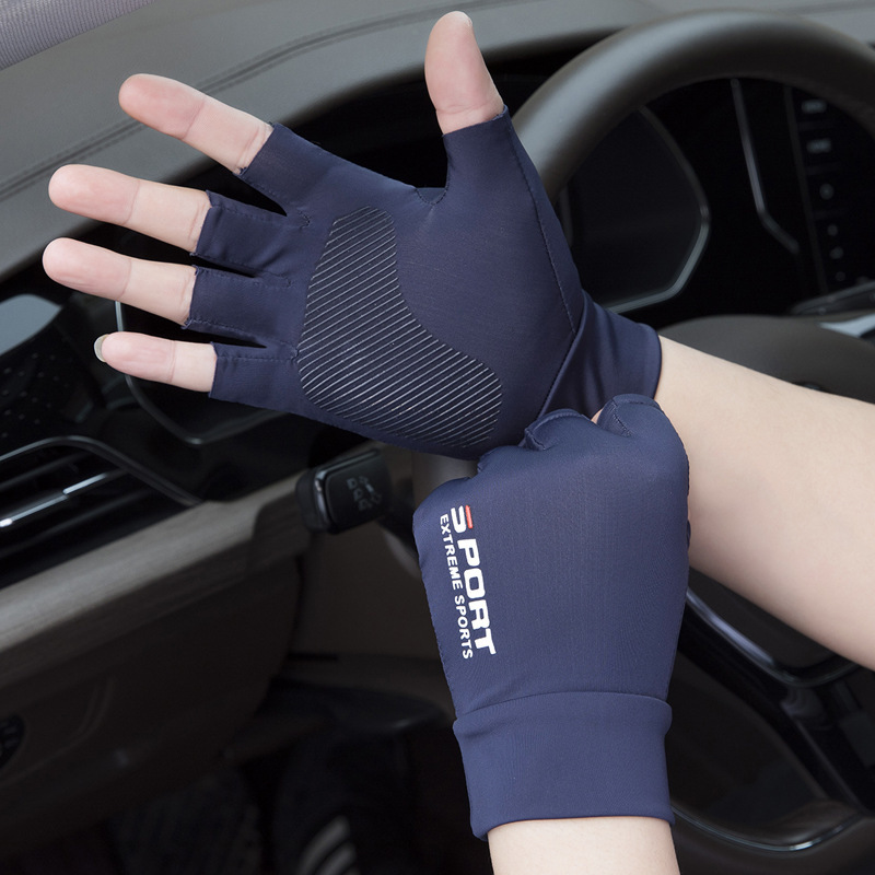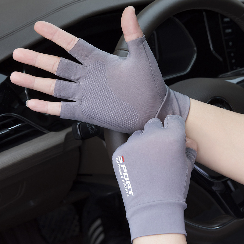 外卖骑行防晒手套男夏季漏指薄款冰丝透气手套开车漏二指钓鱼半指