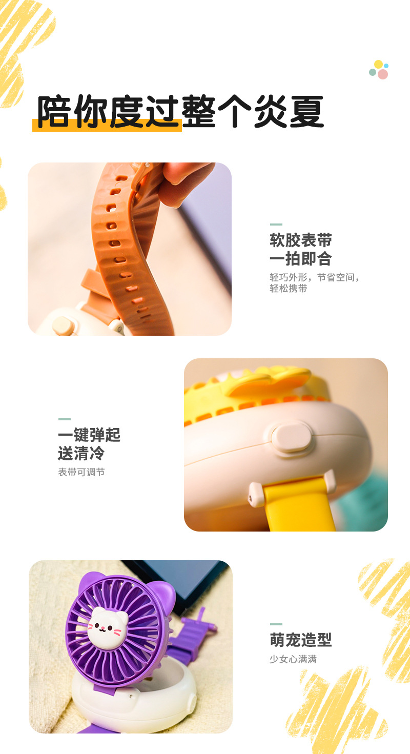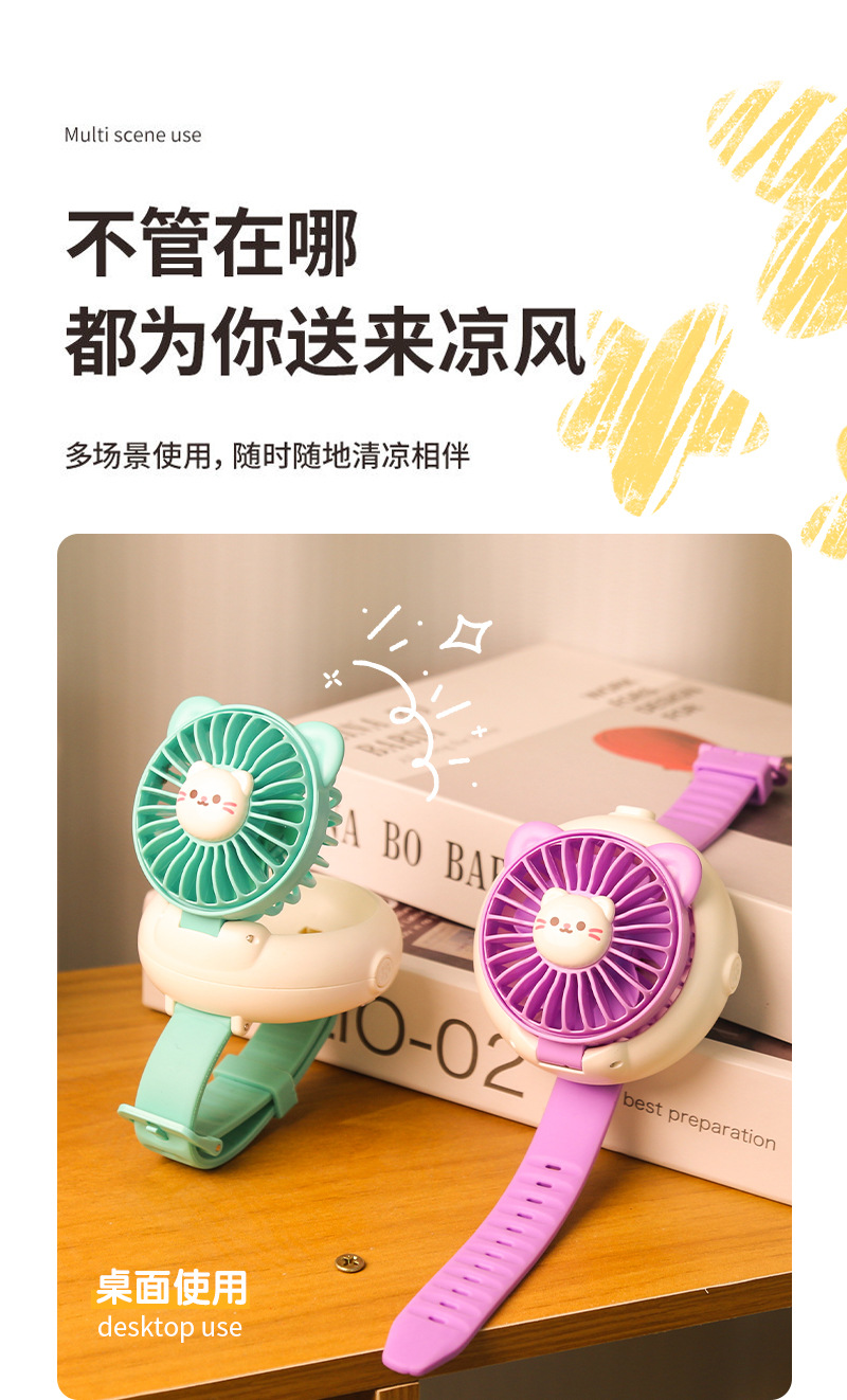 2026卡通手表风扇手持小风扇usb充电学生便携夏天迷你电扇儿童礼