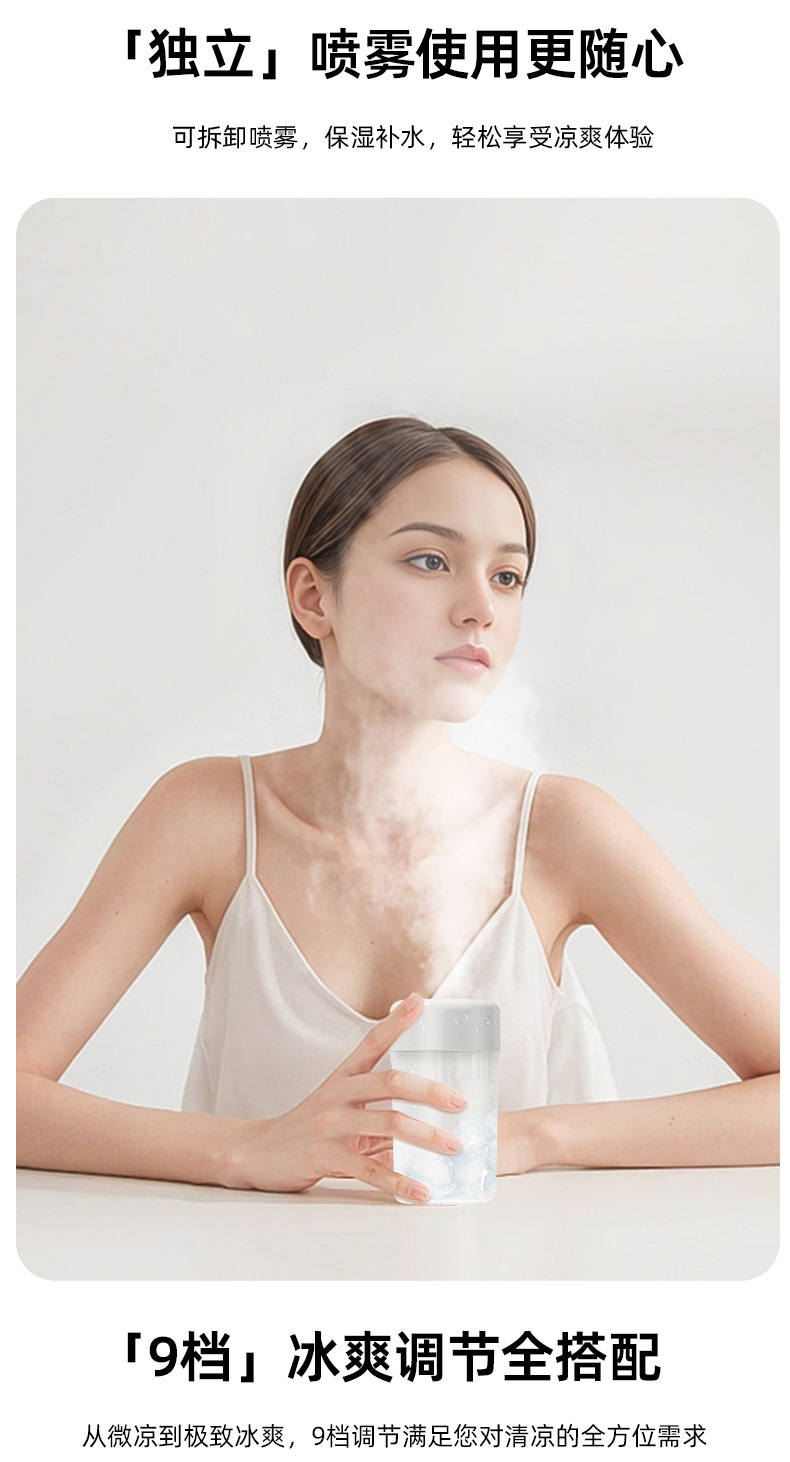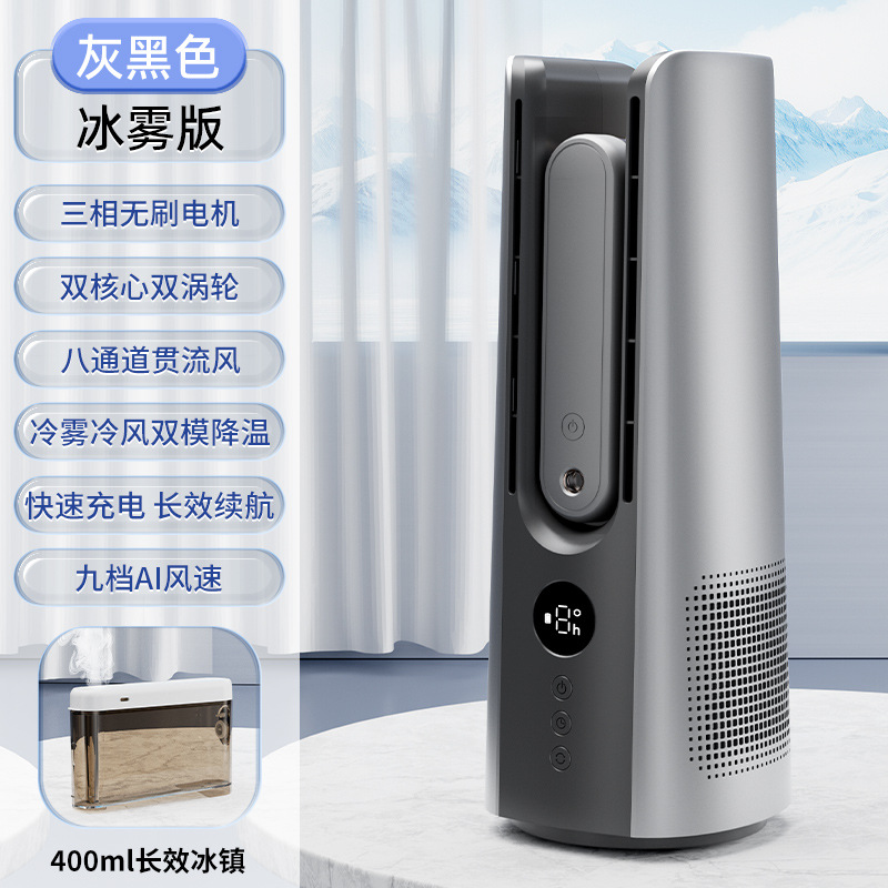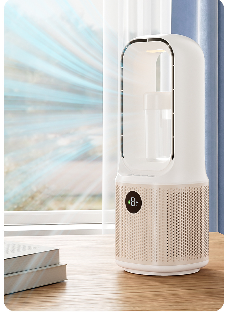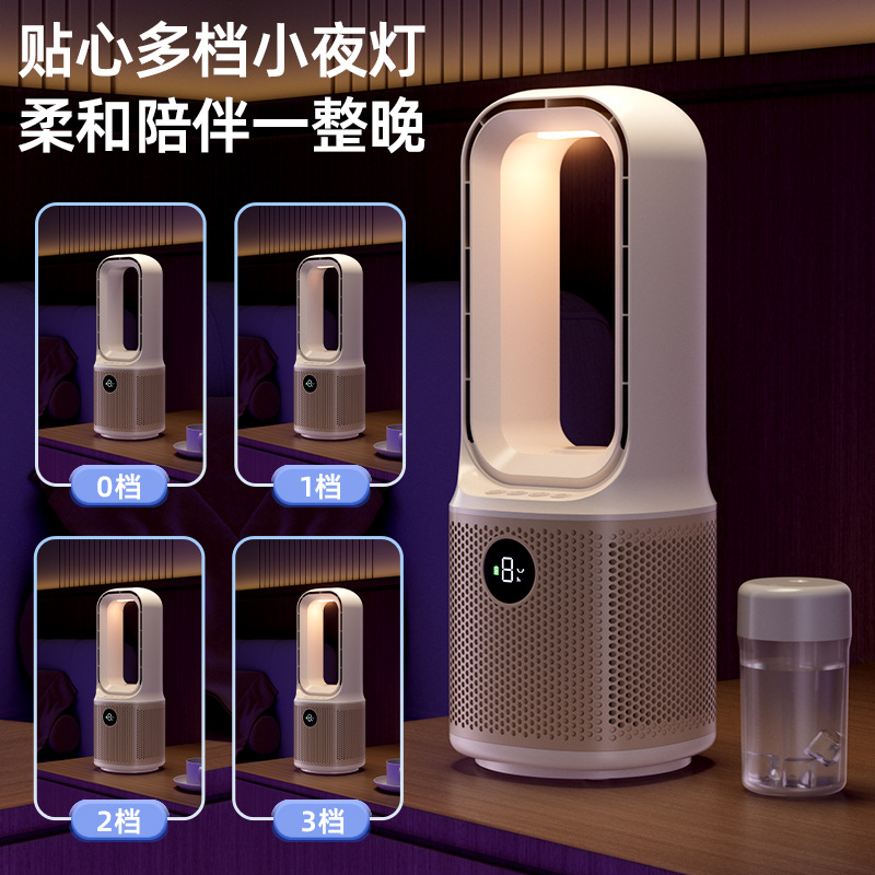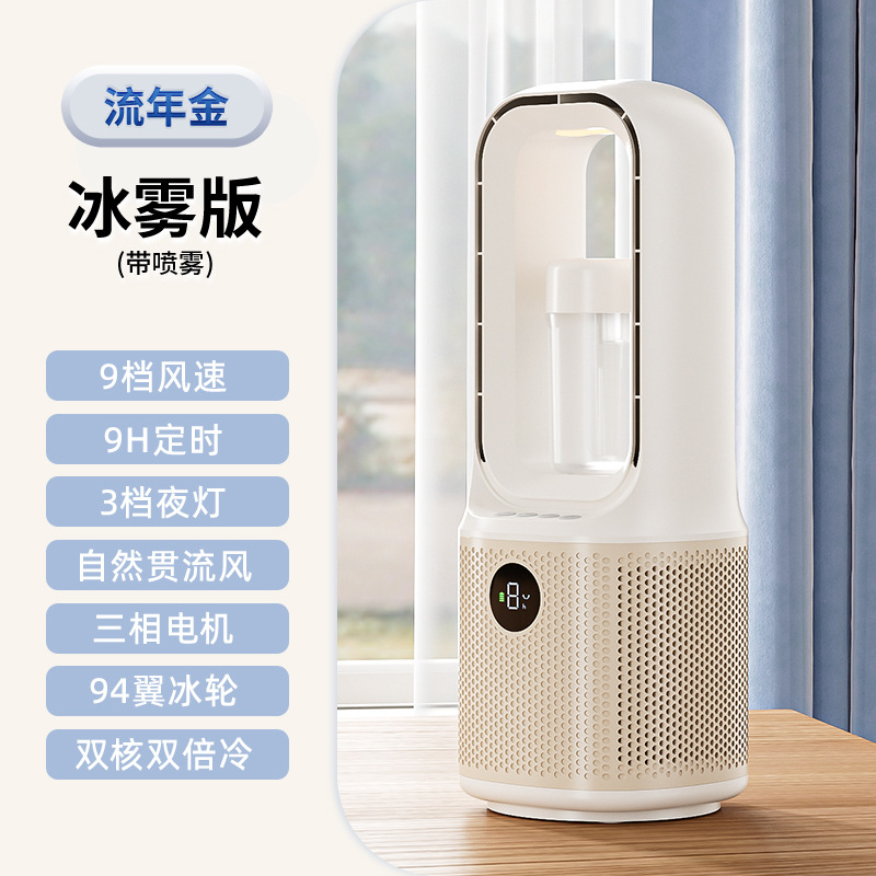 喷雾无叶循环2025冷风新款跨境桌面夜灯充电涡轮迷你加湿宿舍风扇
