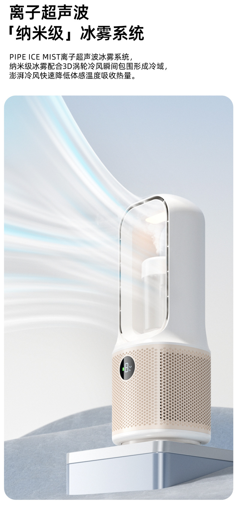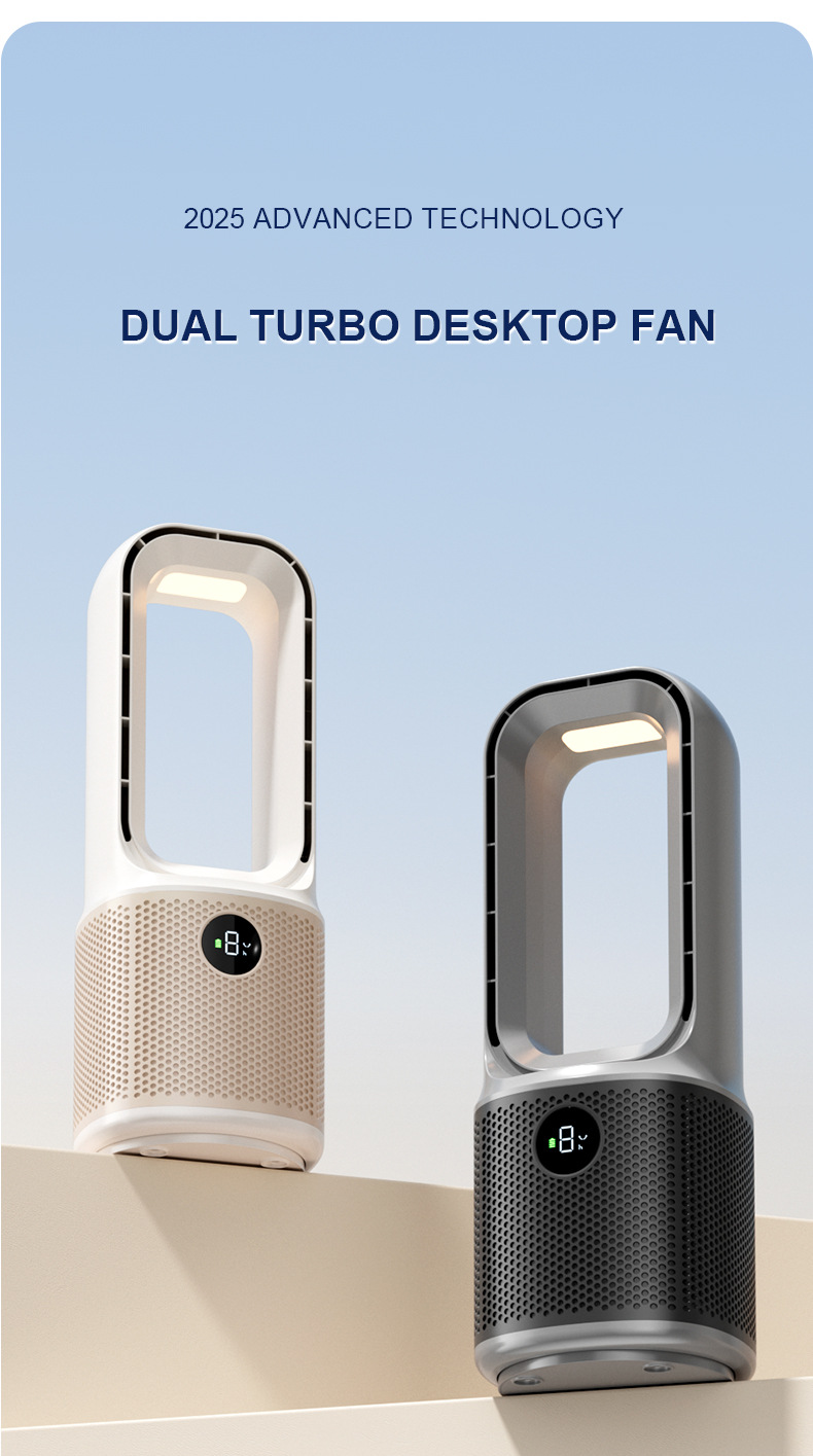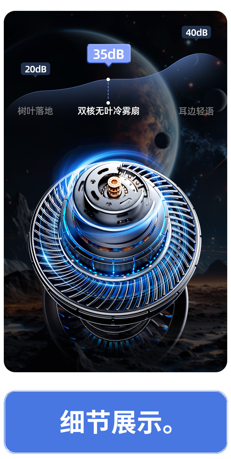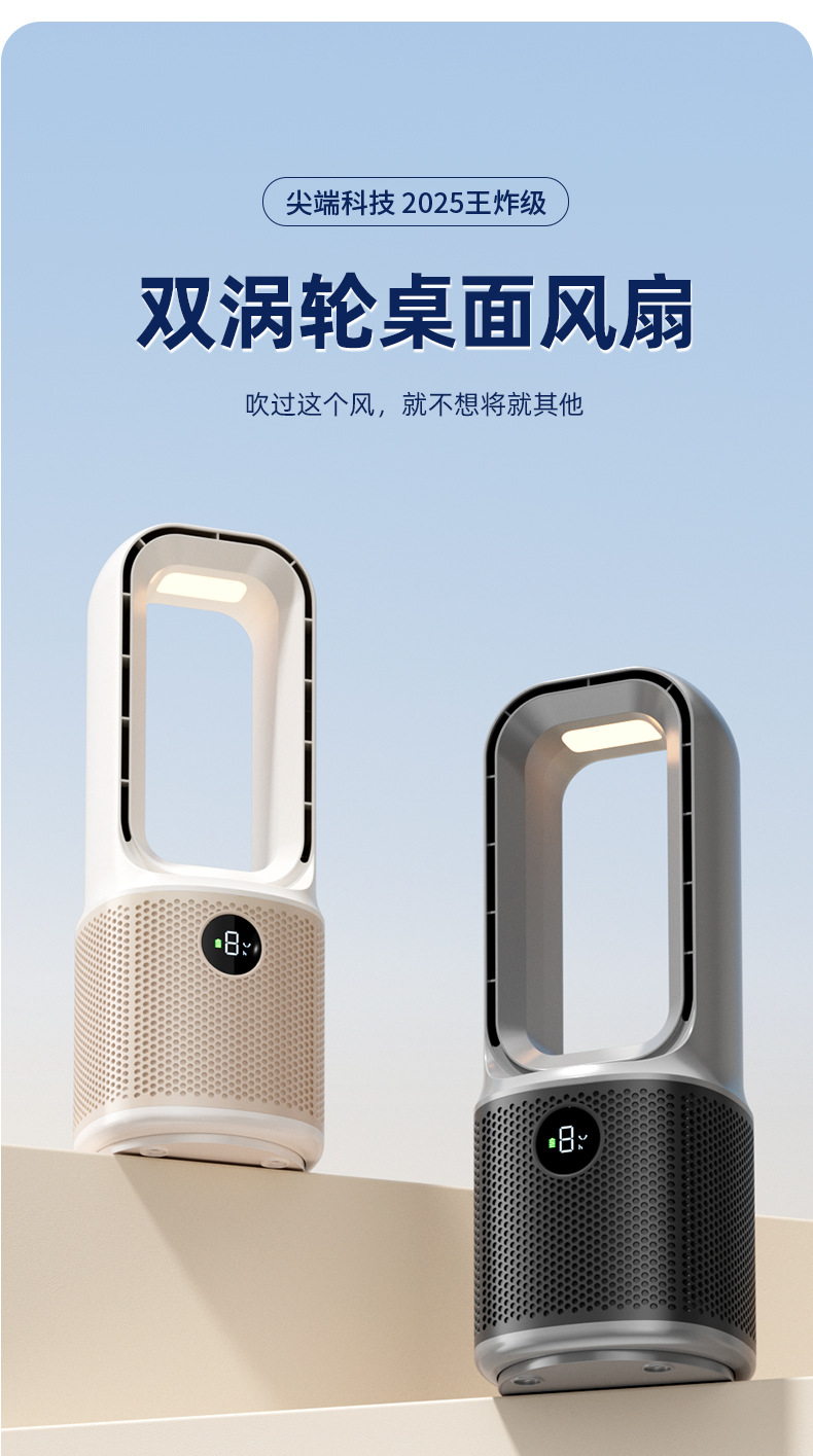 喷雾无叶循环2025冷风新款跨境桌面夜灯充电涡轮迷你加湿宿舍风扇