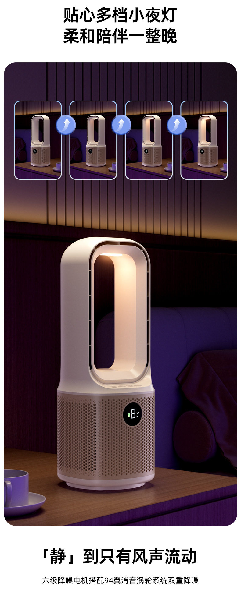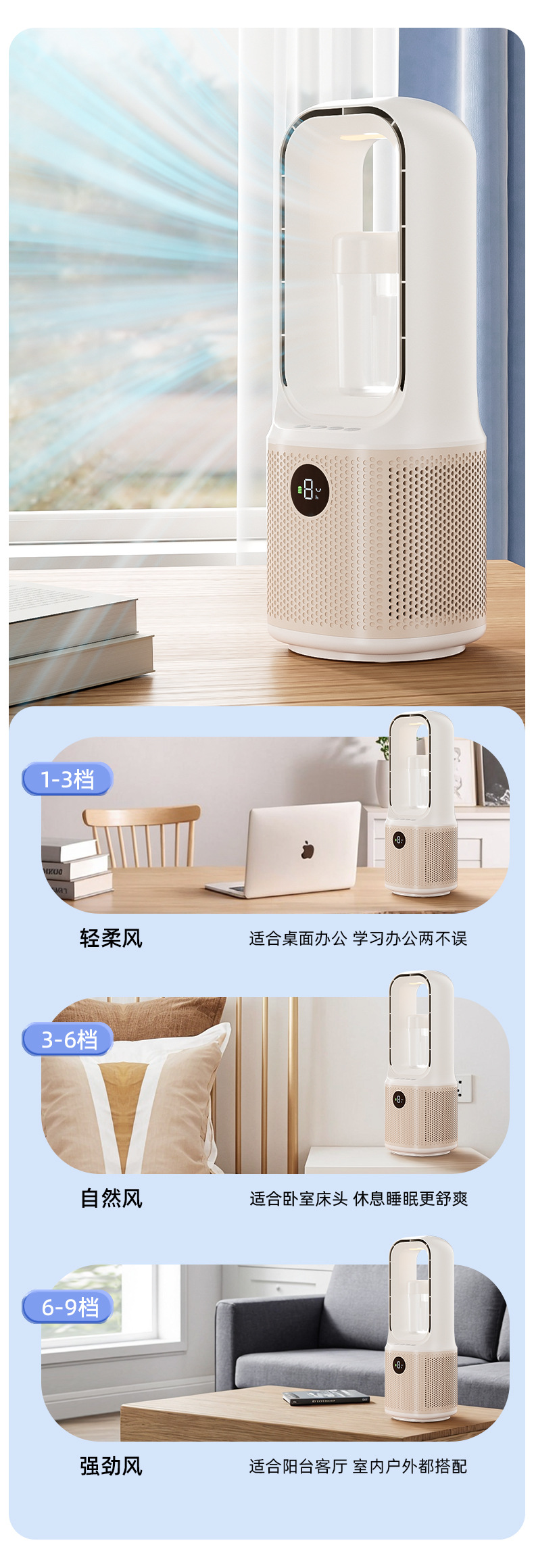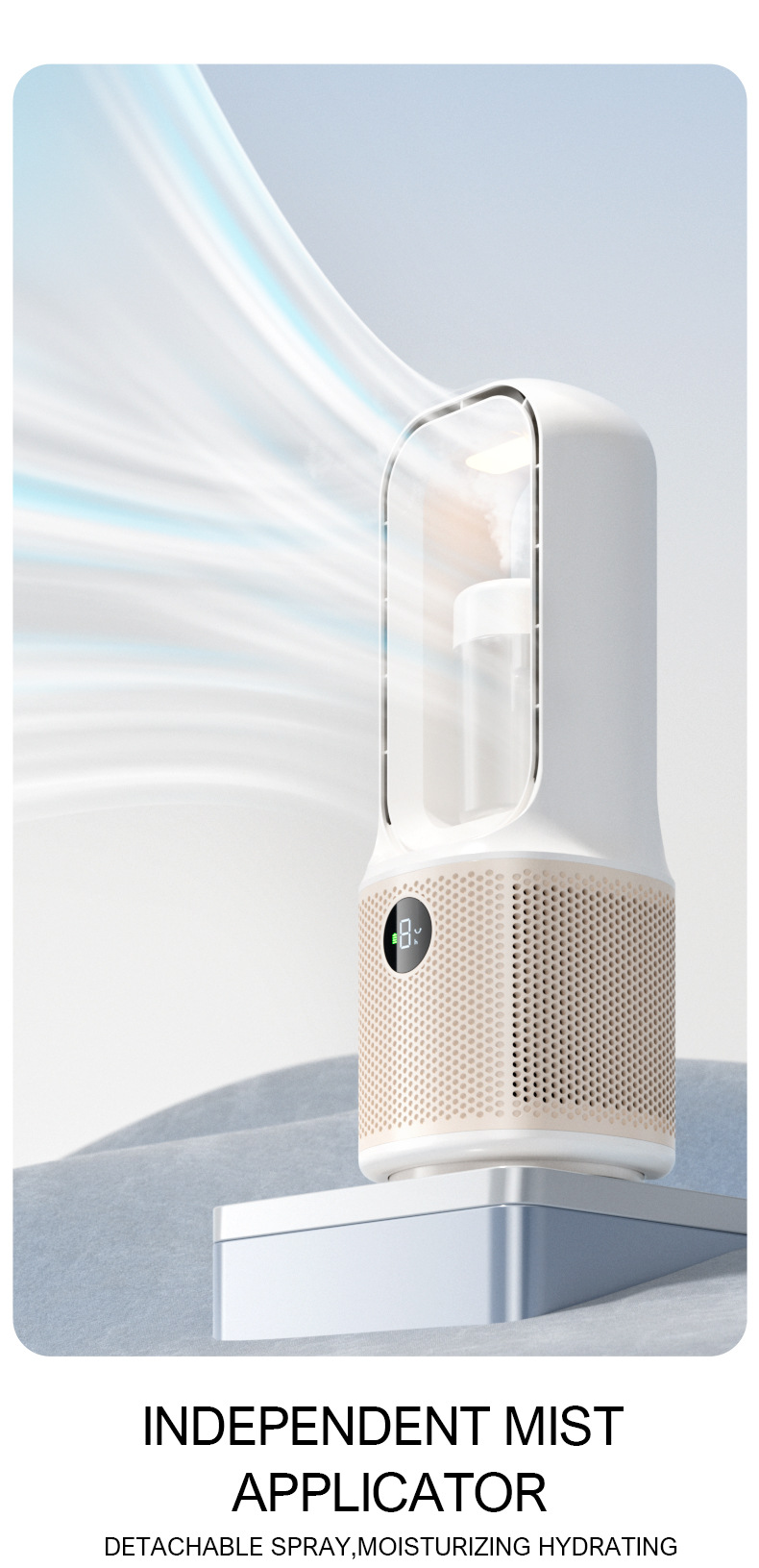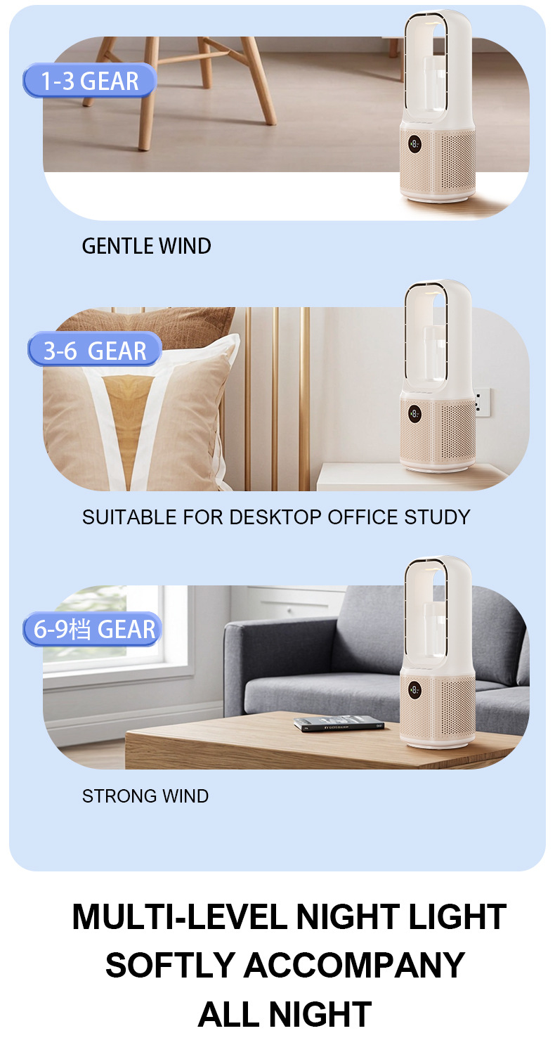 喷雾无叶循环2025冷风新款跨境桌面夜灯充电涡轮迷你加湿宿舍风扇
