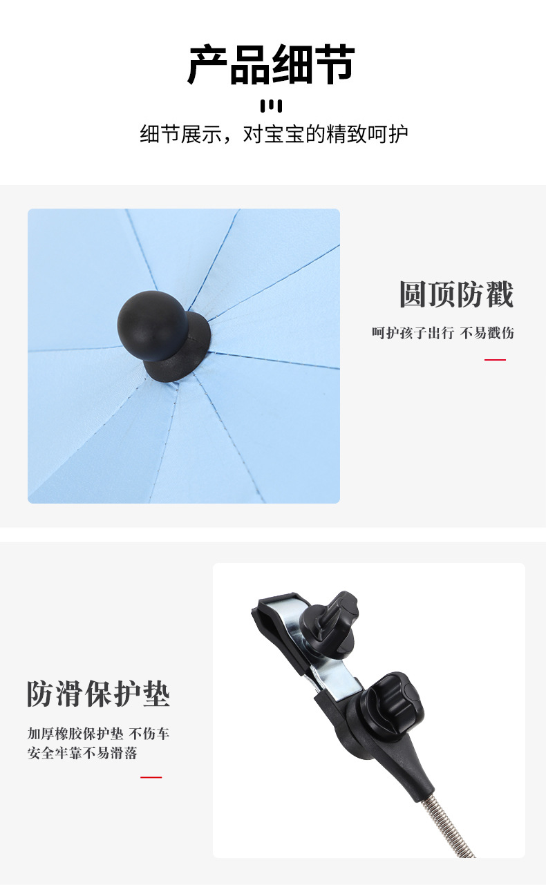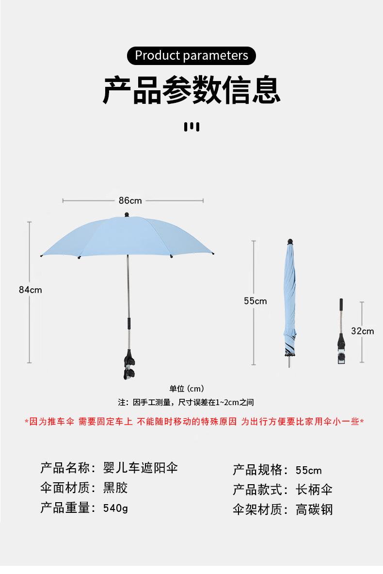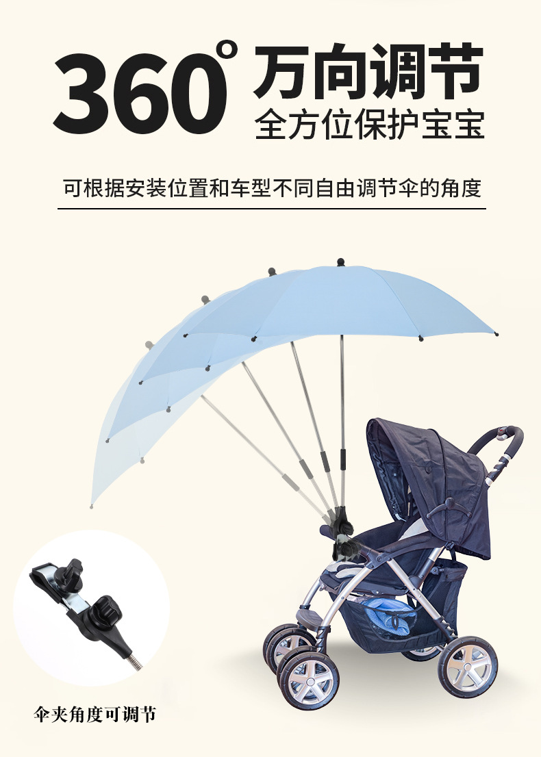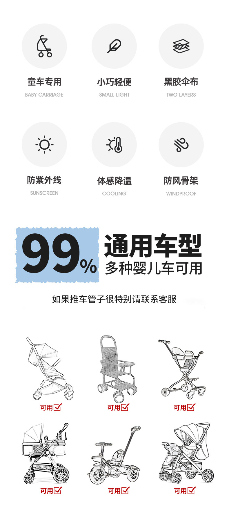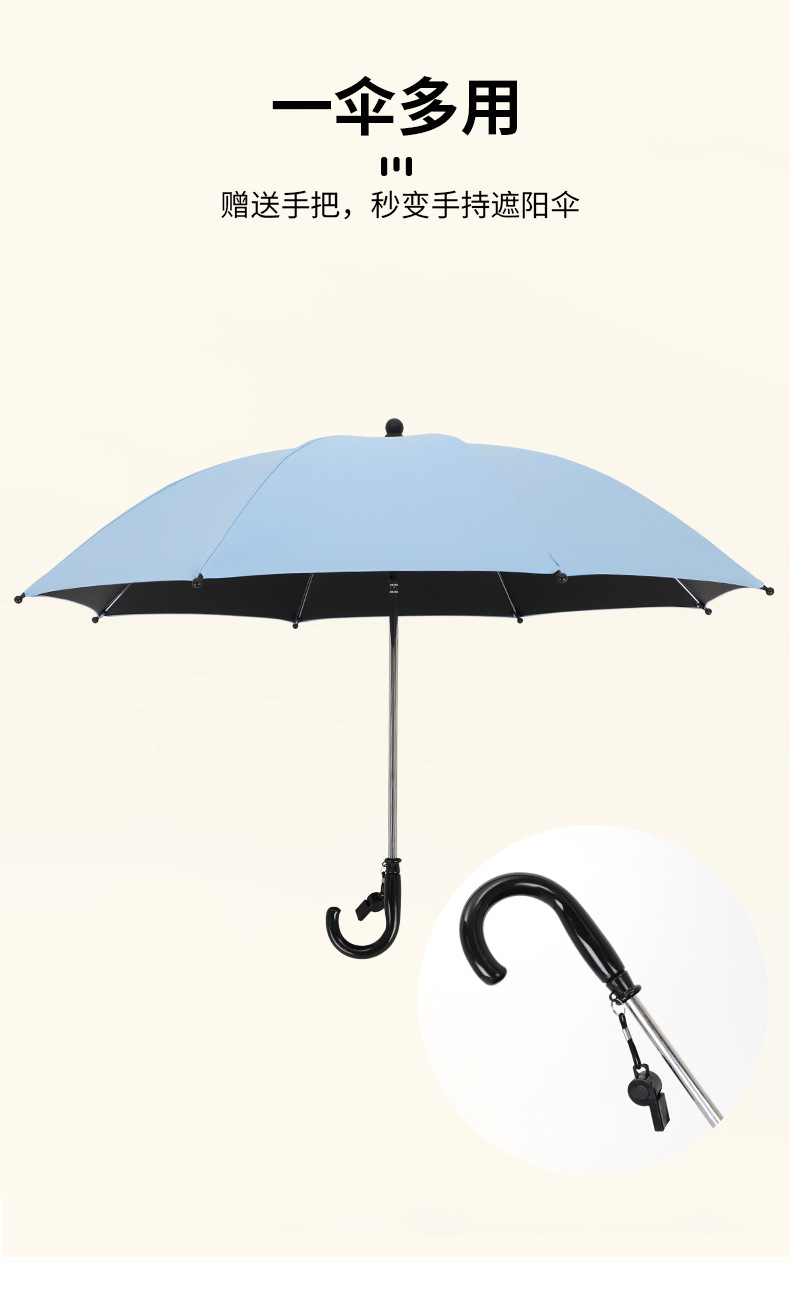 婴儿车遮阳伞儿童雨伞遛娃神器男女宝宝太阳伞黑胶防晒可拆卸通用