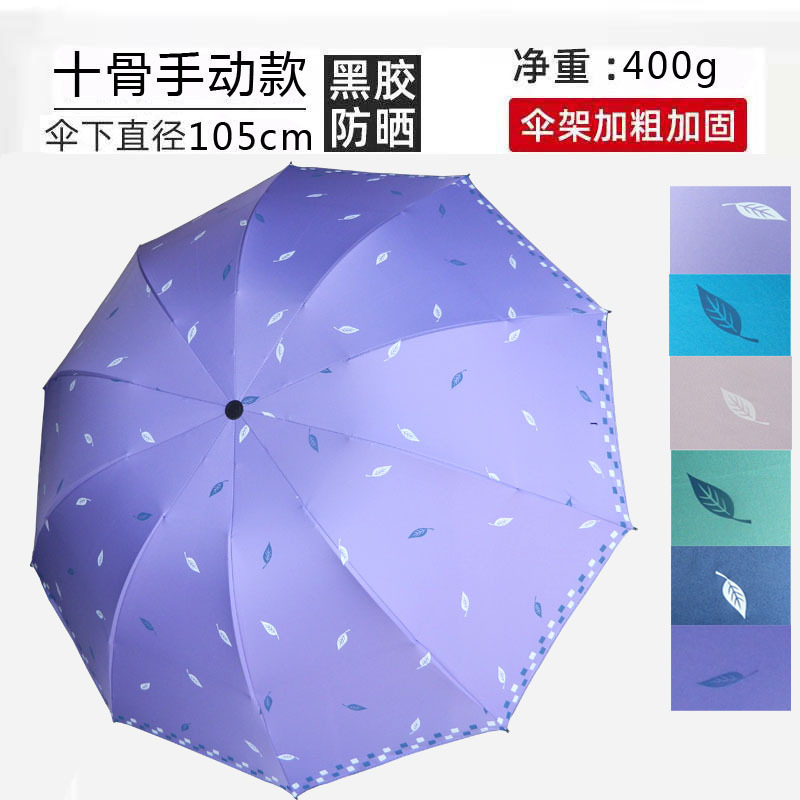十骨加大号雨伞女三折叠伞晴雨两用伞太阳伞防嗮防紫外线黑胶遮阳