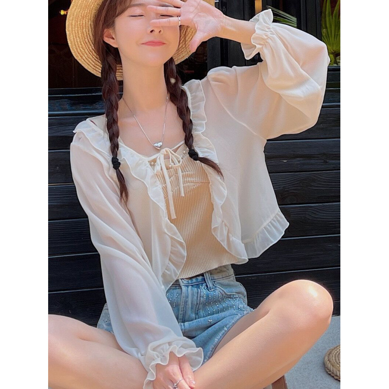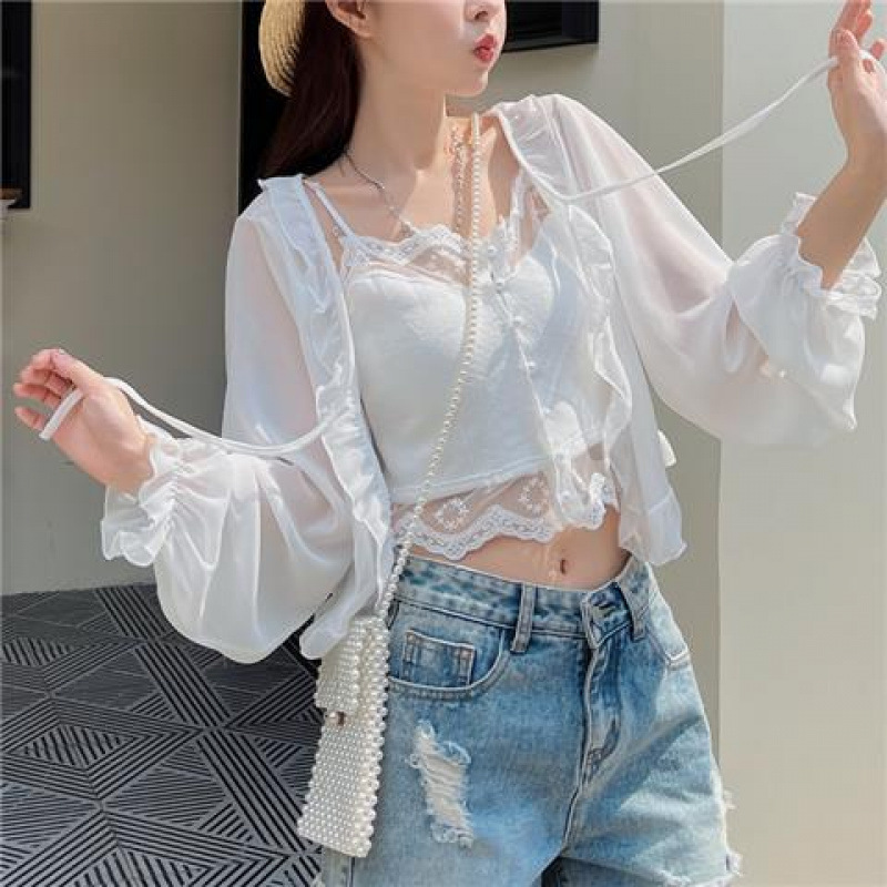 短款防晒衣女外穿夏季新款薄款雪纺开衫配吊带裙子披肩小个子外套