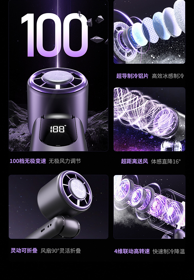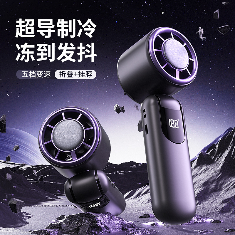 2025年新款手持高速制冷风扇折叠便携式涡轮迷你半导体冰敷小风扇
