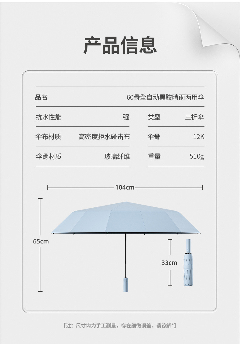 24股加大自动伞折叠晴雨两用遮阳太阳伞