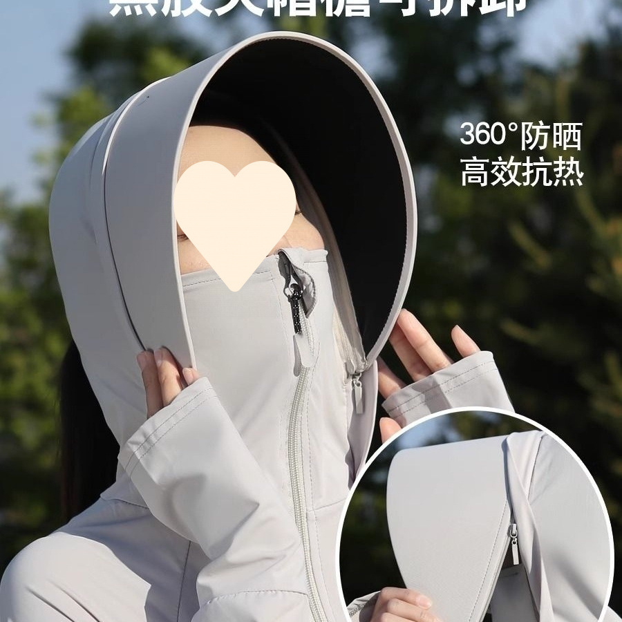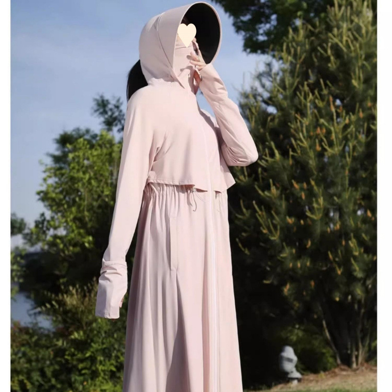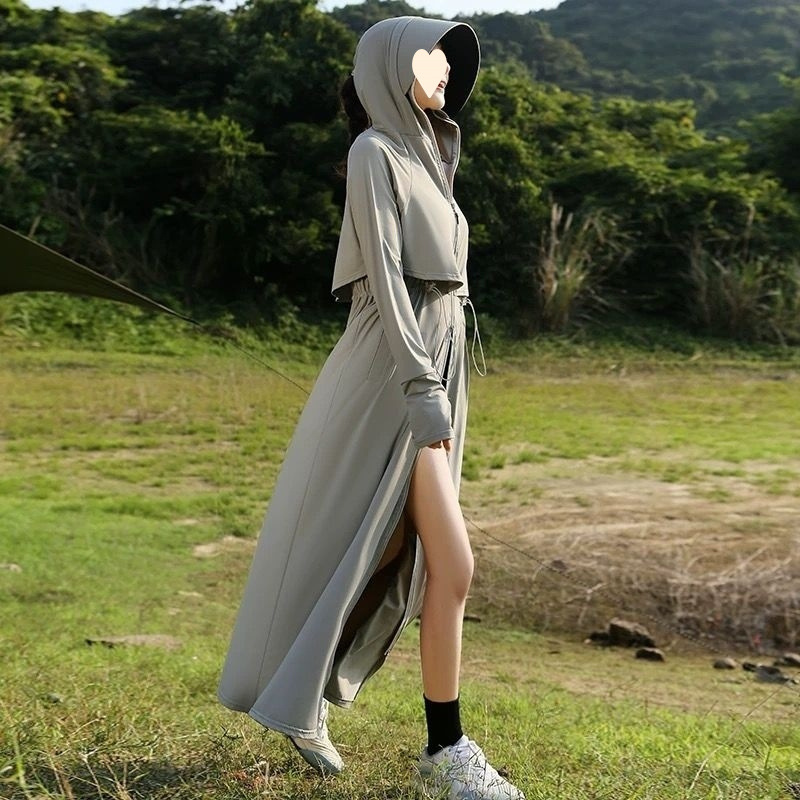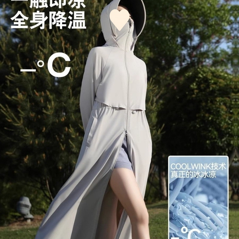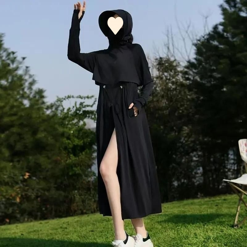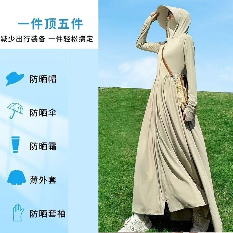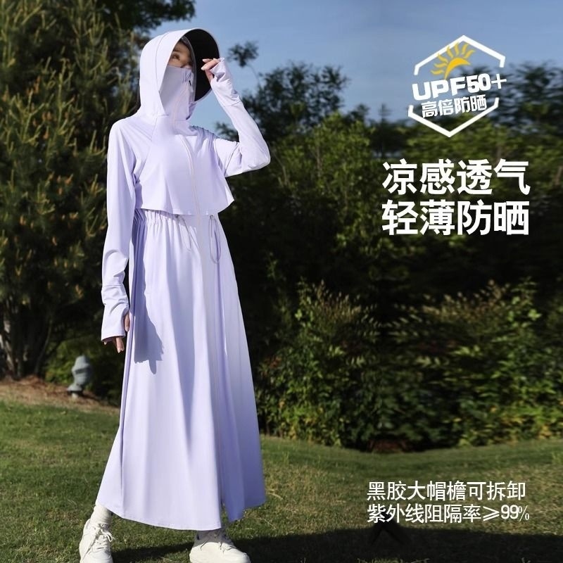 时尚防晒衣长款全身夏季透气紫外线新款冰丝收腰黑胶可拆卸大帽檐