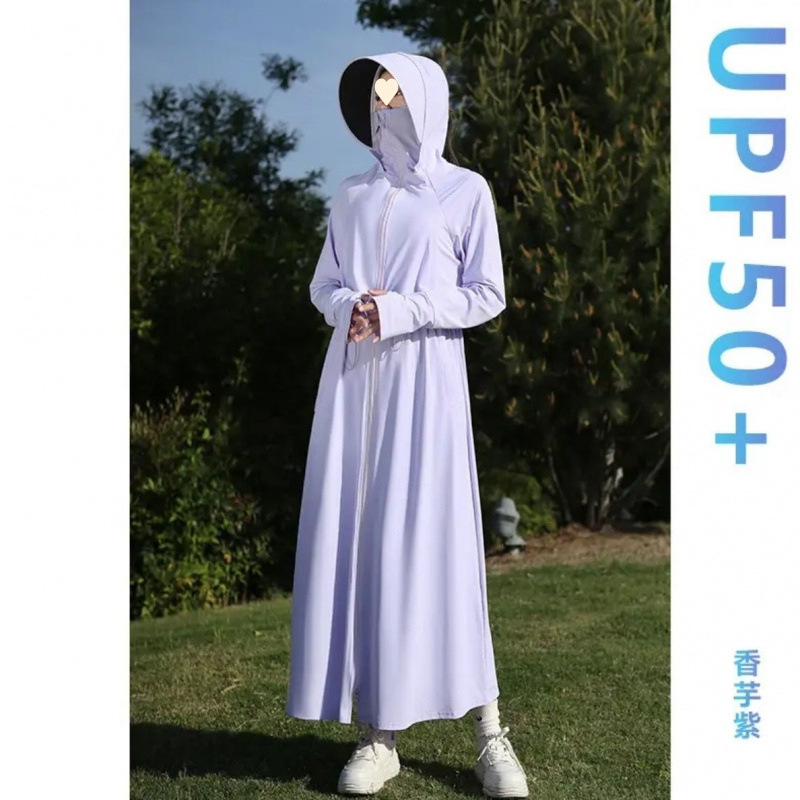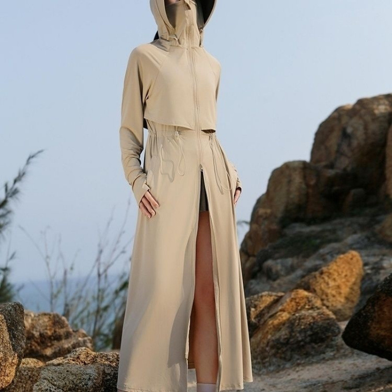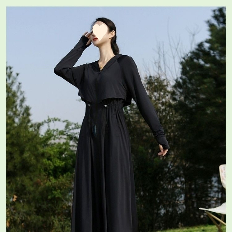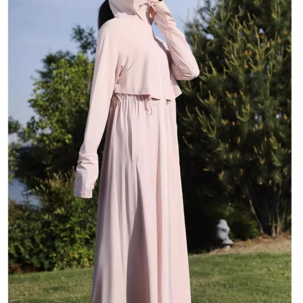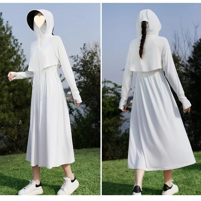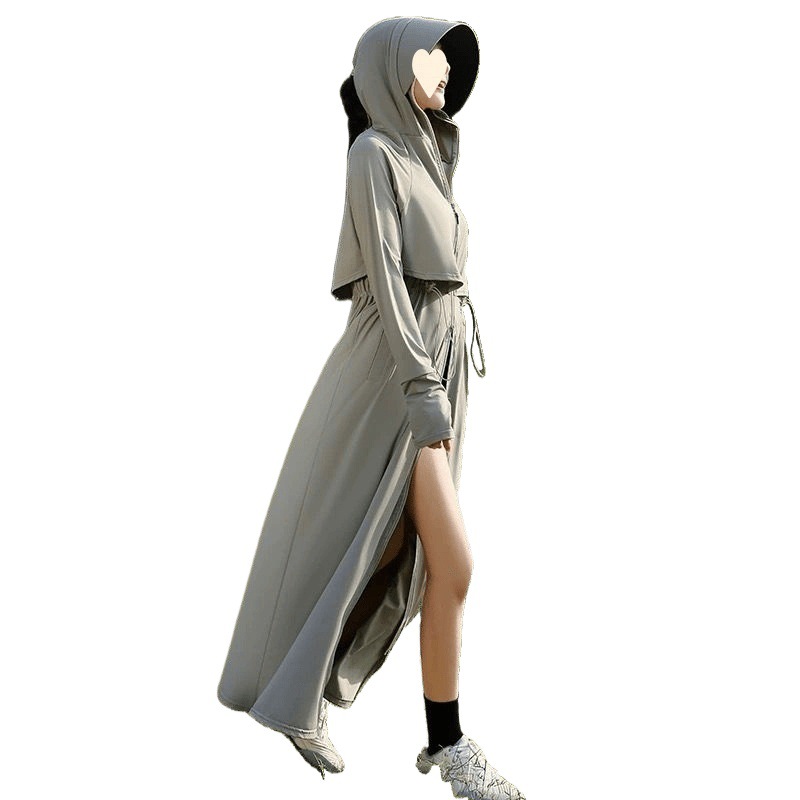 时尚防晒衣长款全身夏季透气紫外线新款冰丝收腰黑胶可拆卸大帽檐