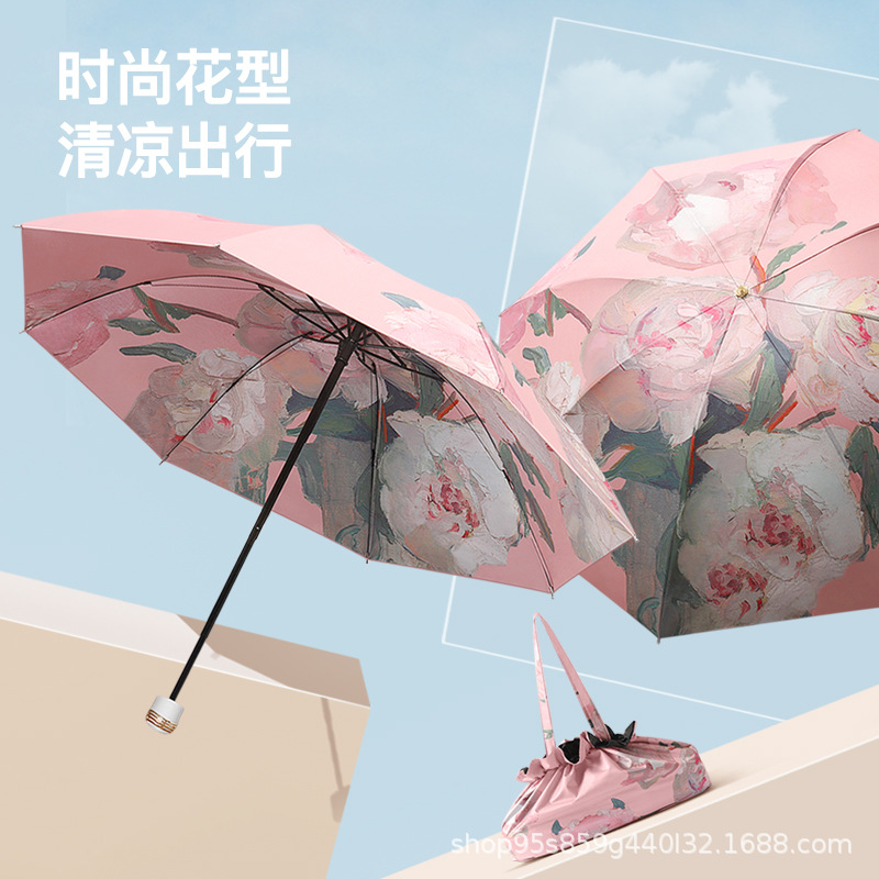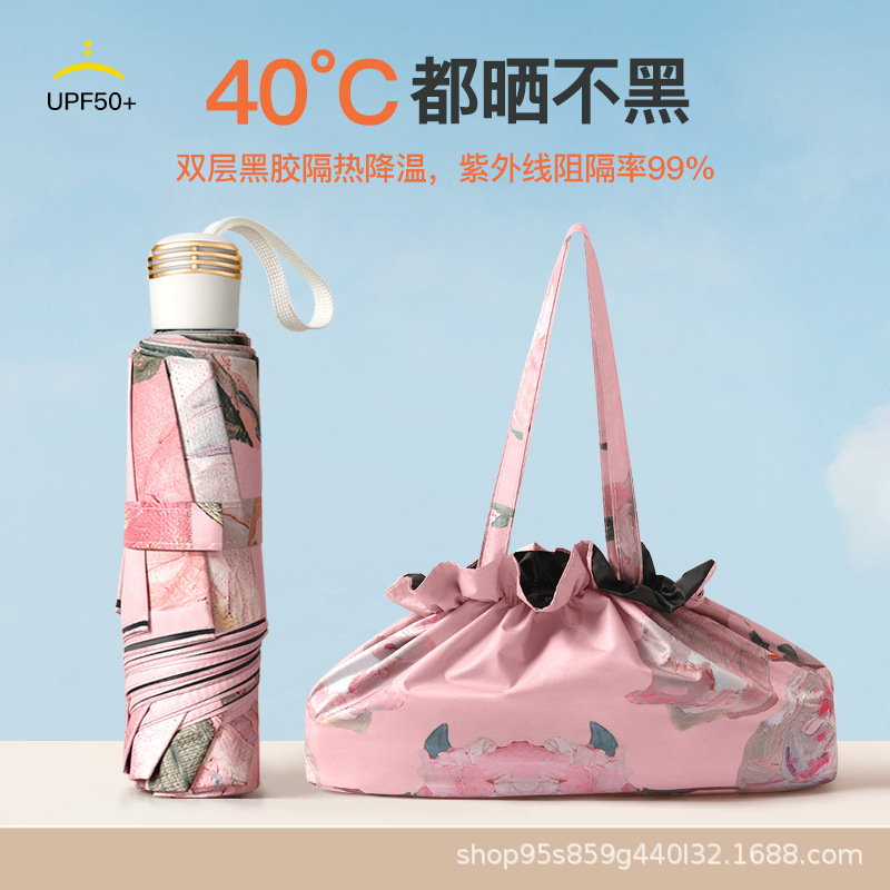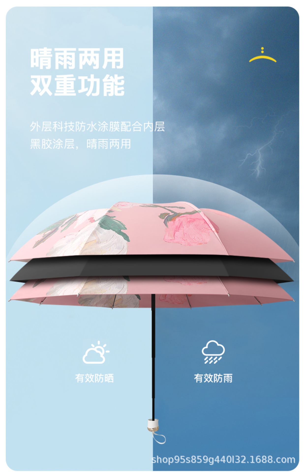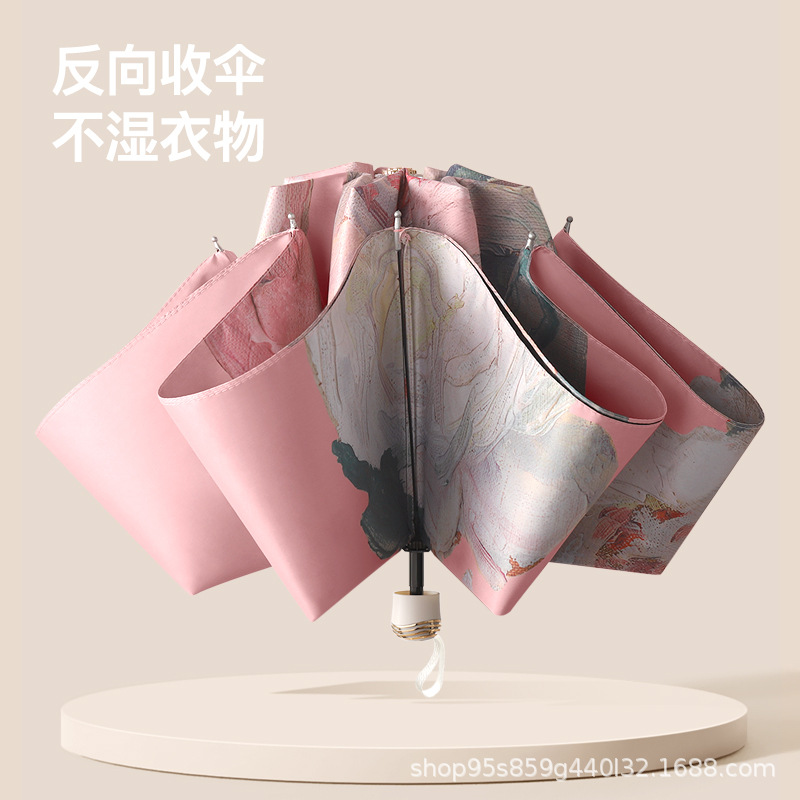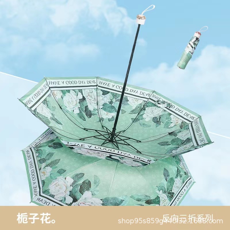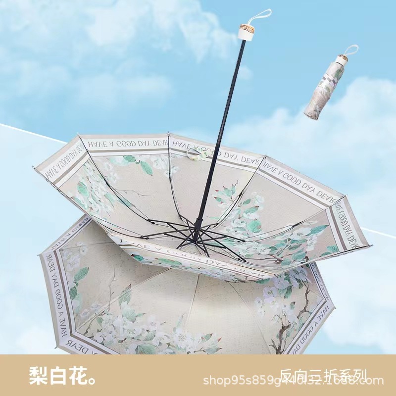 黑胶双层太阳伞防晒防紫外线女手动折叠晴雨两用遮阳反向伞upf50+