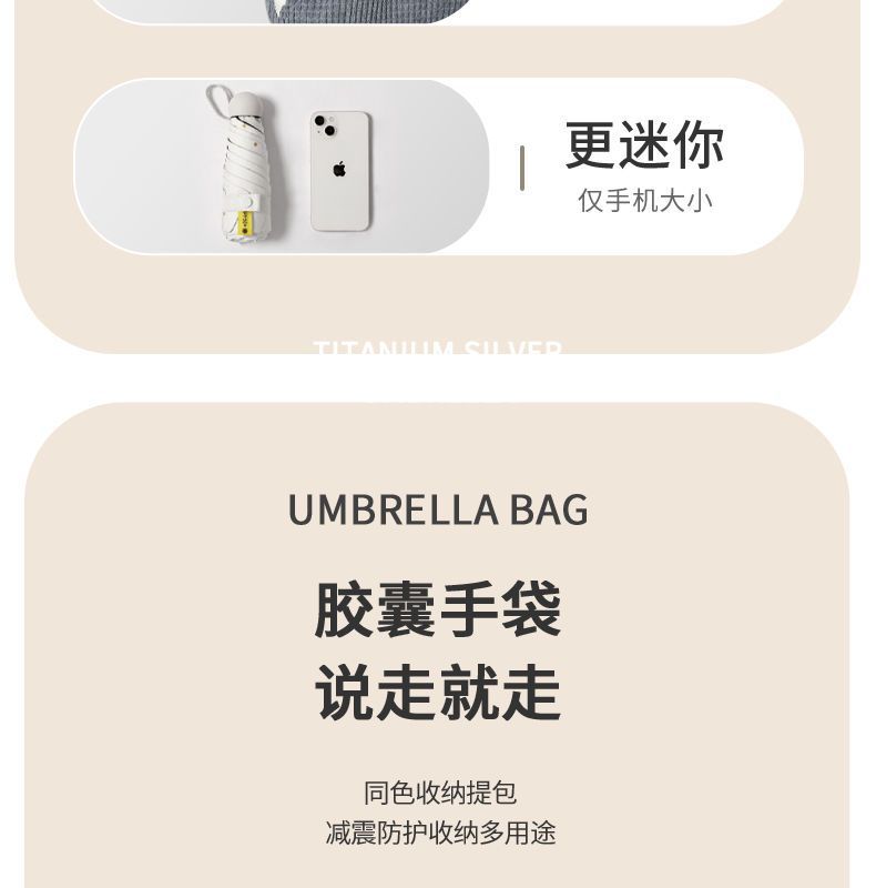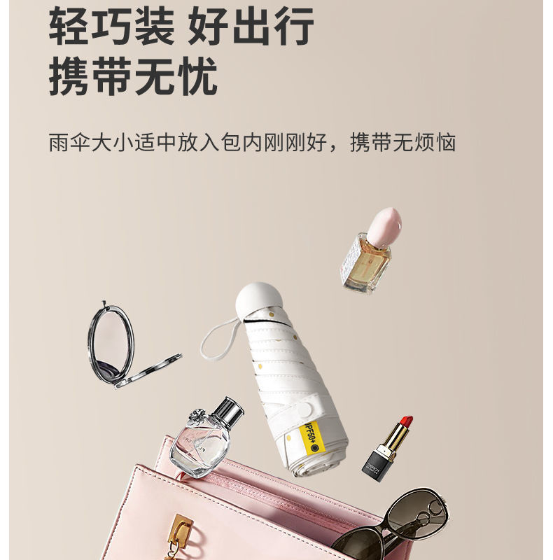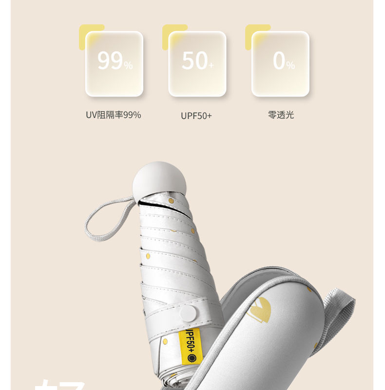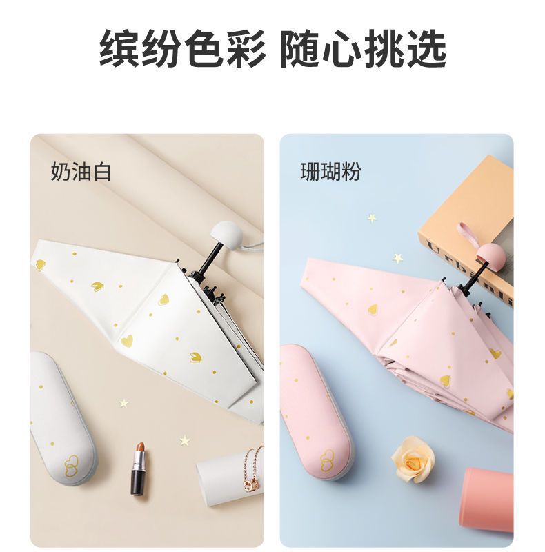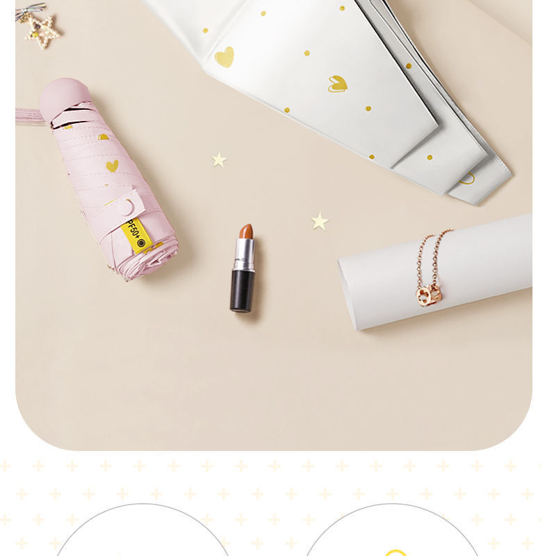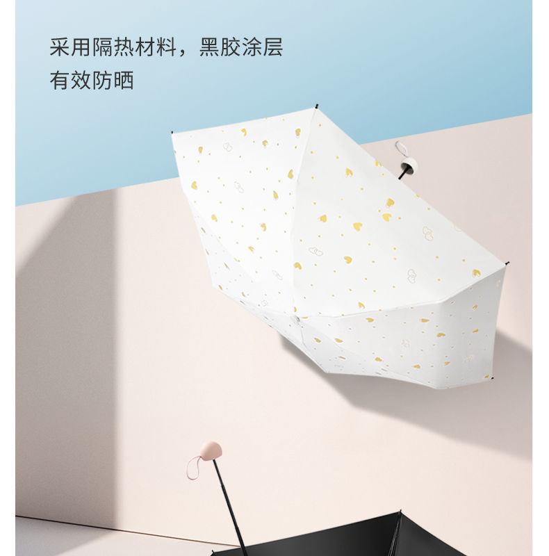 便携雨伞小巧爱心五折伞黑胶防紫外线晴雨两用女防晒遮阳太阳伞