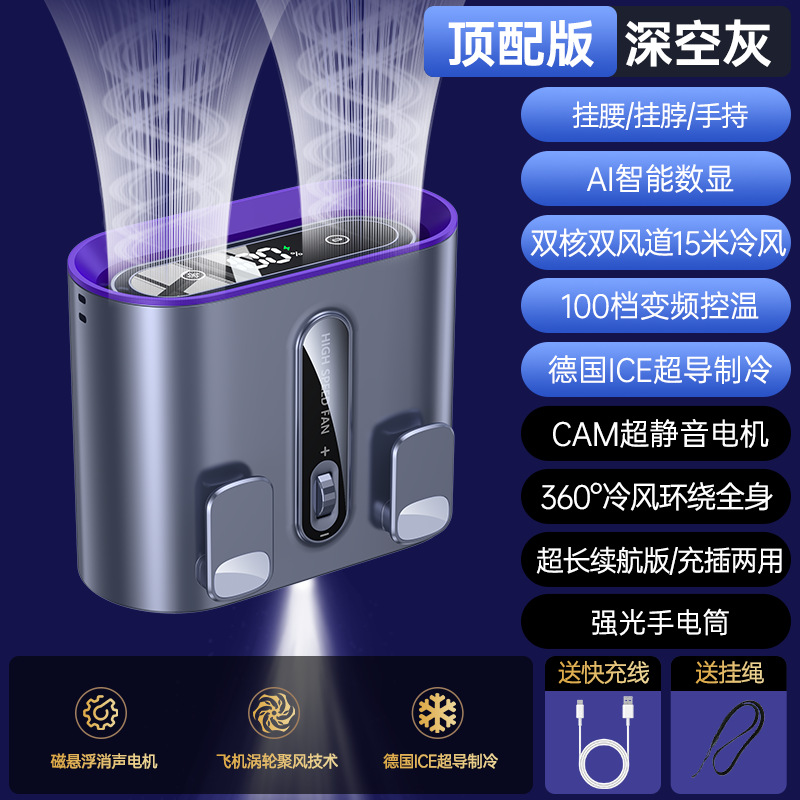 2025新款挂腰风扇随身便携式夹腰间高速双风道挂脖桌面电风扇工厂
