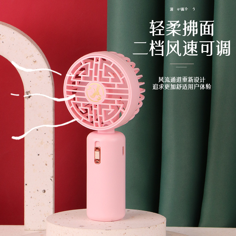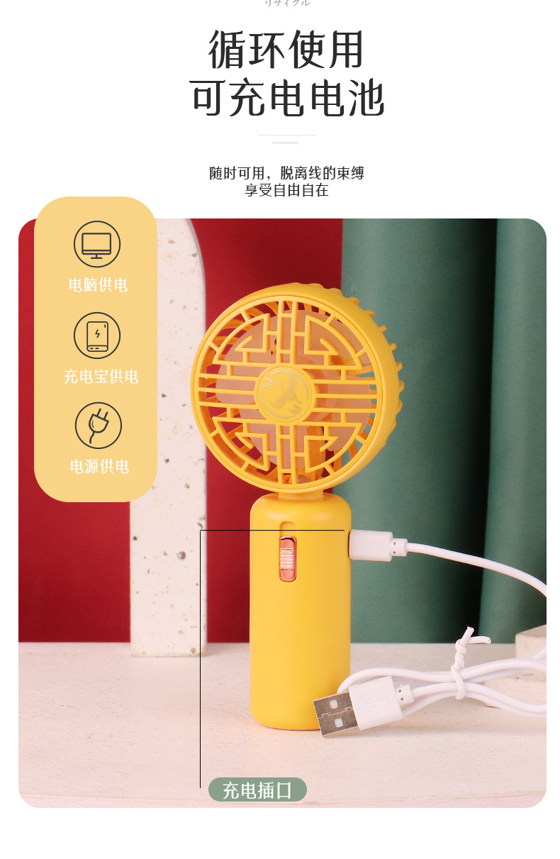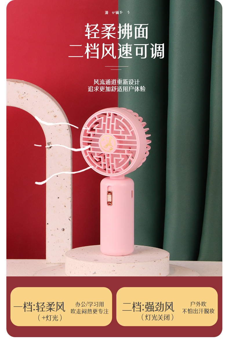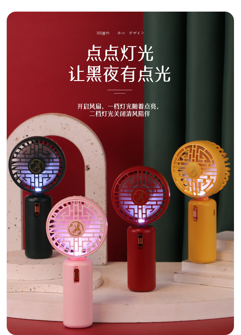 2023年新款国潮风扇USB充电中国风随身便携 二档大风力带灯光风扇