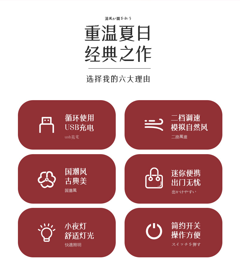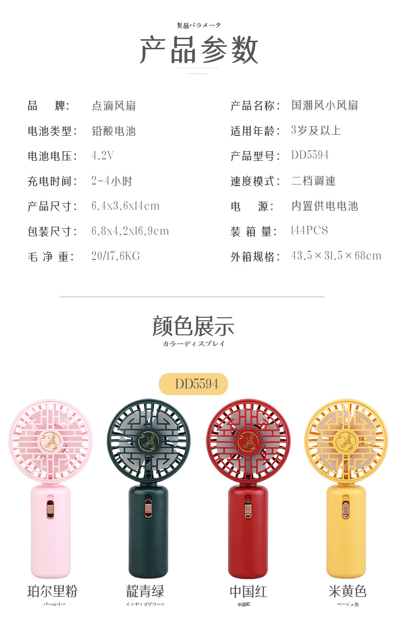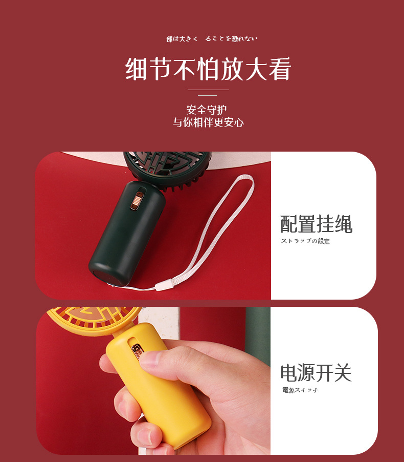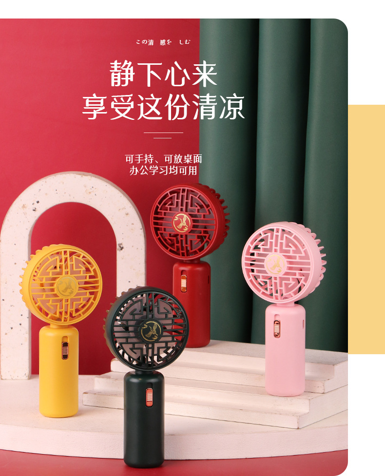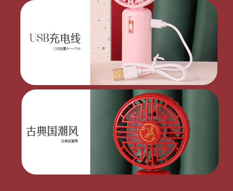 2023年新款国潮风扇USB充电中国风随身便携 二档大风力带灯光风扇