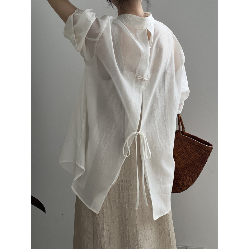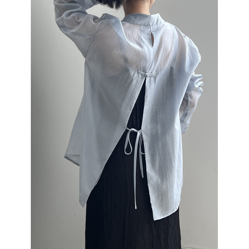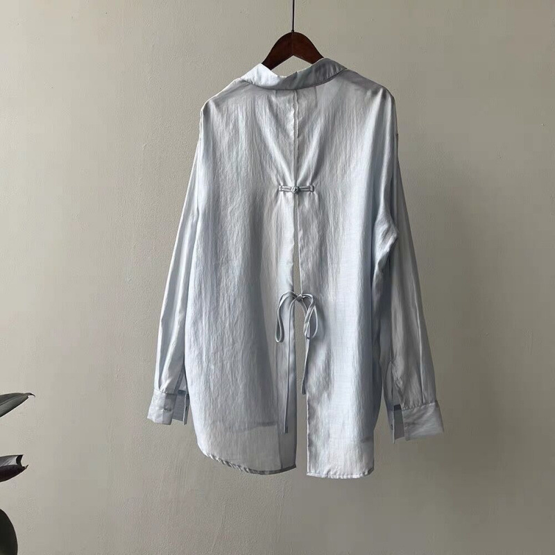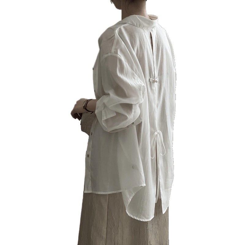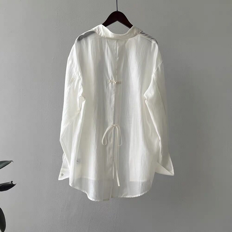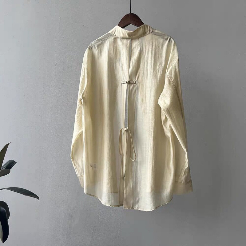 轻薄天丝防晒衬衫外套女2025新款后背开叉衬衣夏国风盘扣长袖上衣