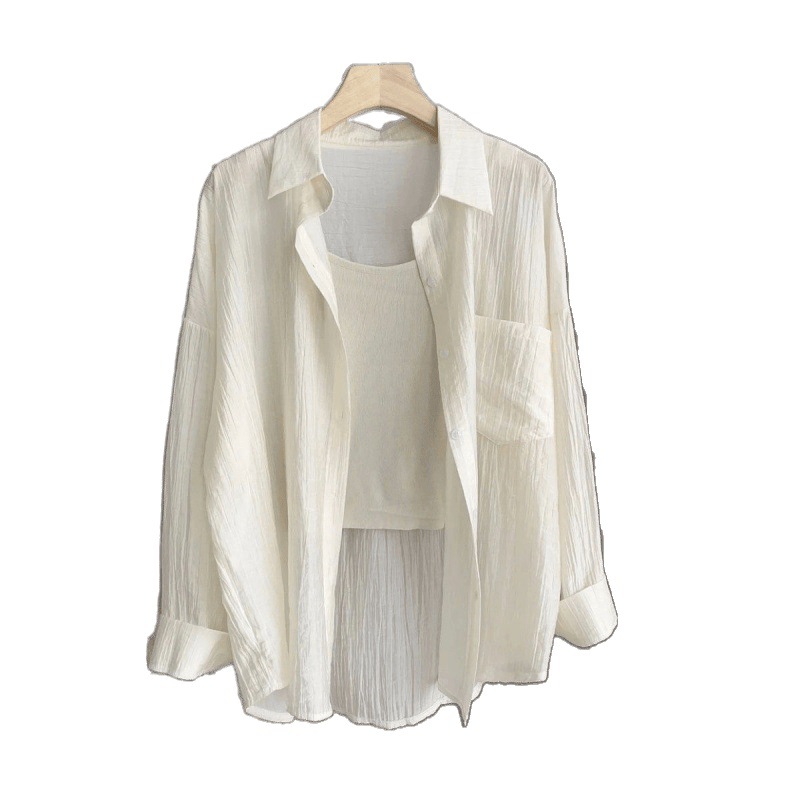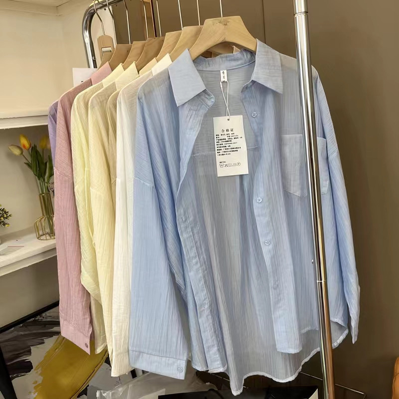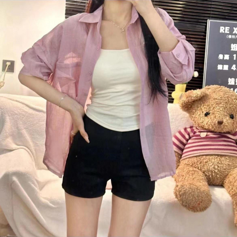 韩系慵懒风防晒衬衫女薄外搭开衫小个子衬衣夏季天中长款宽松上衣