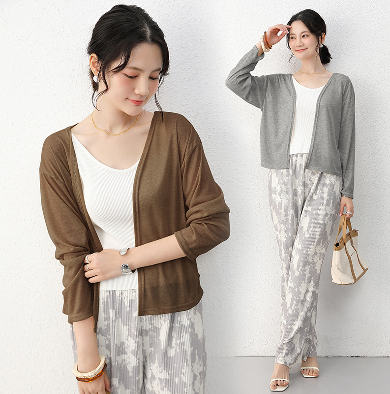 夏季薄款天丝开衫防晒上衣女短款长袖披肩薄款外套宽松百搭空调衫