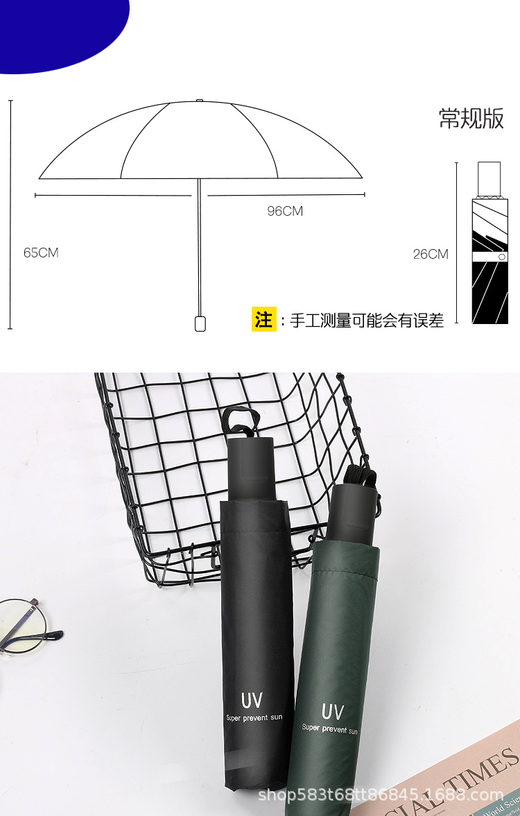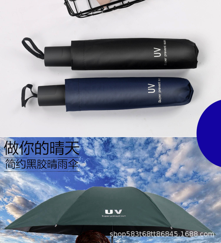 雨伞定制广告伞UV黑胶伞三折叠伞防晒防紫外线遮阳伞太阳伞晴雨两