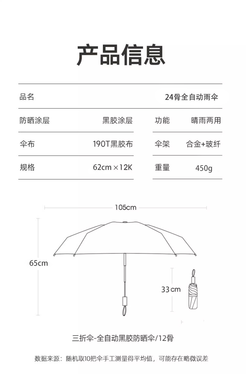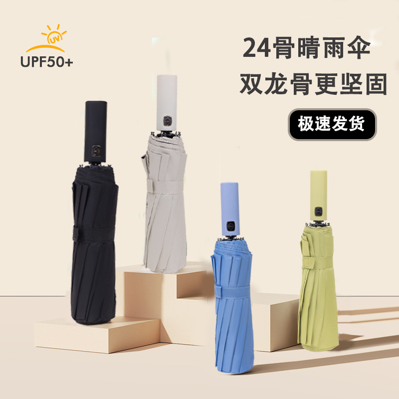 24骨全自动雨伞晴雨两用防紫外线折叠加大遮阳防晒广告伞批发