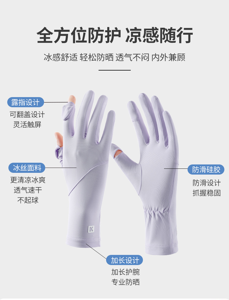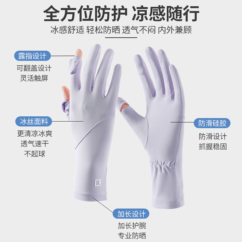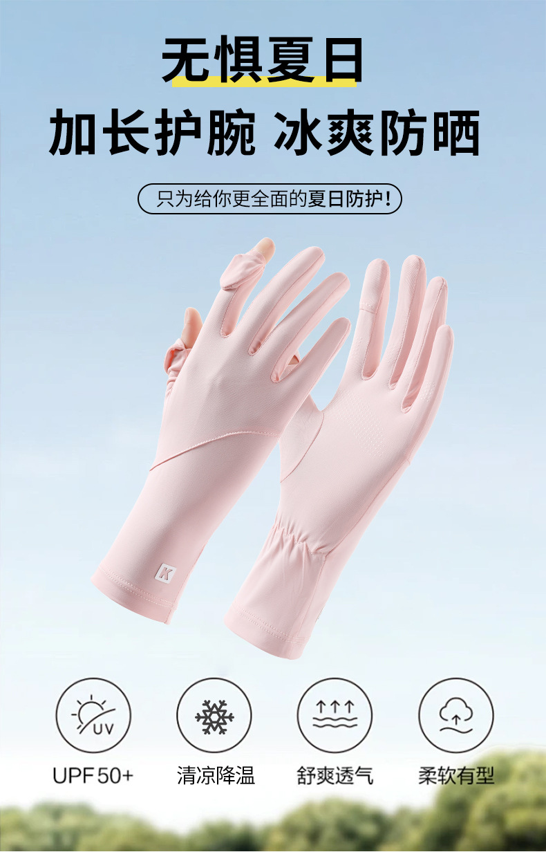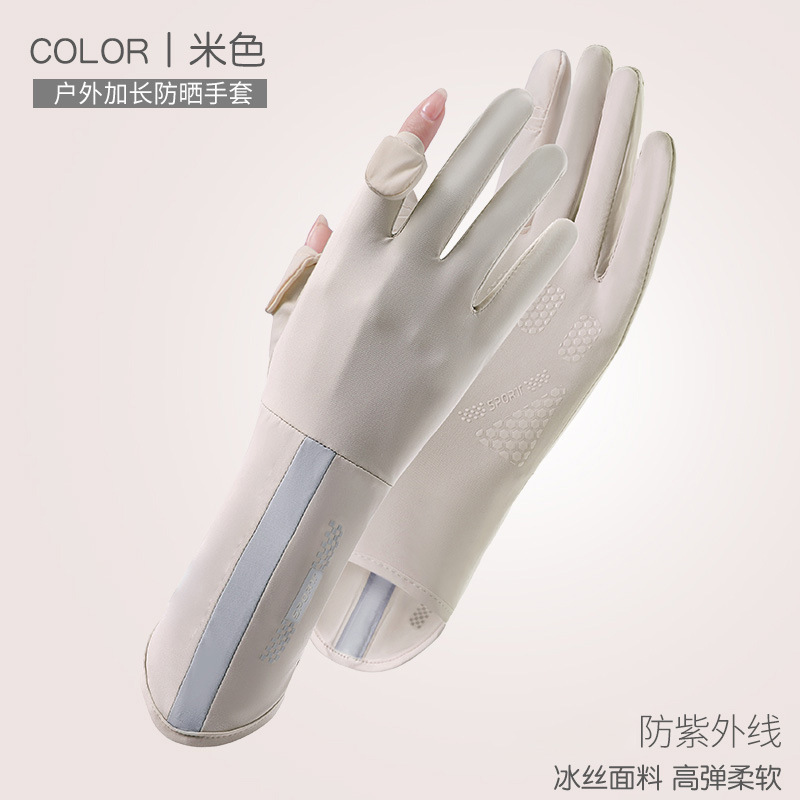 防晒手套防紫外线加长款骑行夏季开车户外透气新款冰丝手套女批发