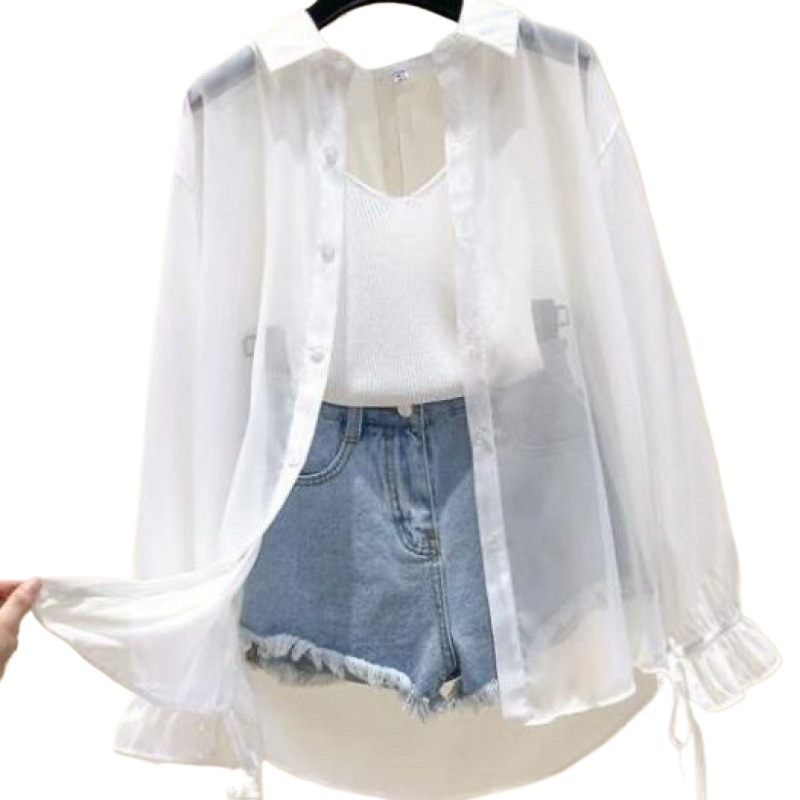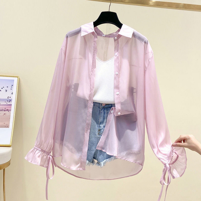 防晒衣服女夏季薄款衬衫宽松外套长袖2025年新款雪纺开衫外搭上衣