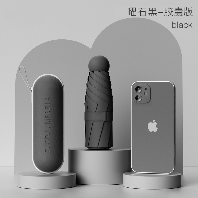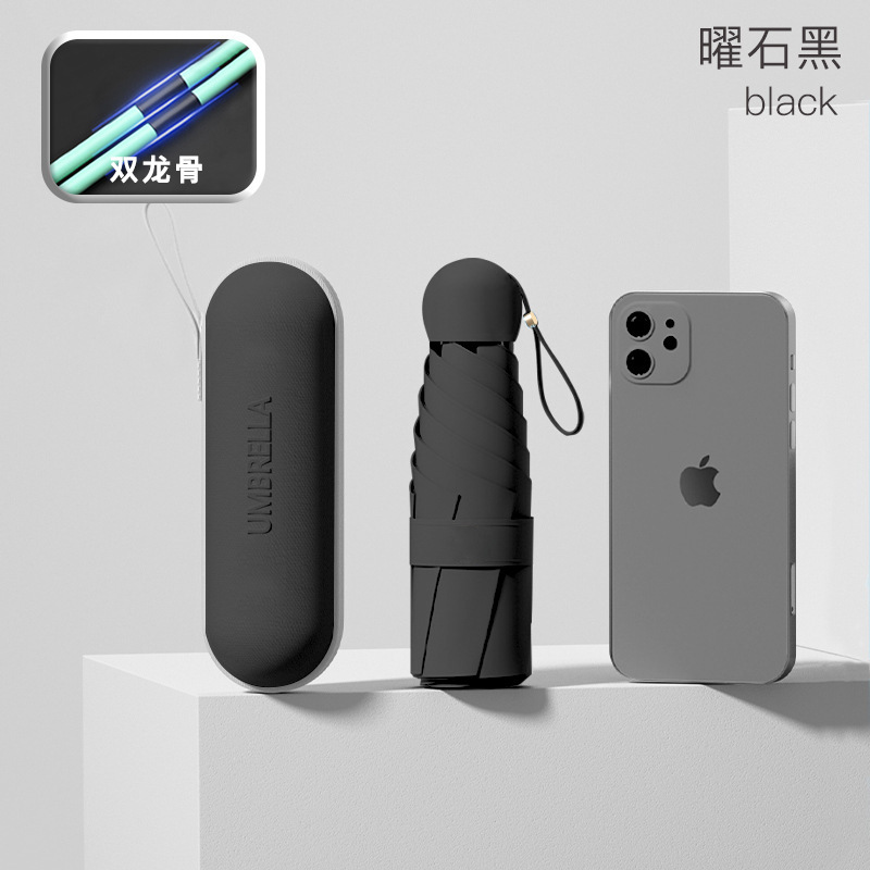 紫外线太阳伞雨伞女晴雨两用胶囊清新黑胶遮阳伞批发抗风黑胶加厚