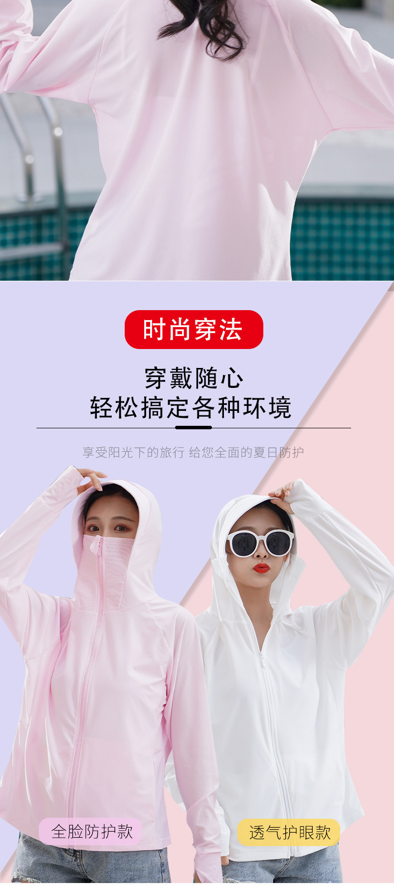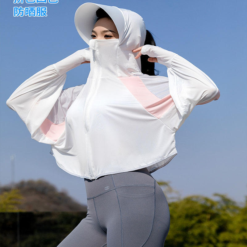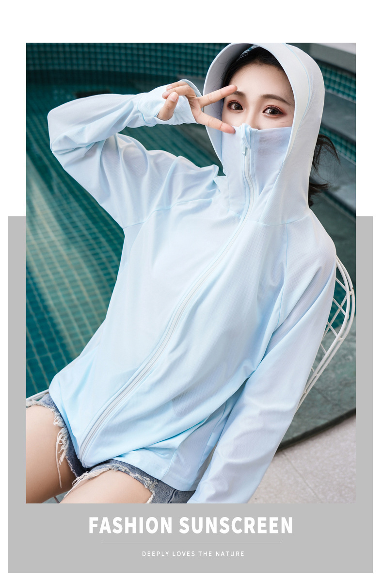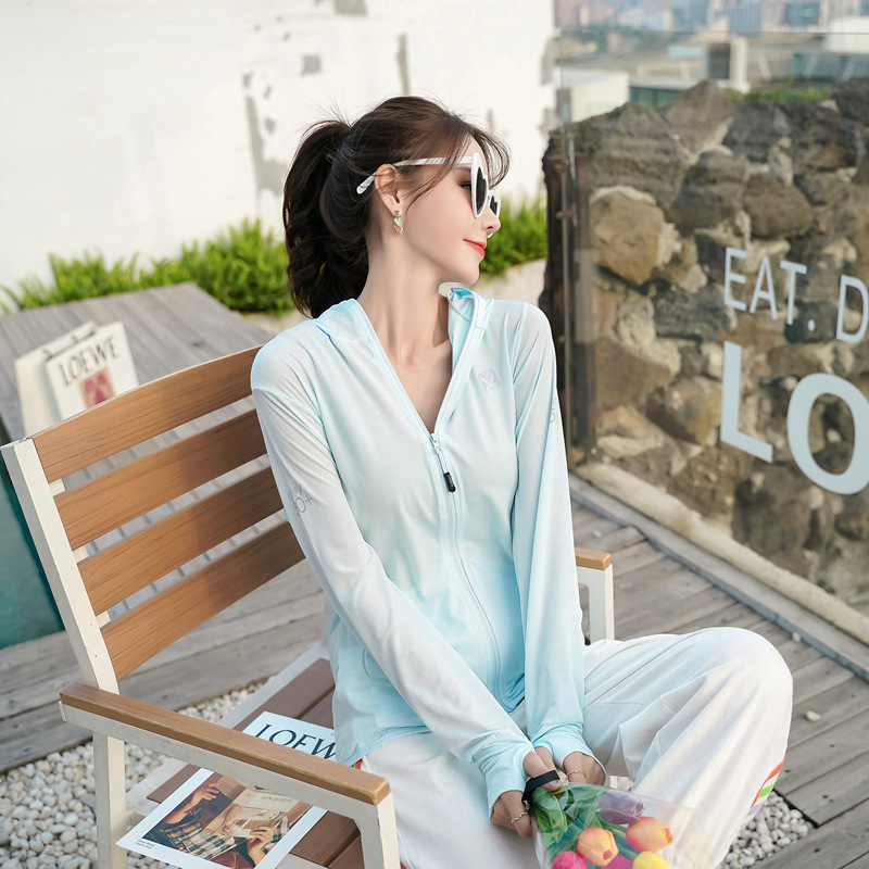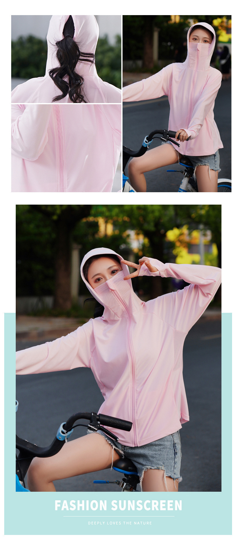 兔子防紫外线吸汗透气防晒衣女夏季冰丝户外骑行修身连帽防晒服