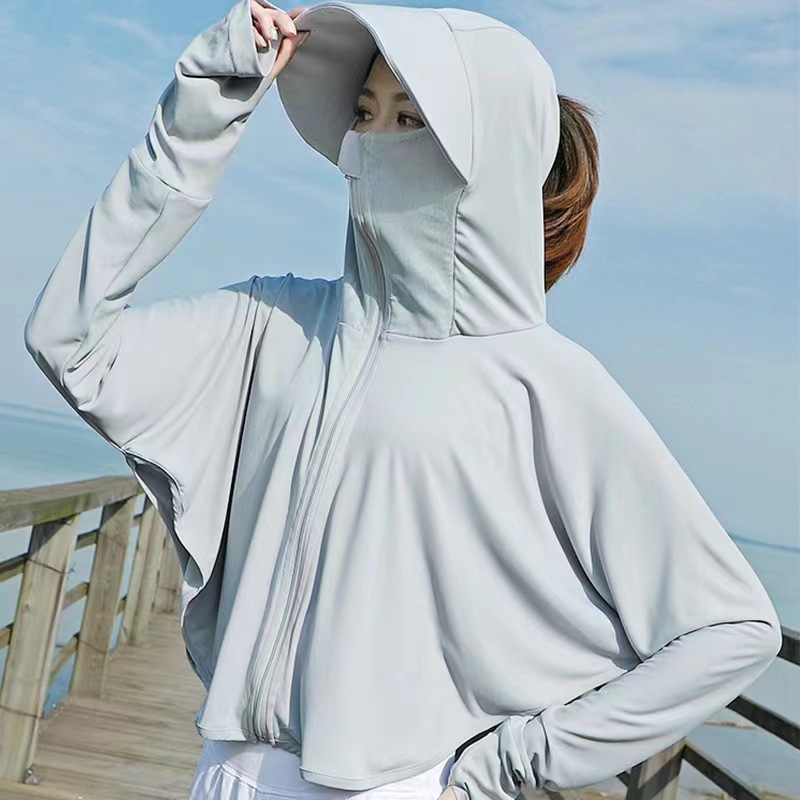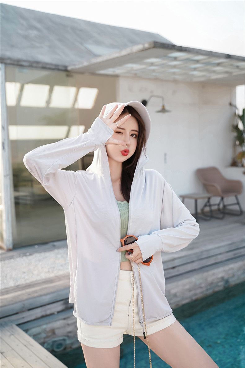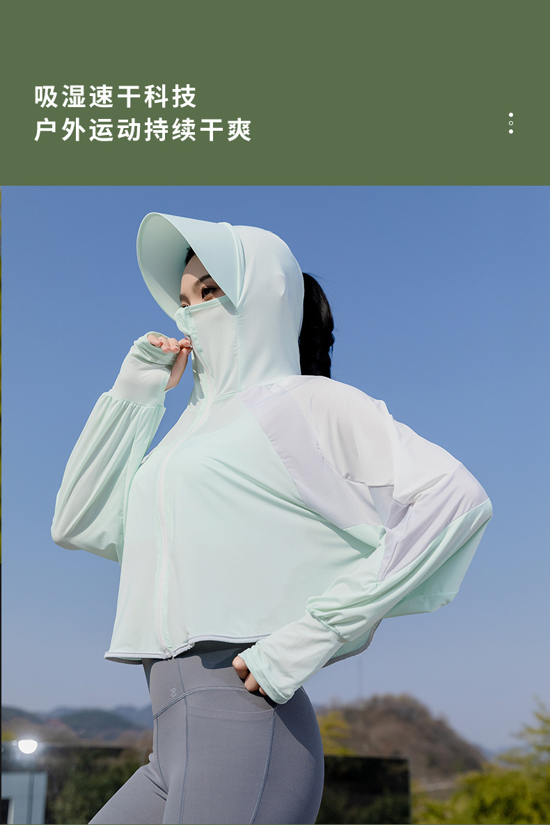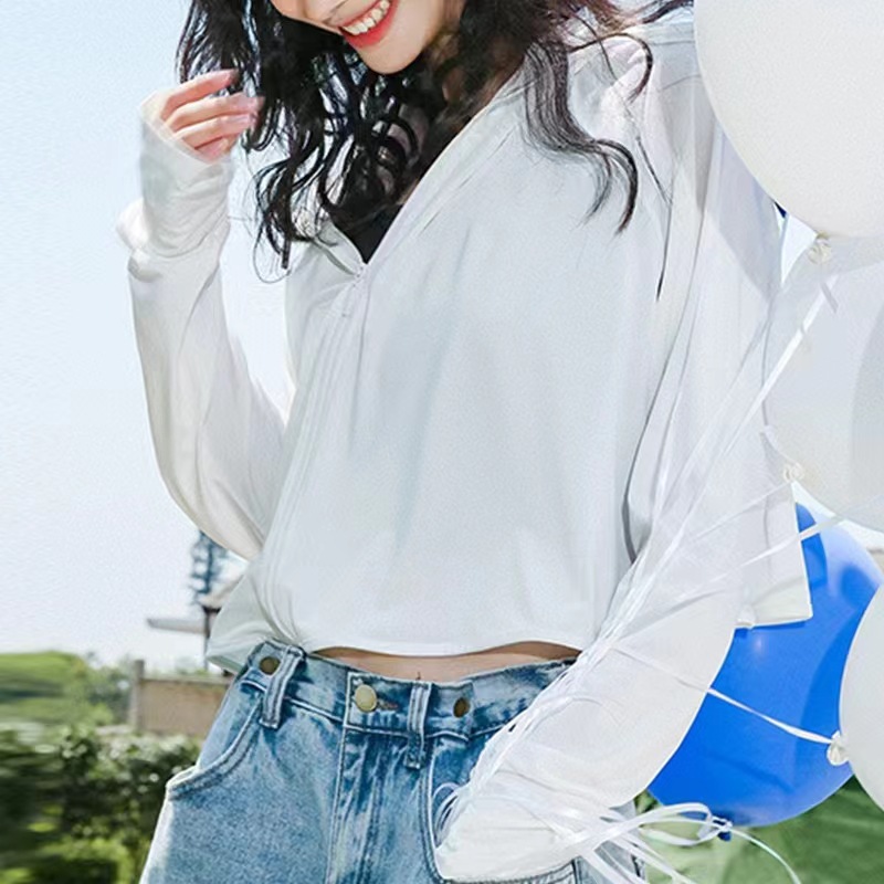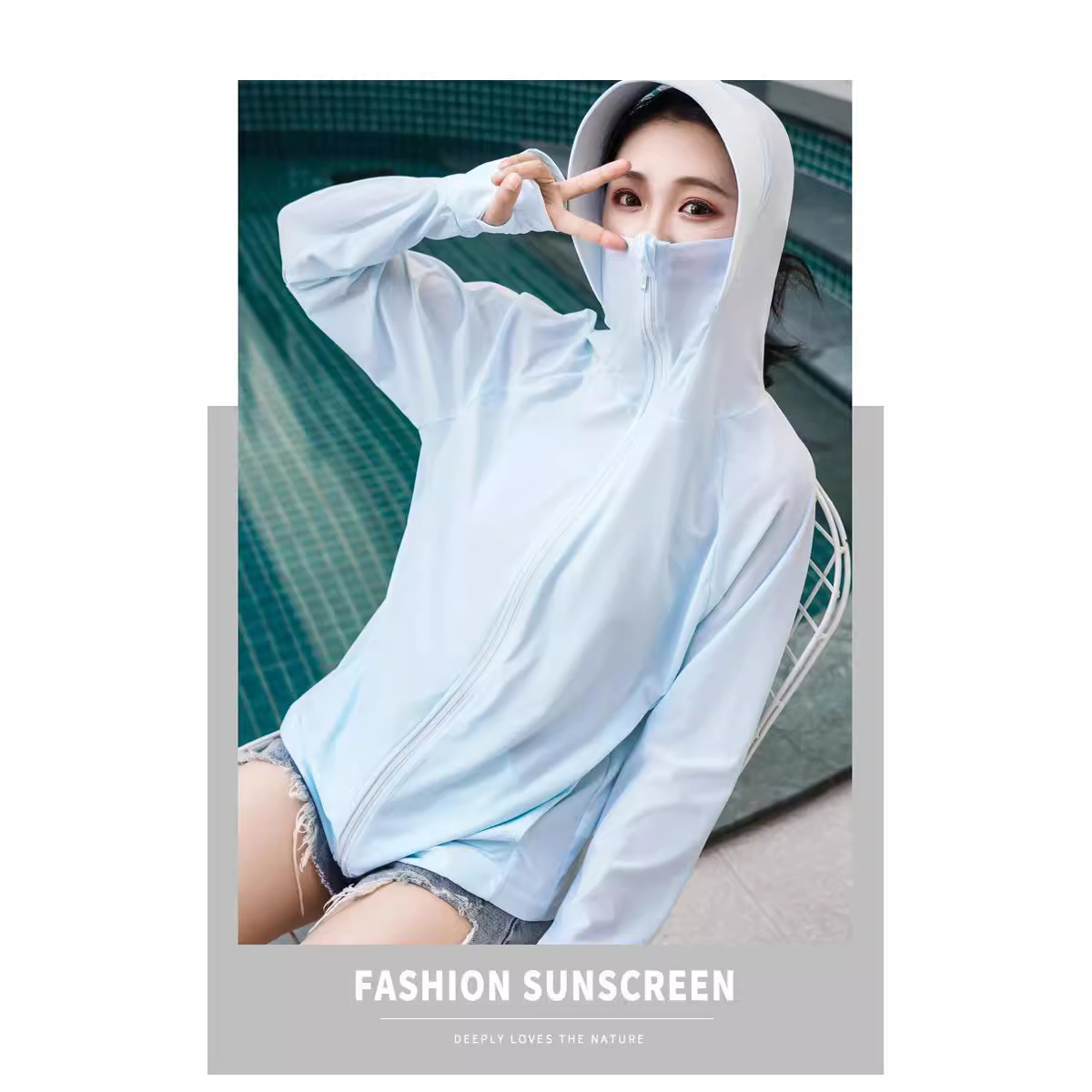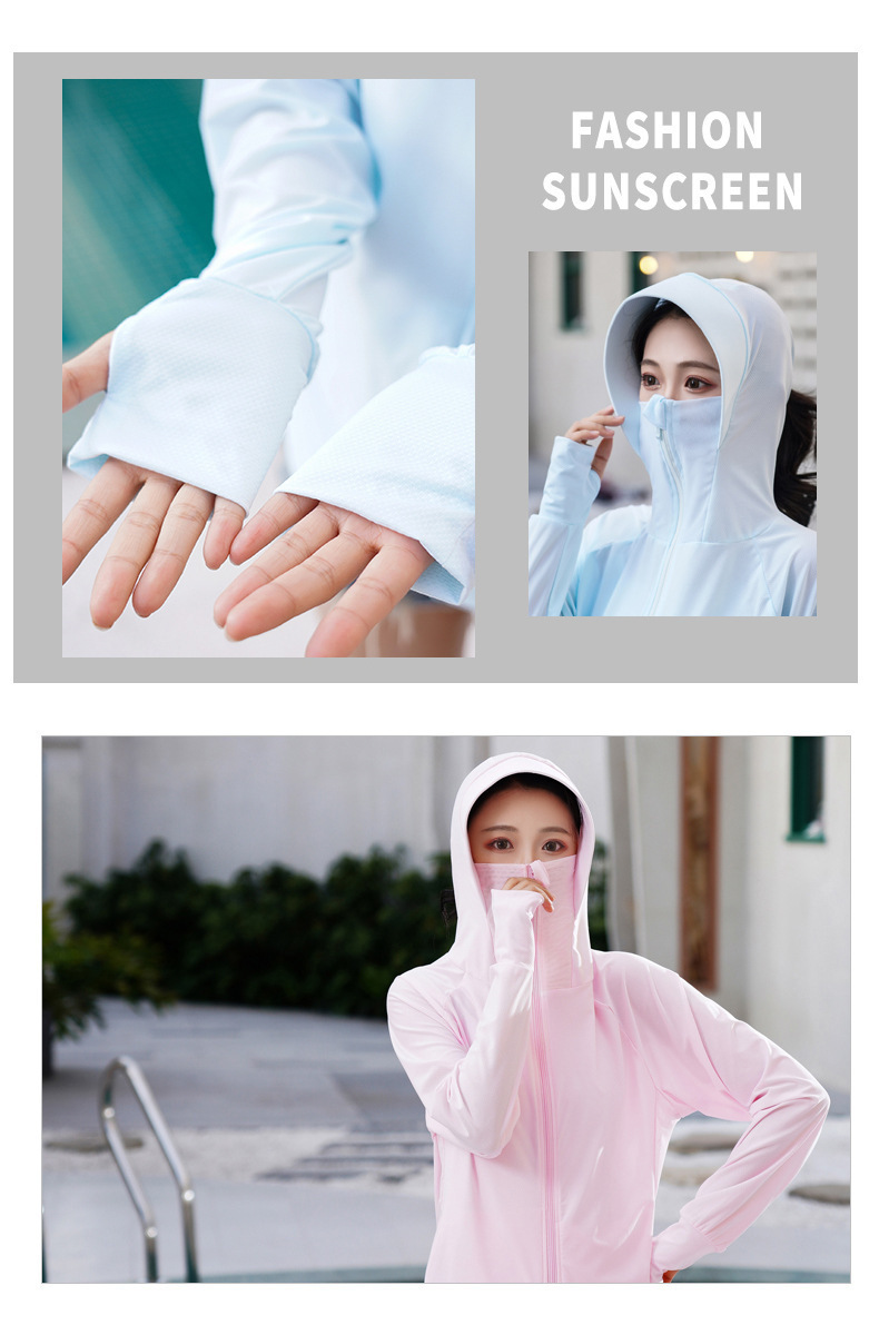 兔子防紫外线吸汗透气防晒衣女夏季冰丝户外骑行修身连帽防晒服