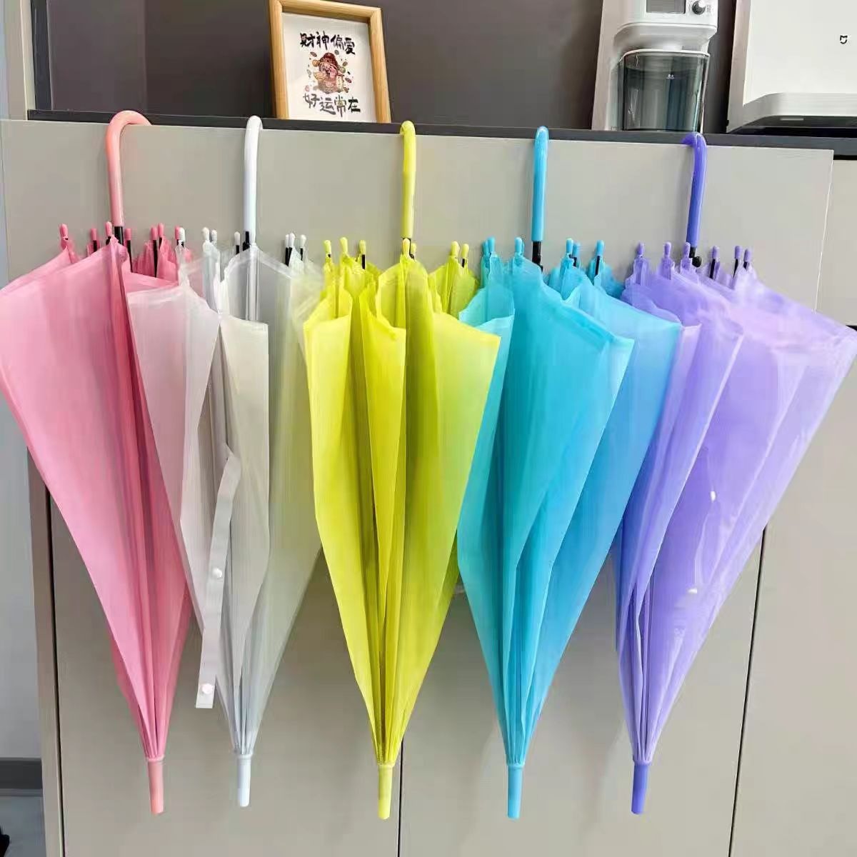 厂家批发透明伞自动长柄晴雨两用太阳伞塑料儿童可绘画广告伞雨伞