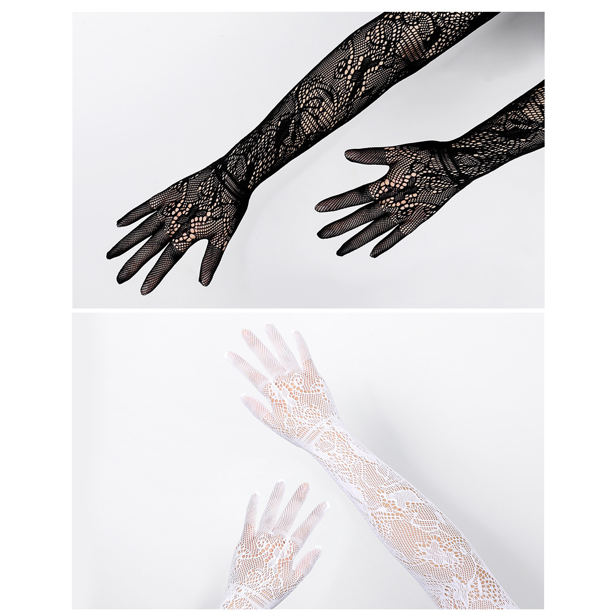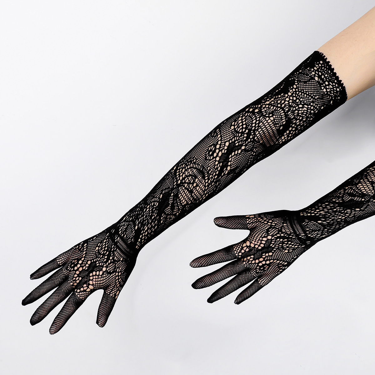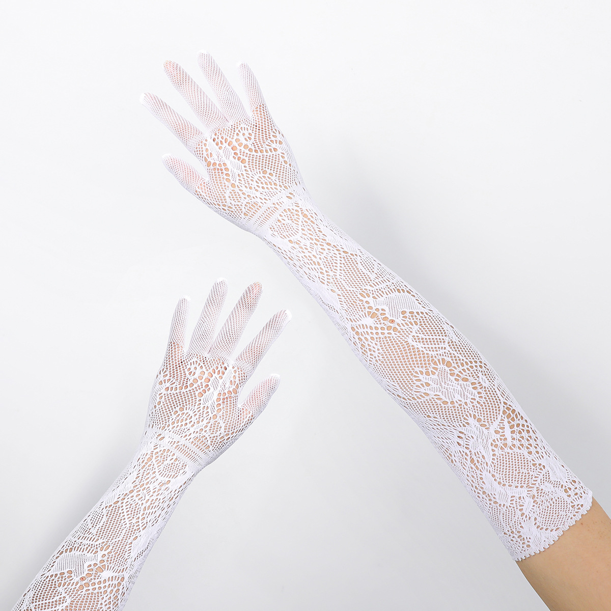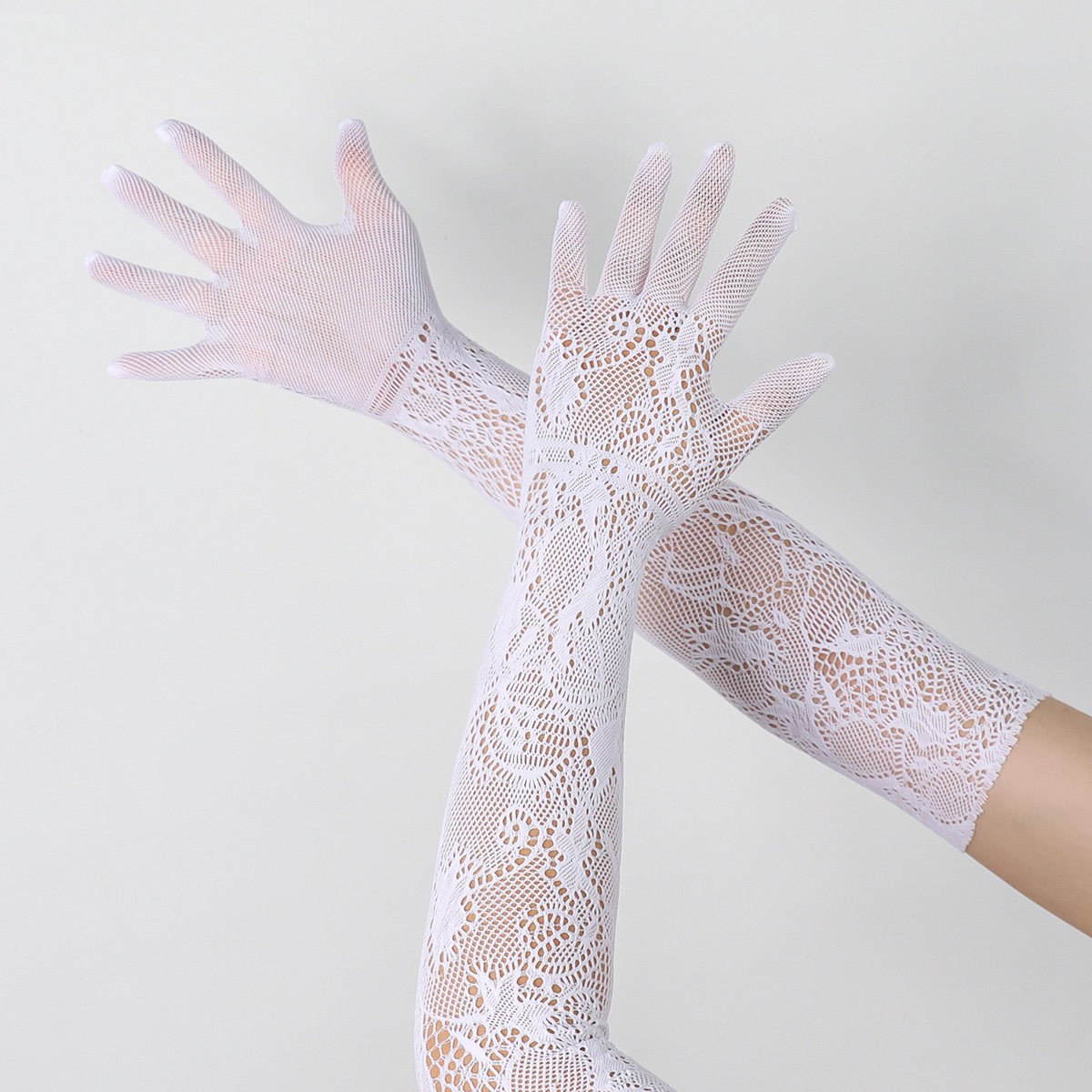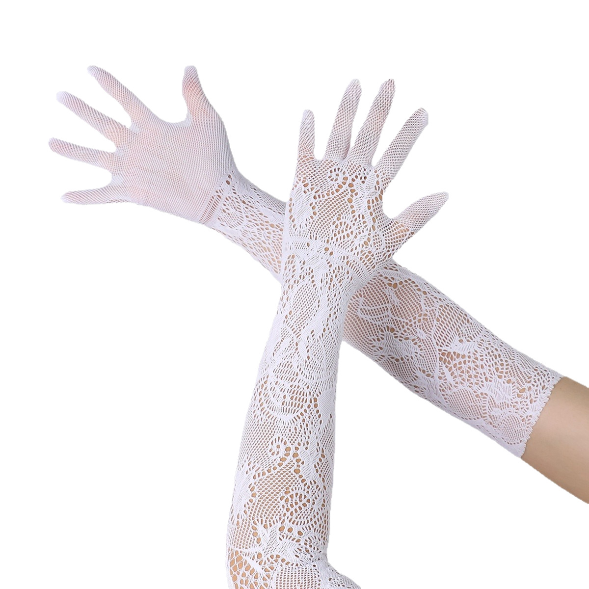 女士骑行防晒手套性感新娘手套长款网状提花蕾丝手套弹力手臂跨境