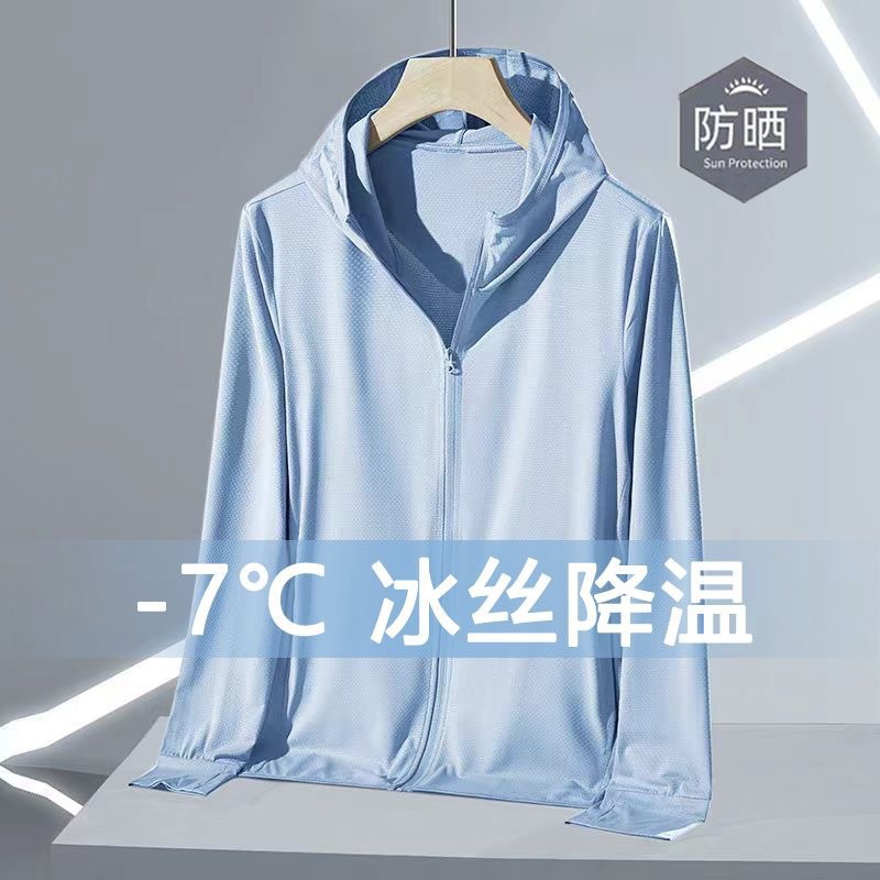 2025男装网眼冰丝防晒衣男士夏季薄款开衫连帽透气户外钓鱼外套