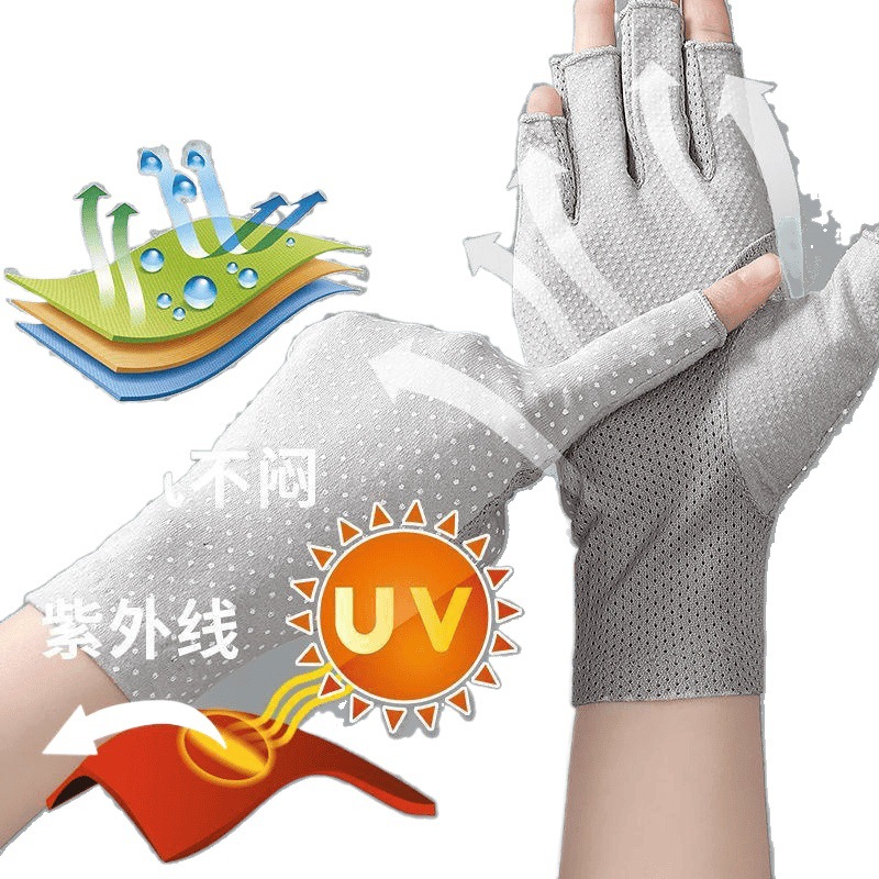 夏季防晒手套男士半指薄款钓鱼防滑开车半截手套驾驶骑行露指手套