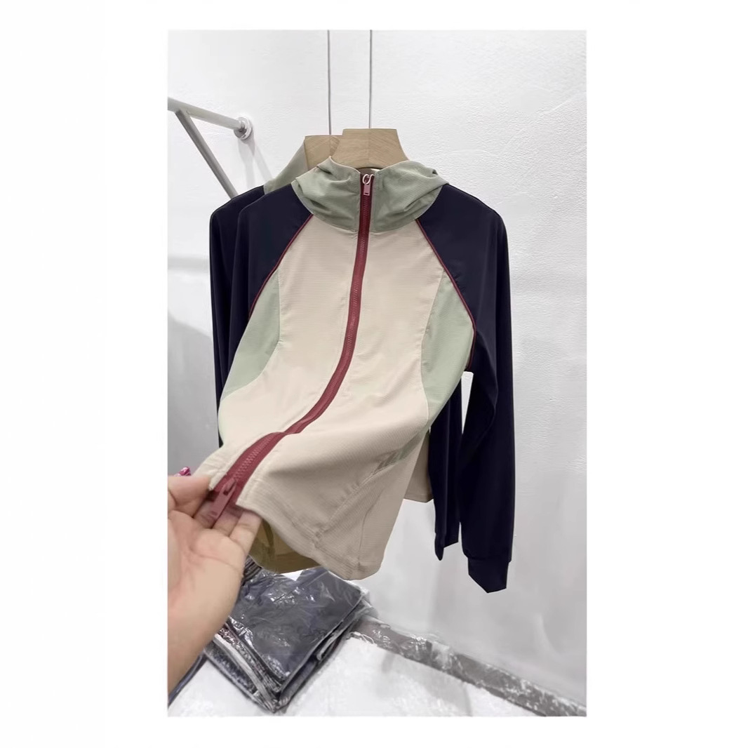 连帽撞色拼接外套女夏季2025年新款小个子防晒衣女锦纶防晒服透气
