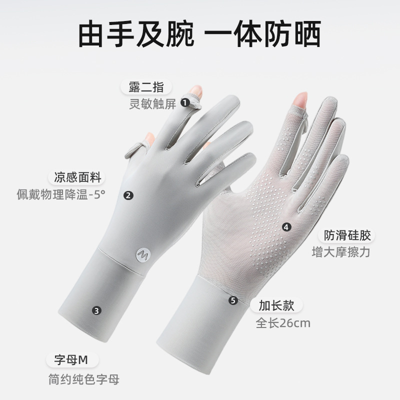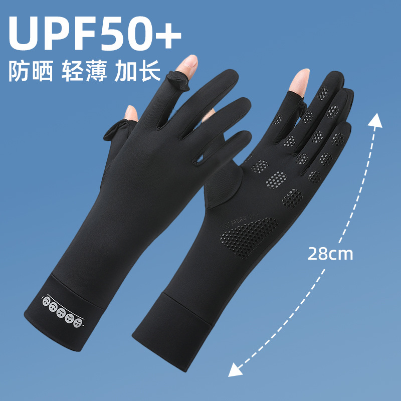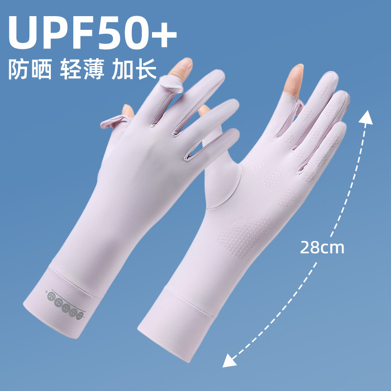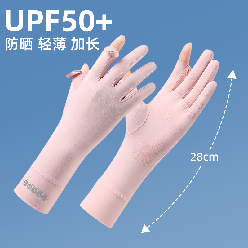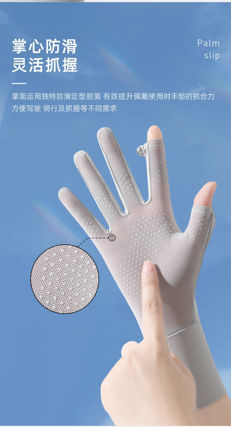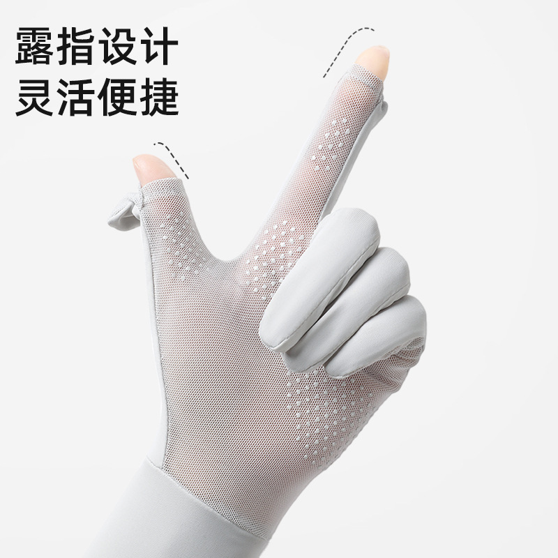 防晒手套女士夏季冰丝透气防滑加长翻盖防紫外线开车锦纶中长薄款
