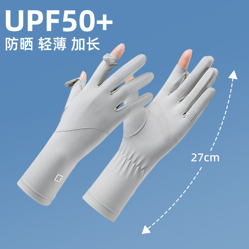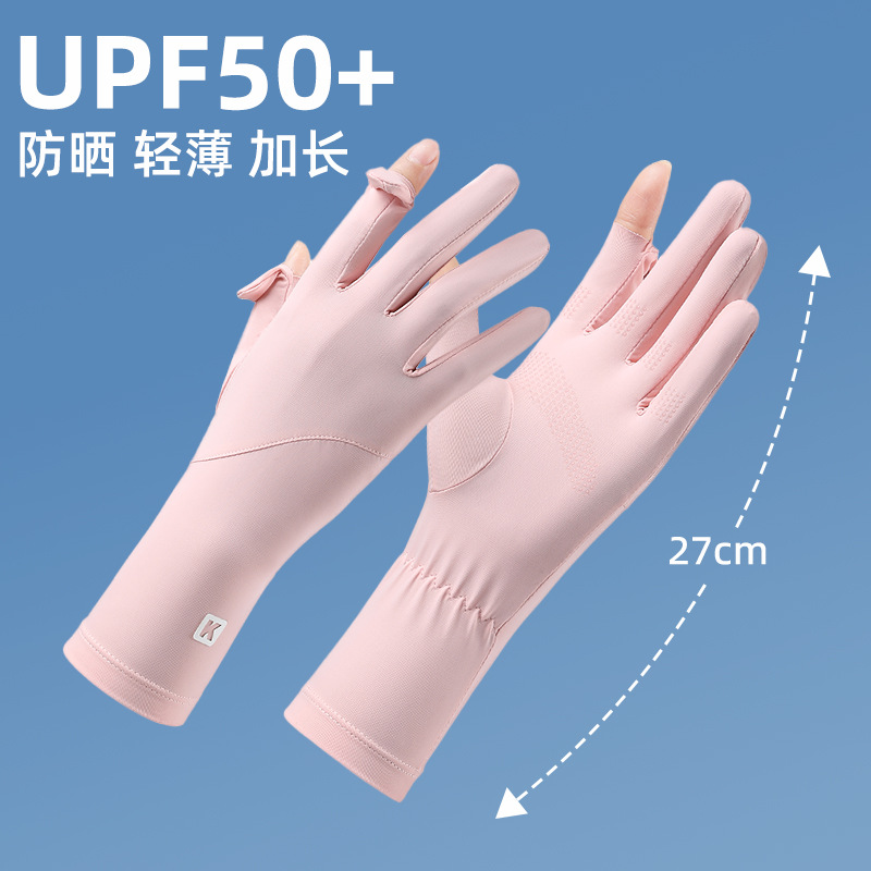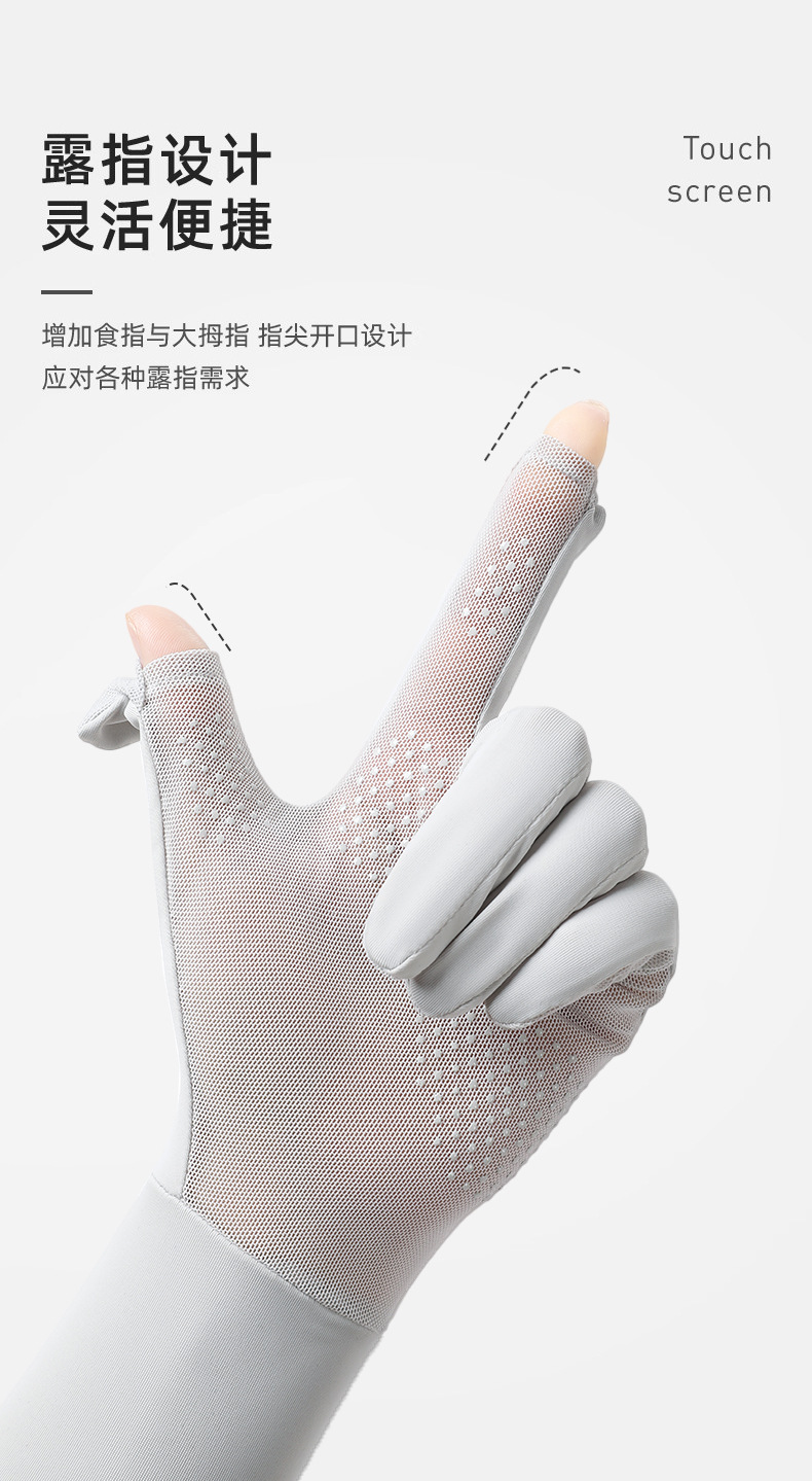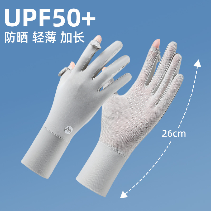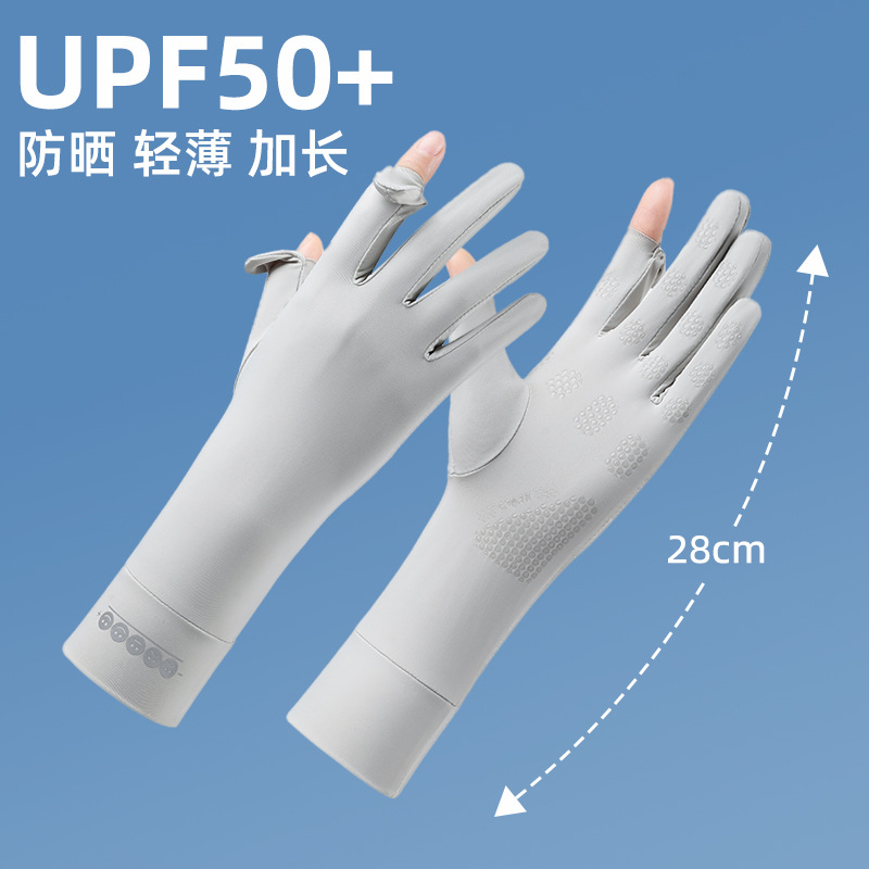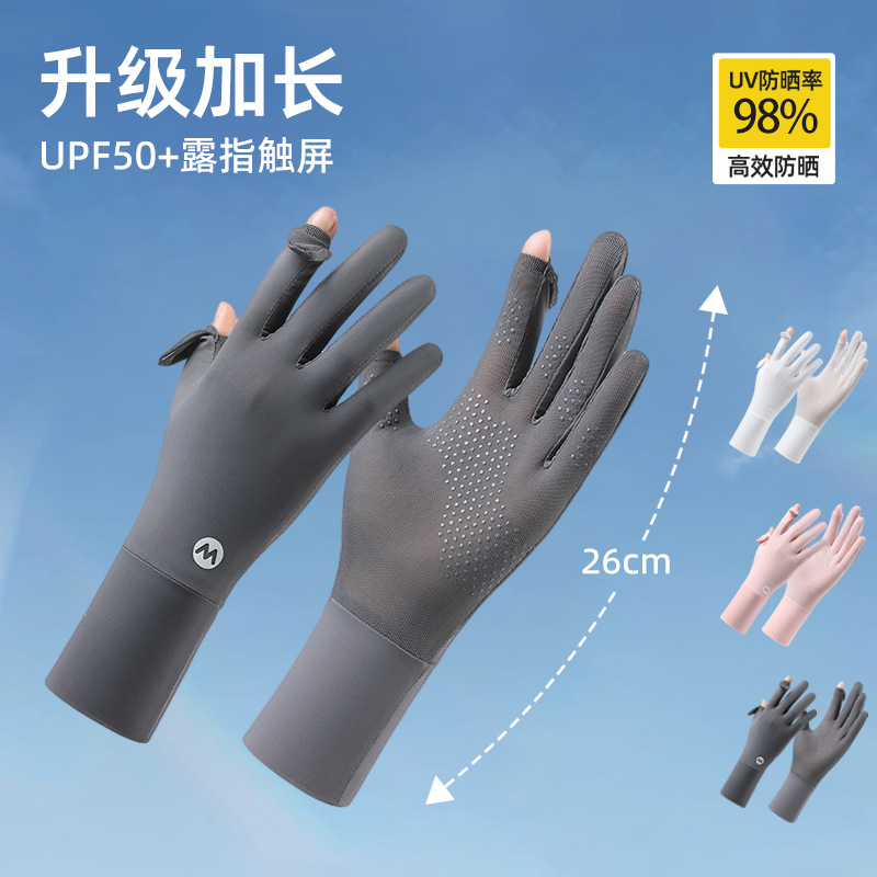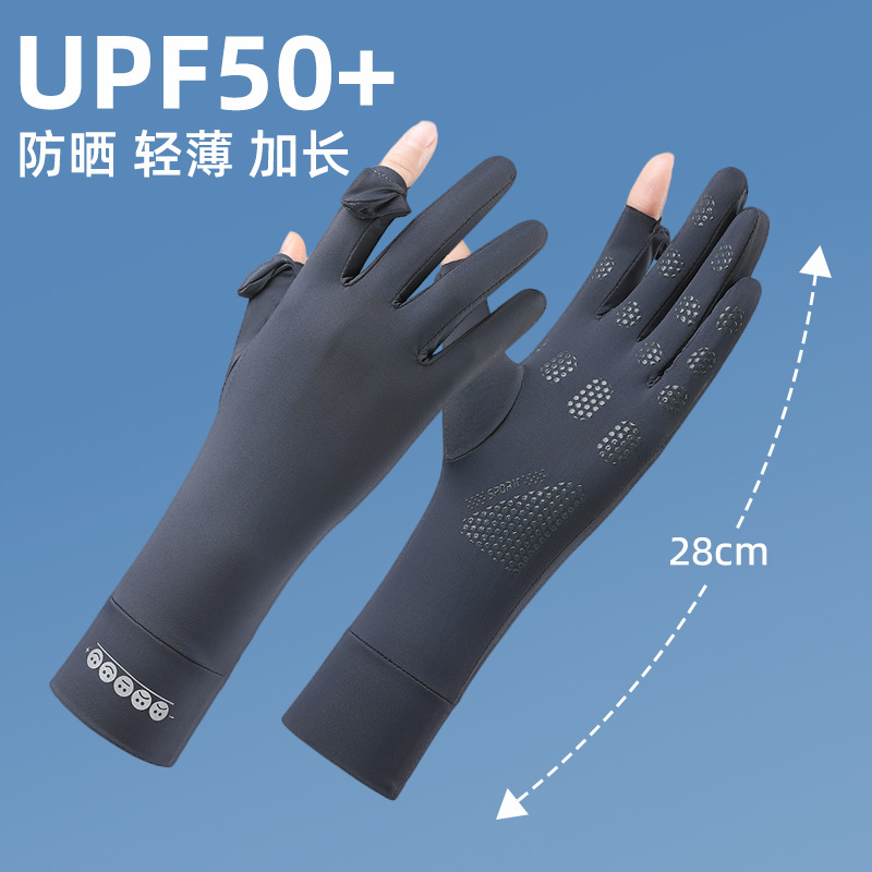 防晒手套女士夏季冰丝透气防滑加长翻盖防紫外线开车锦纶中长薄款