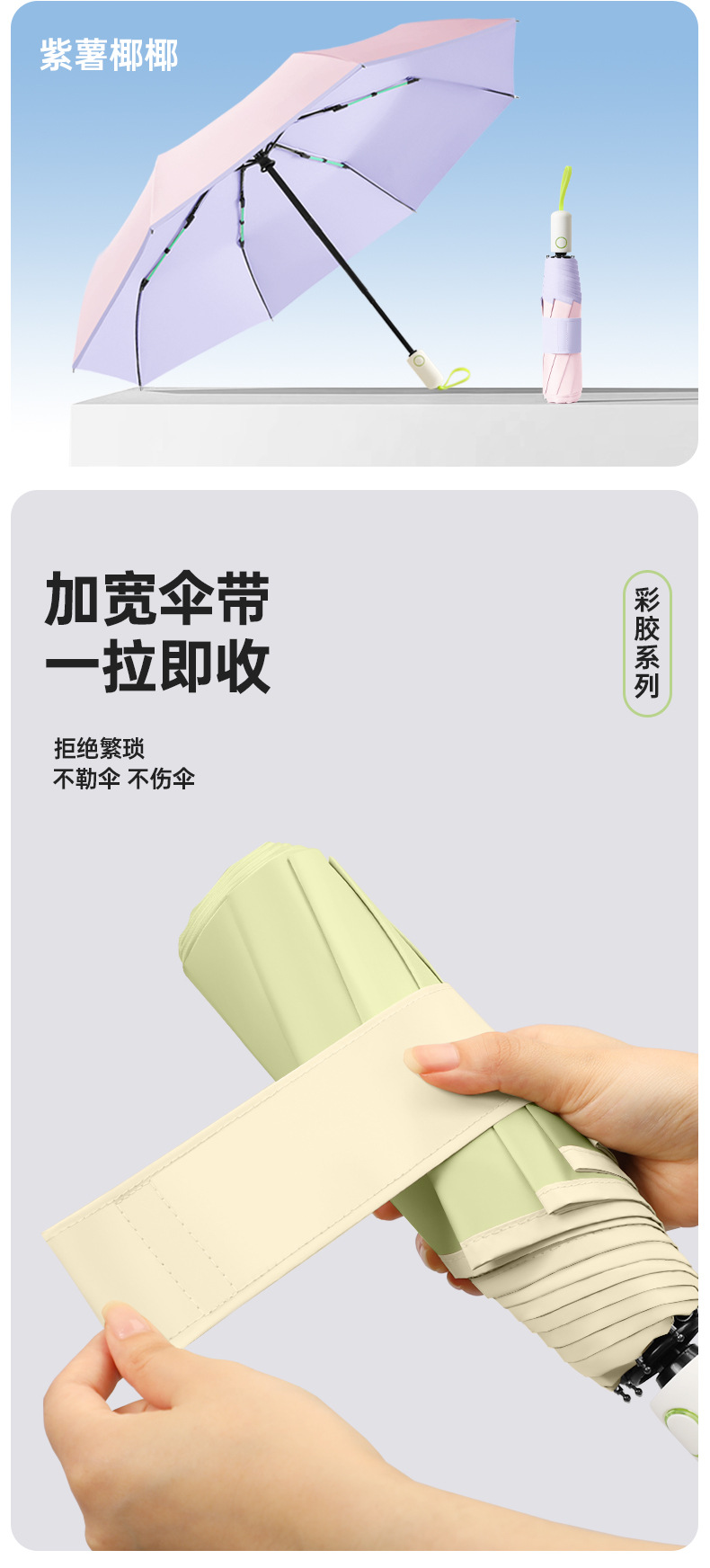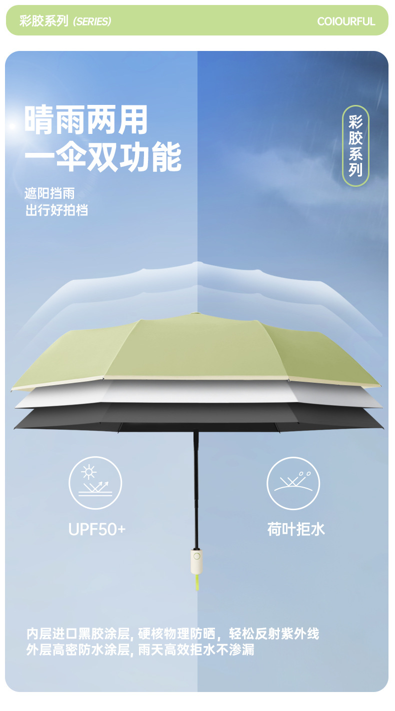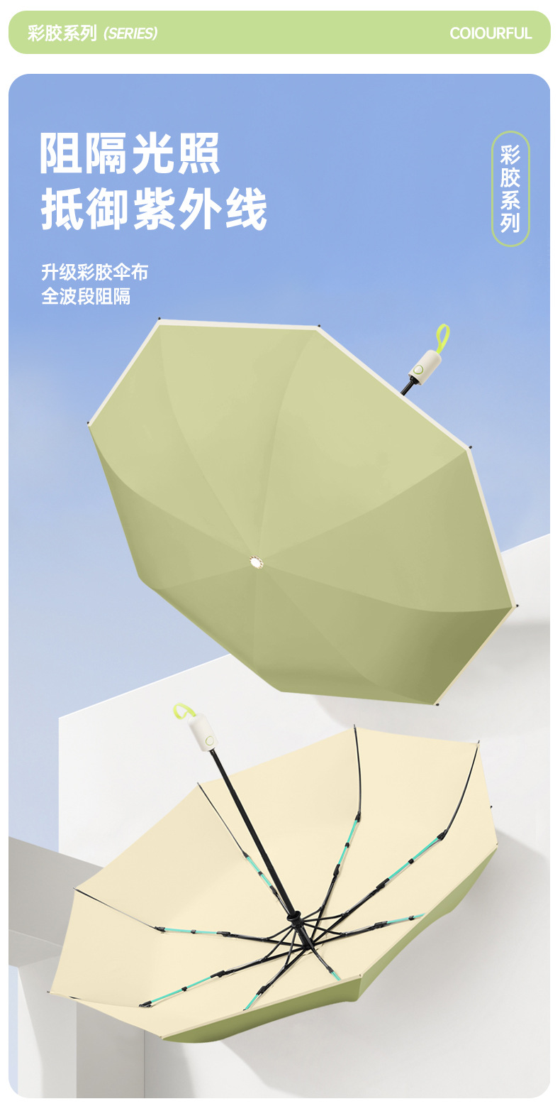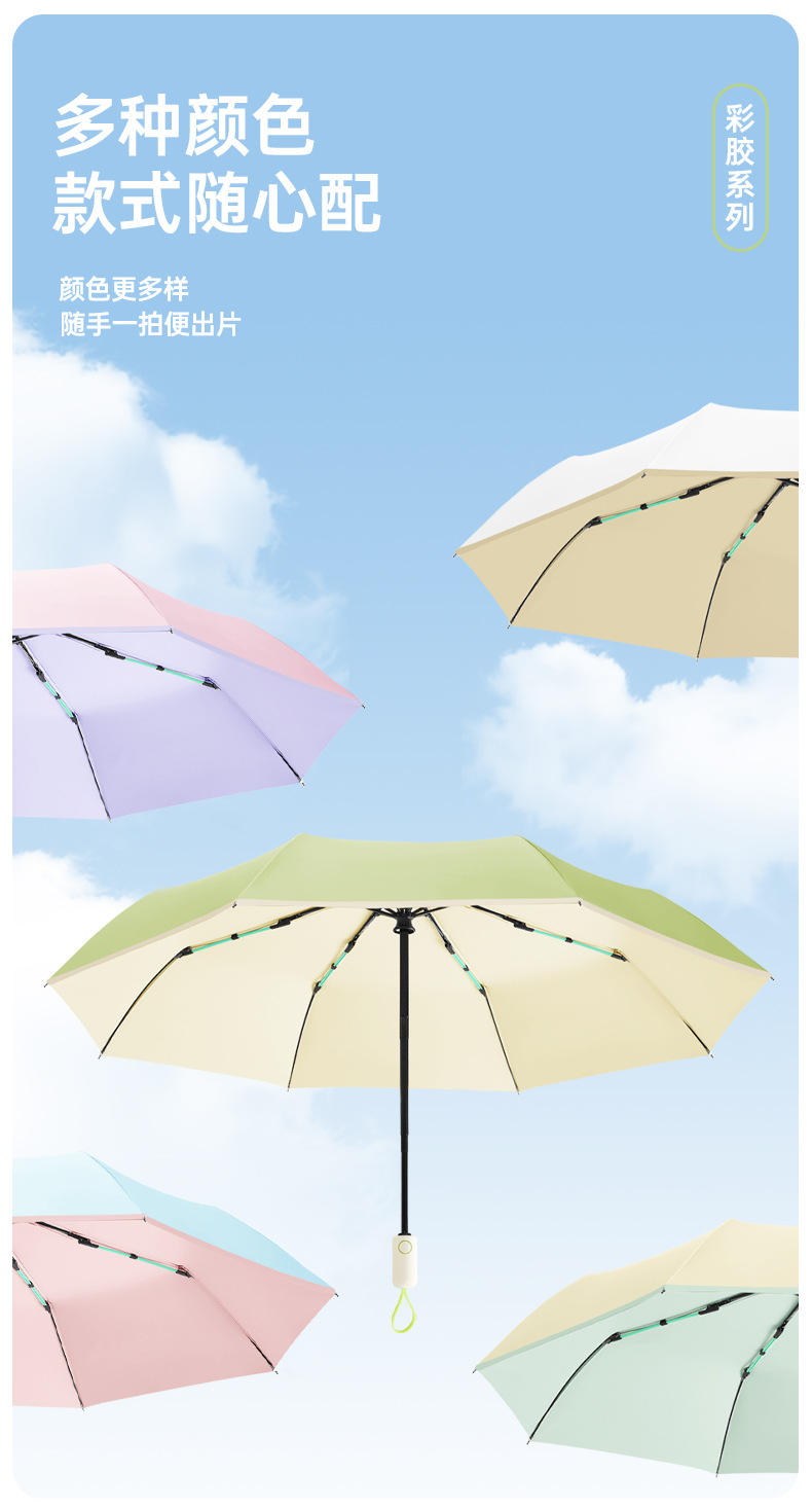 三折8K自动节节收晴雨两用遮阳伞彩胶防晒太阳伞一件代发加印LOGO