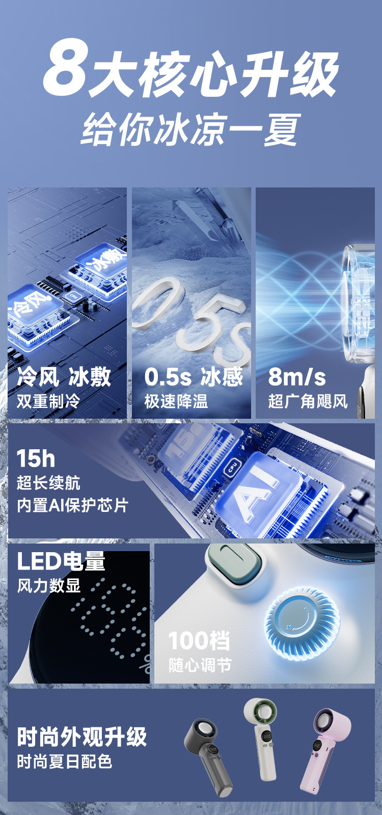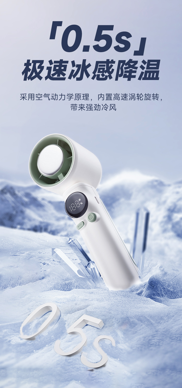跨境新涡轮高速冰敷手持小风扇户外便携usb充电100档数显制冷风扇