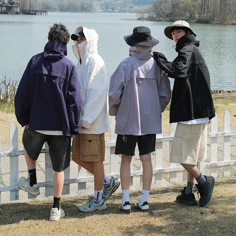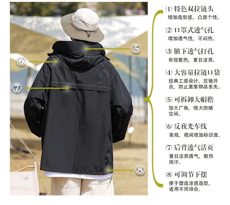 防晒衣女钓鱼服男拉链宽松情侣外套夏骑行反光可夜视印LOGO