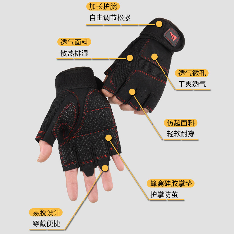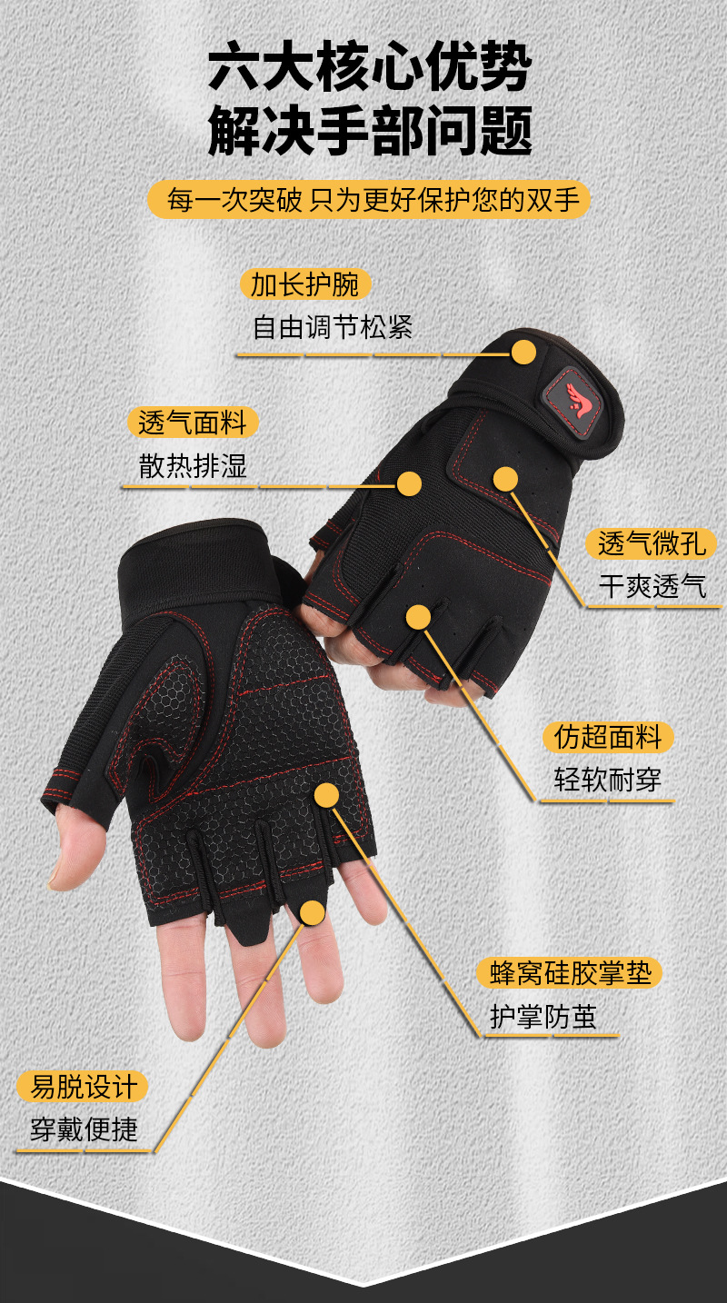 健身手套户外半指卧推跨境撸铁减震防滑哑铃运动透气骑行举重手套