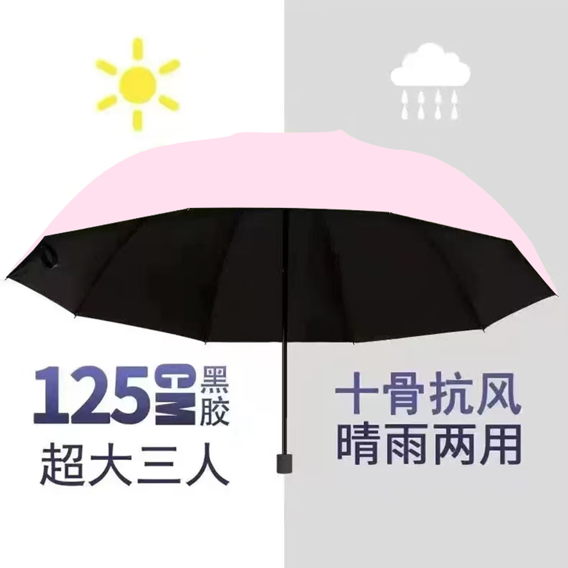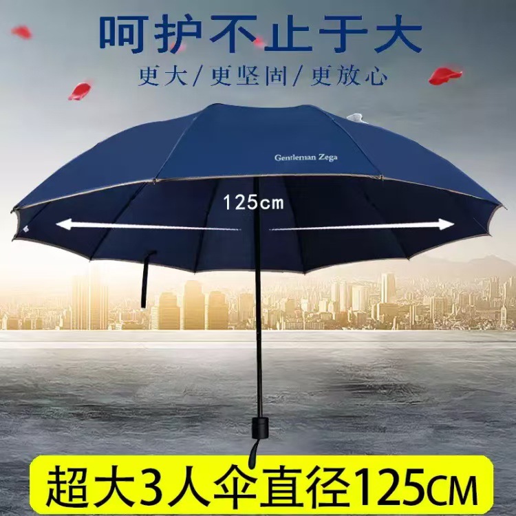 加大三人商务伞防雨防晒晴雨伞手动折叠广告伞LOGO图案印刷厂家