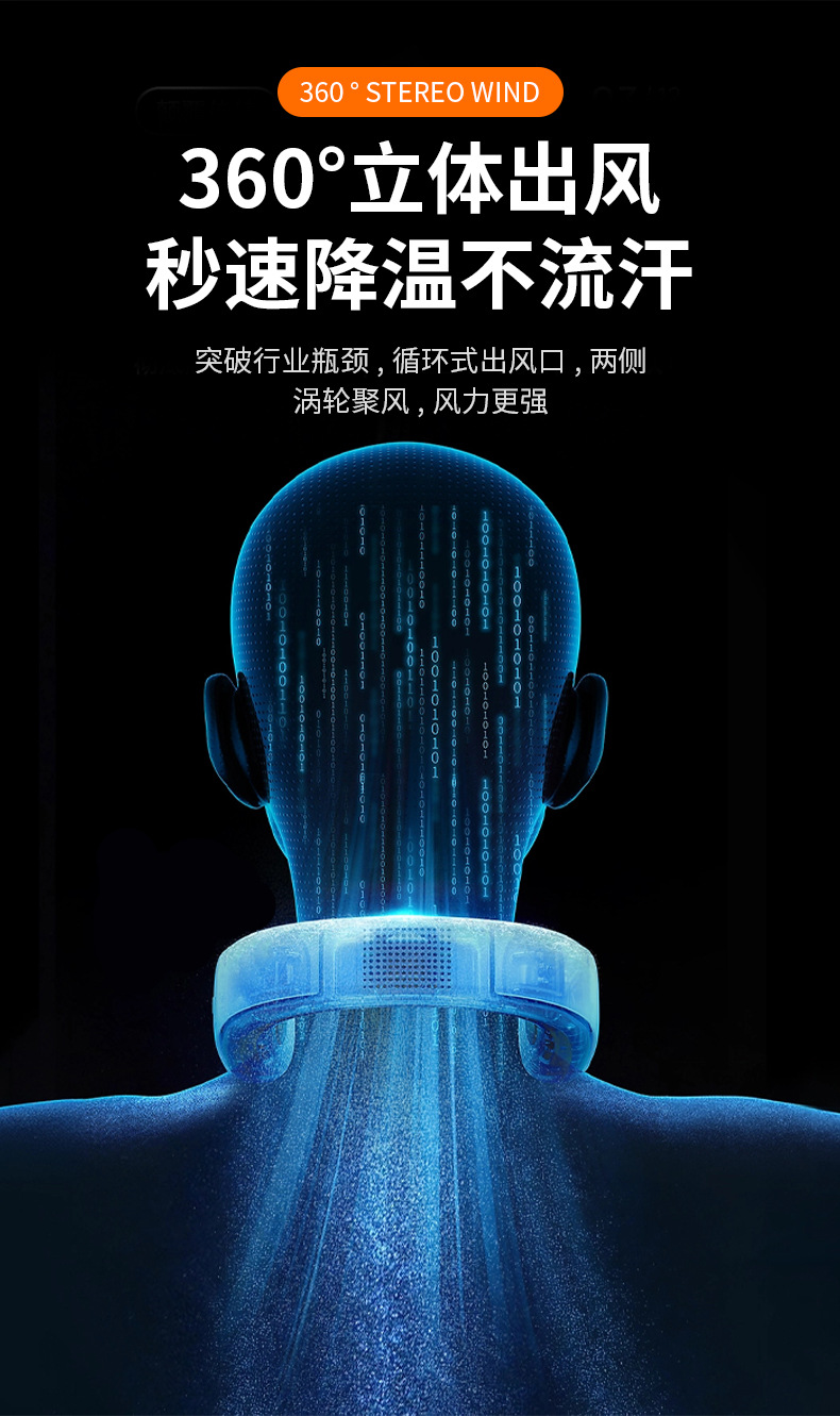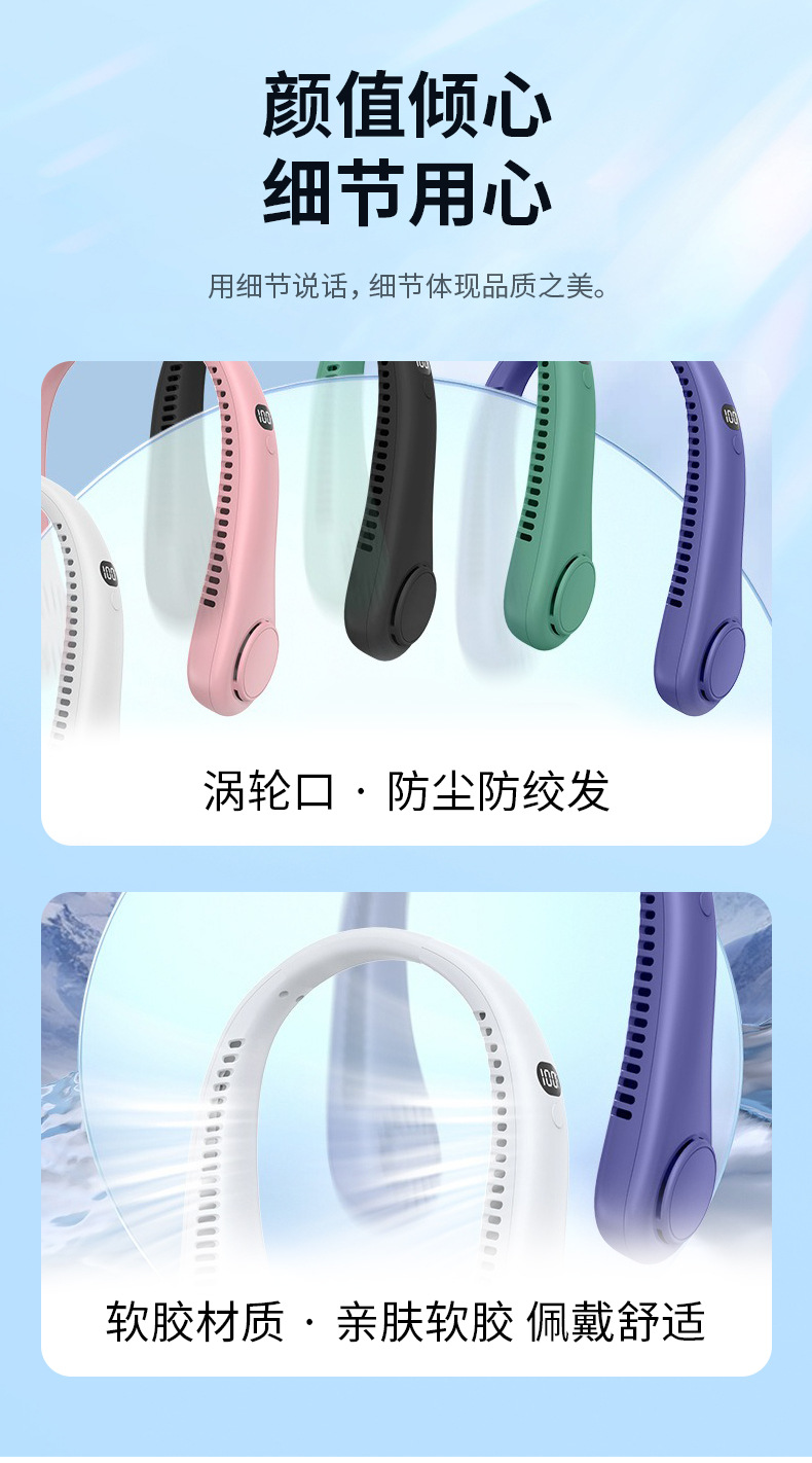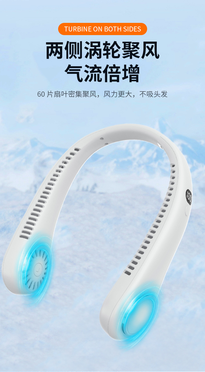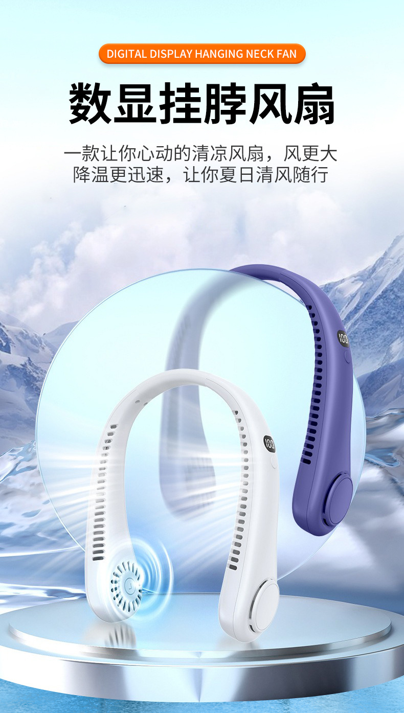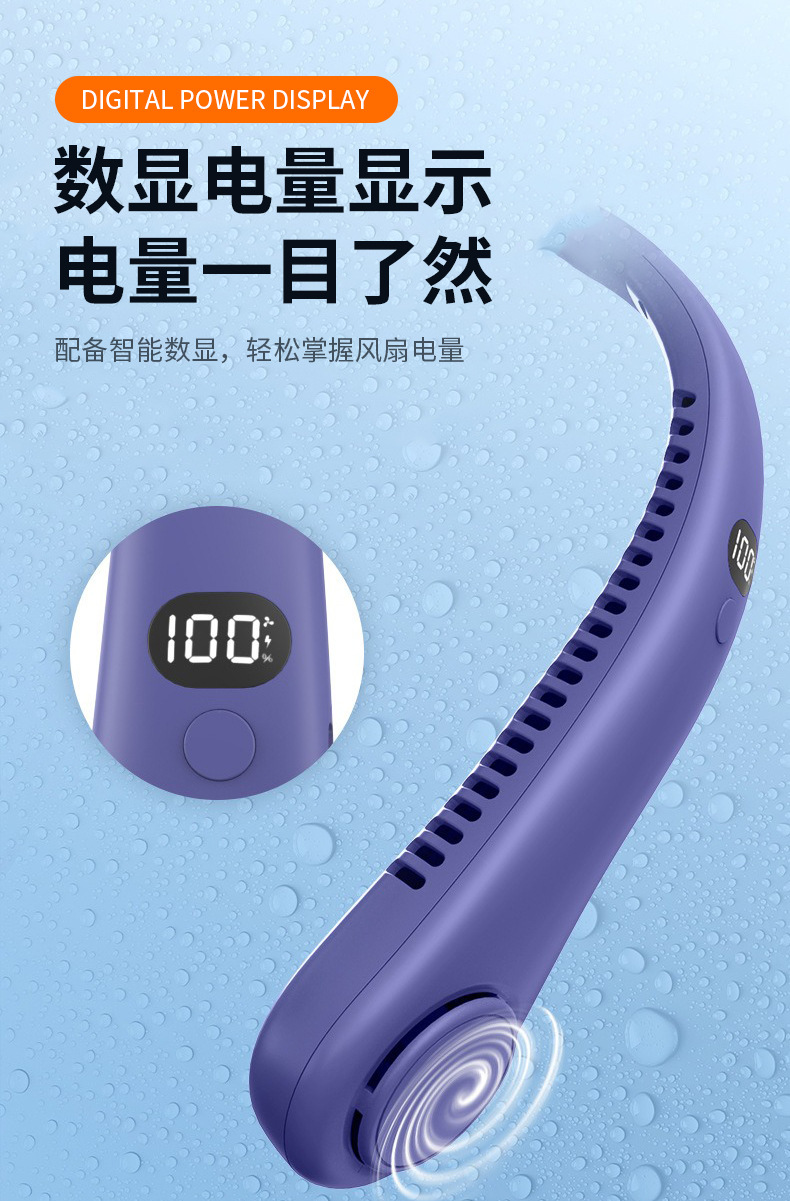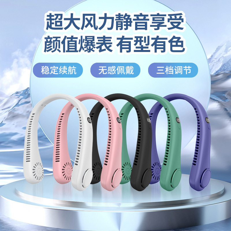 夏季新款挂脖小风扇数显太空舱立体出风户外随身风扇便携式批发