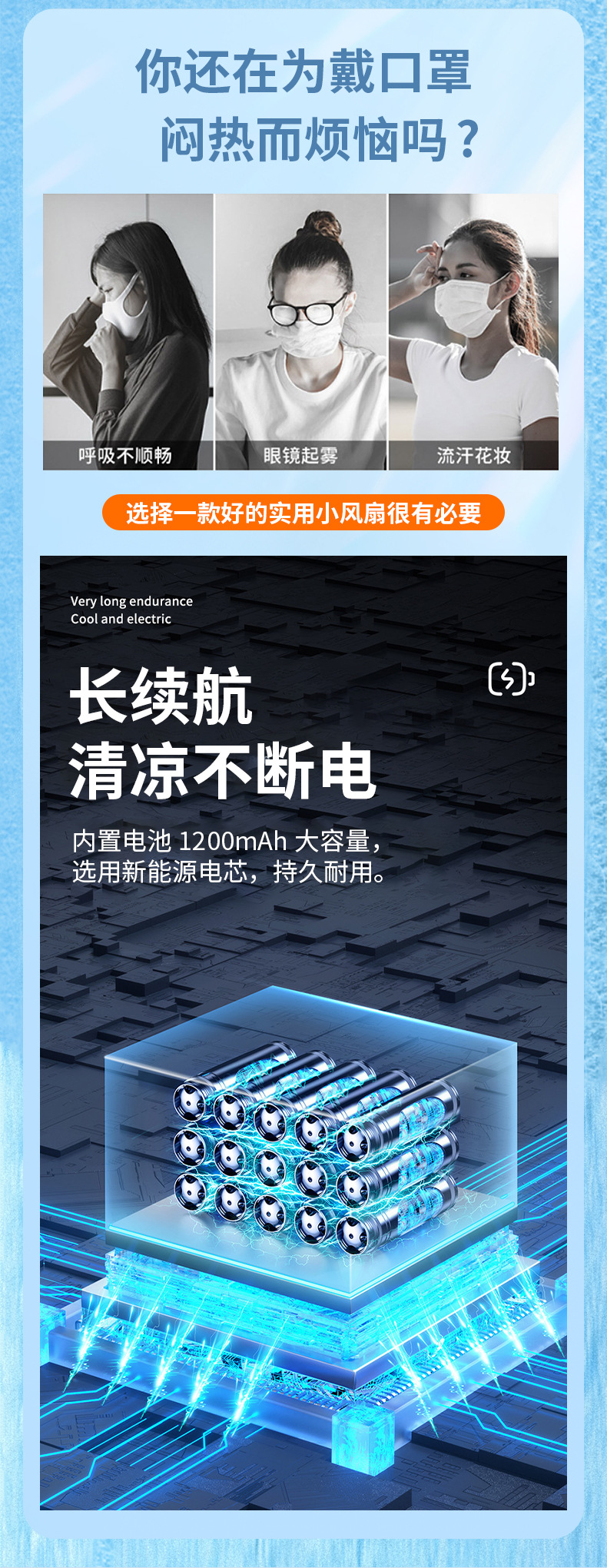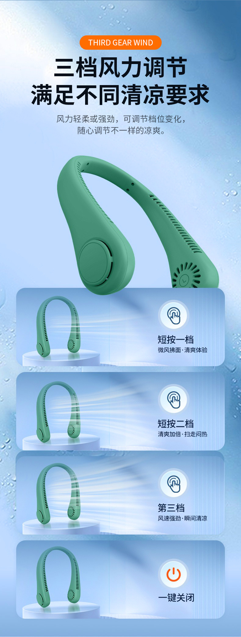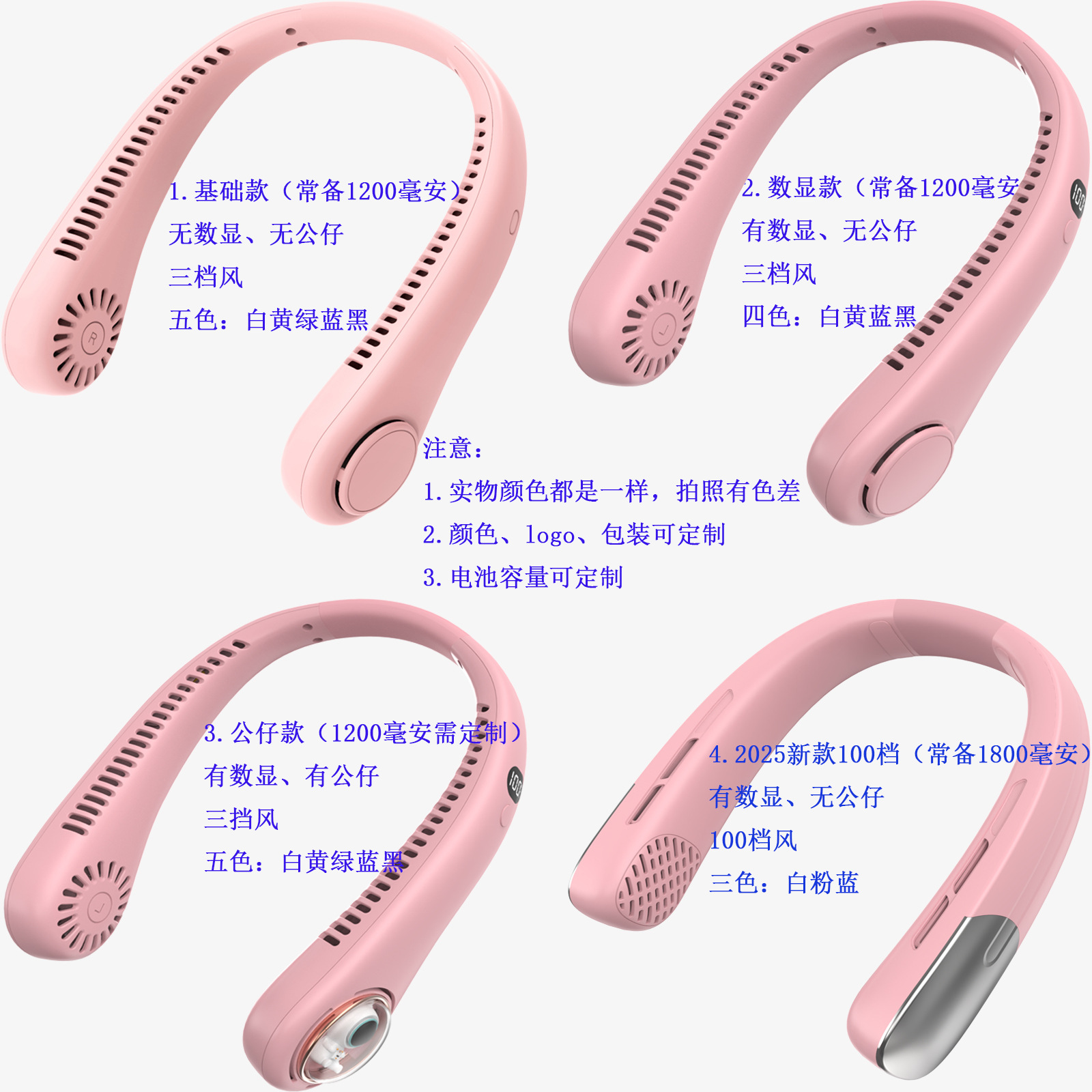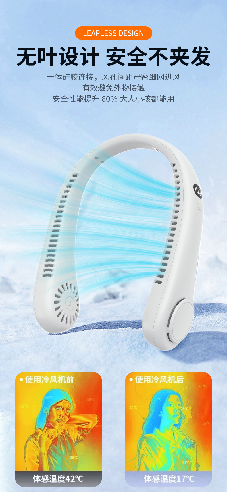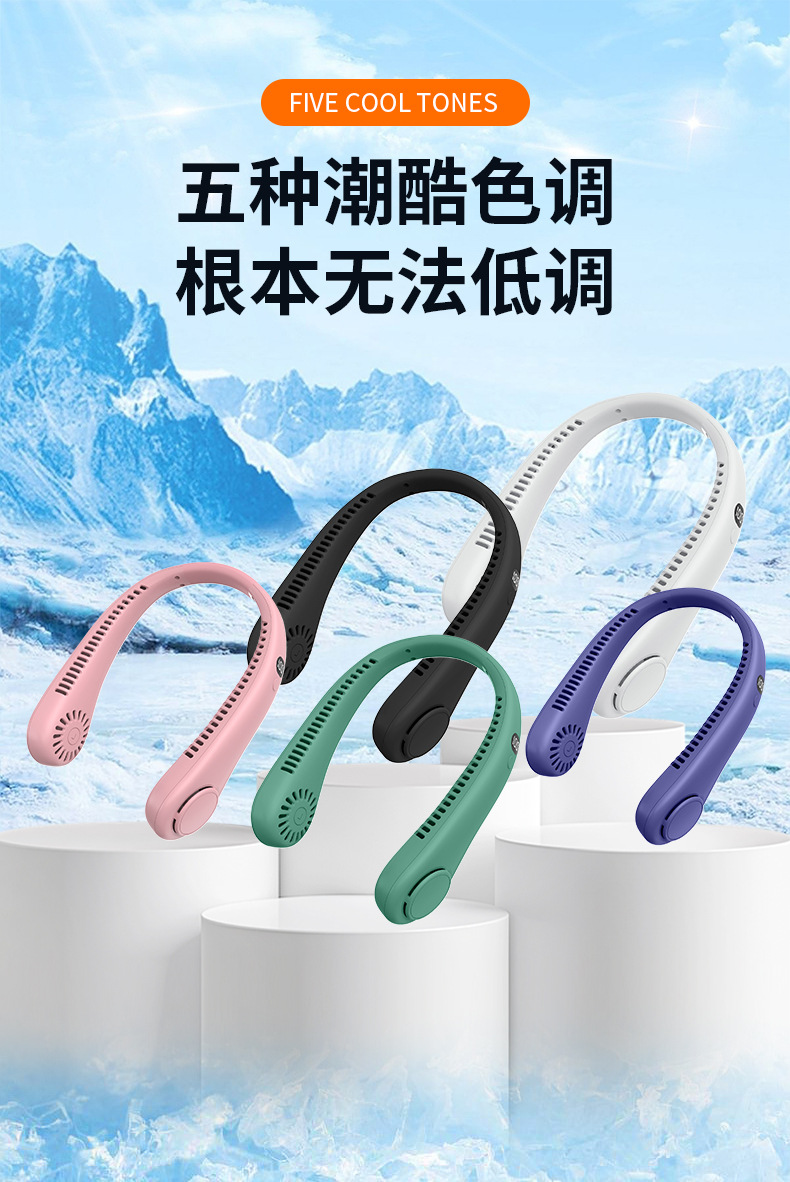 夏季新款挂脖小风扇数显太空舱立体出风户外随身风扇便携式批发
