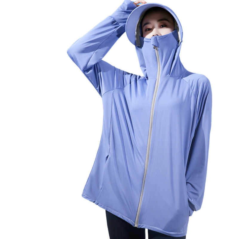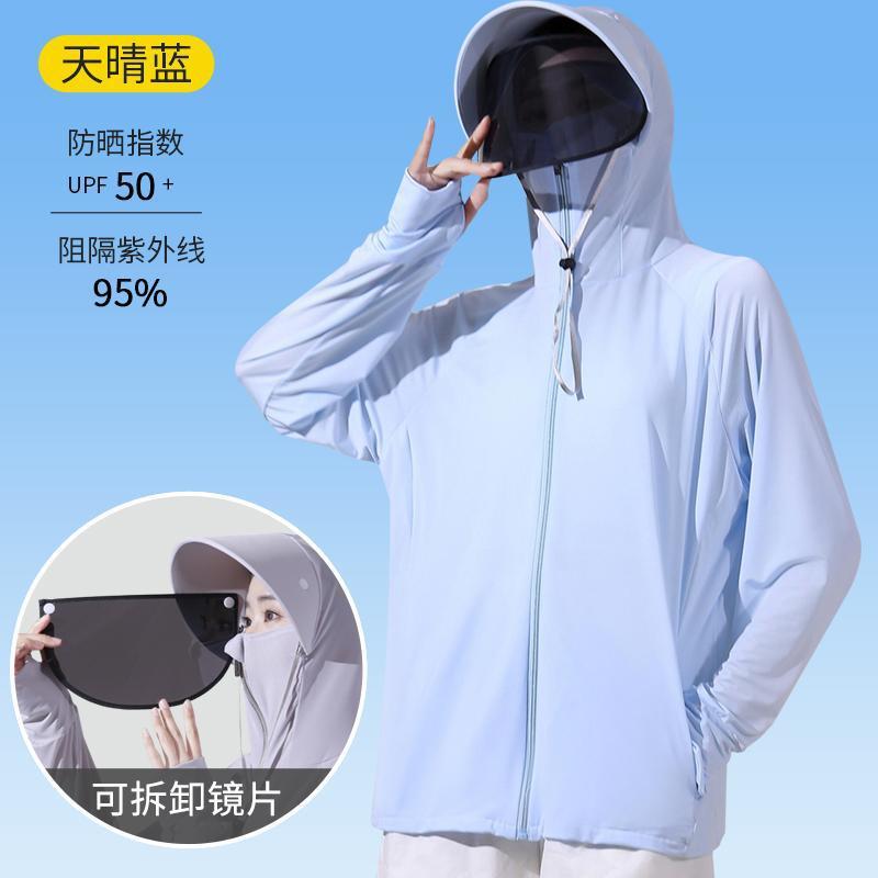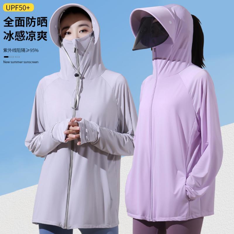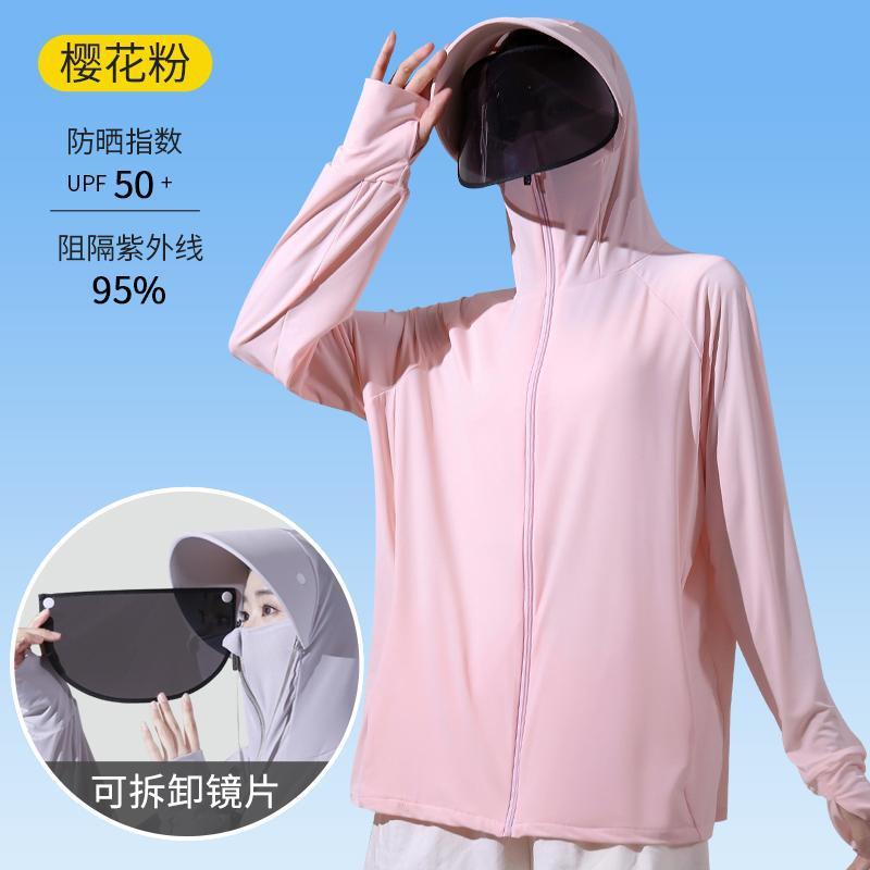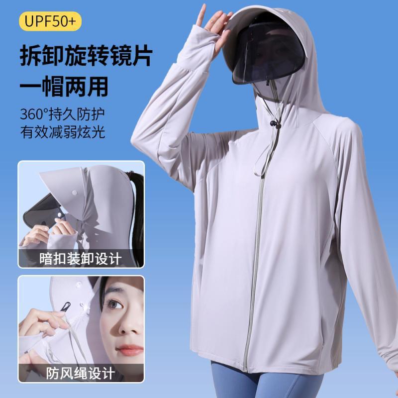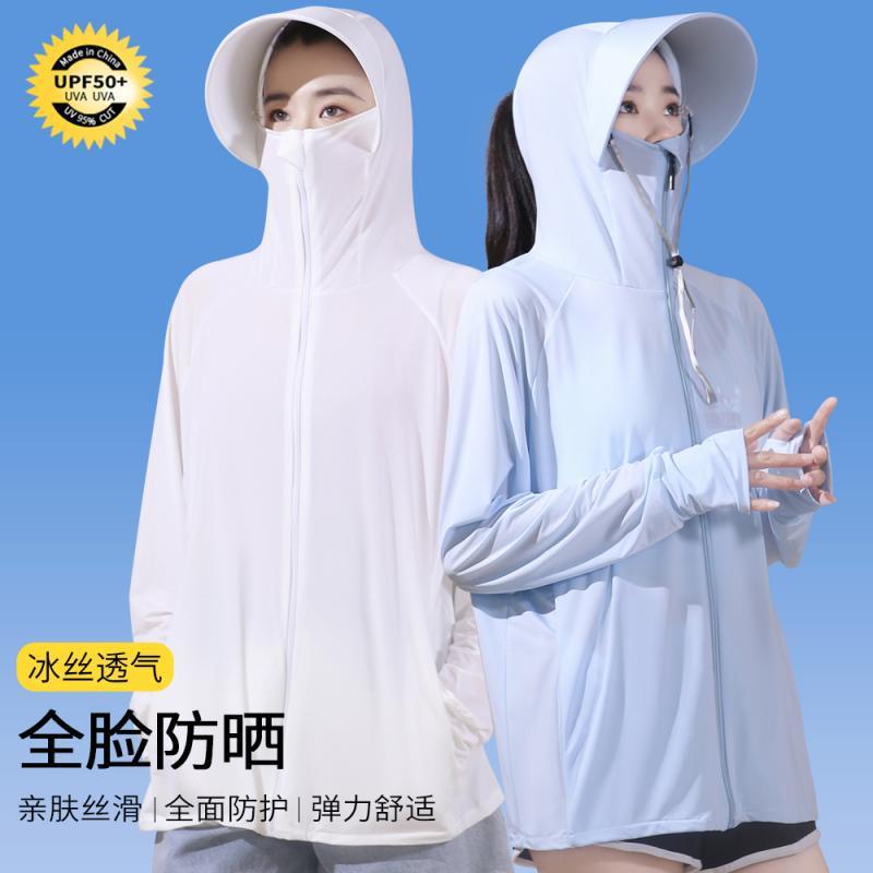 衣女夏冰丝2024新款户外遮阳薄款透气连帽外套骑行遮脸服跨境批发