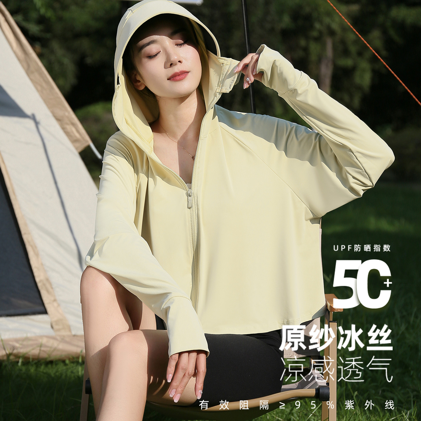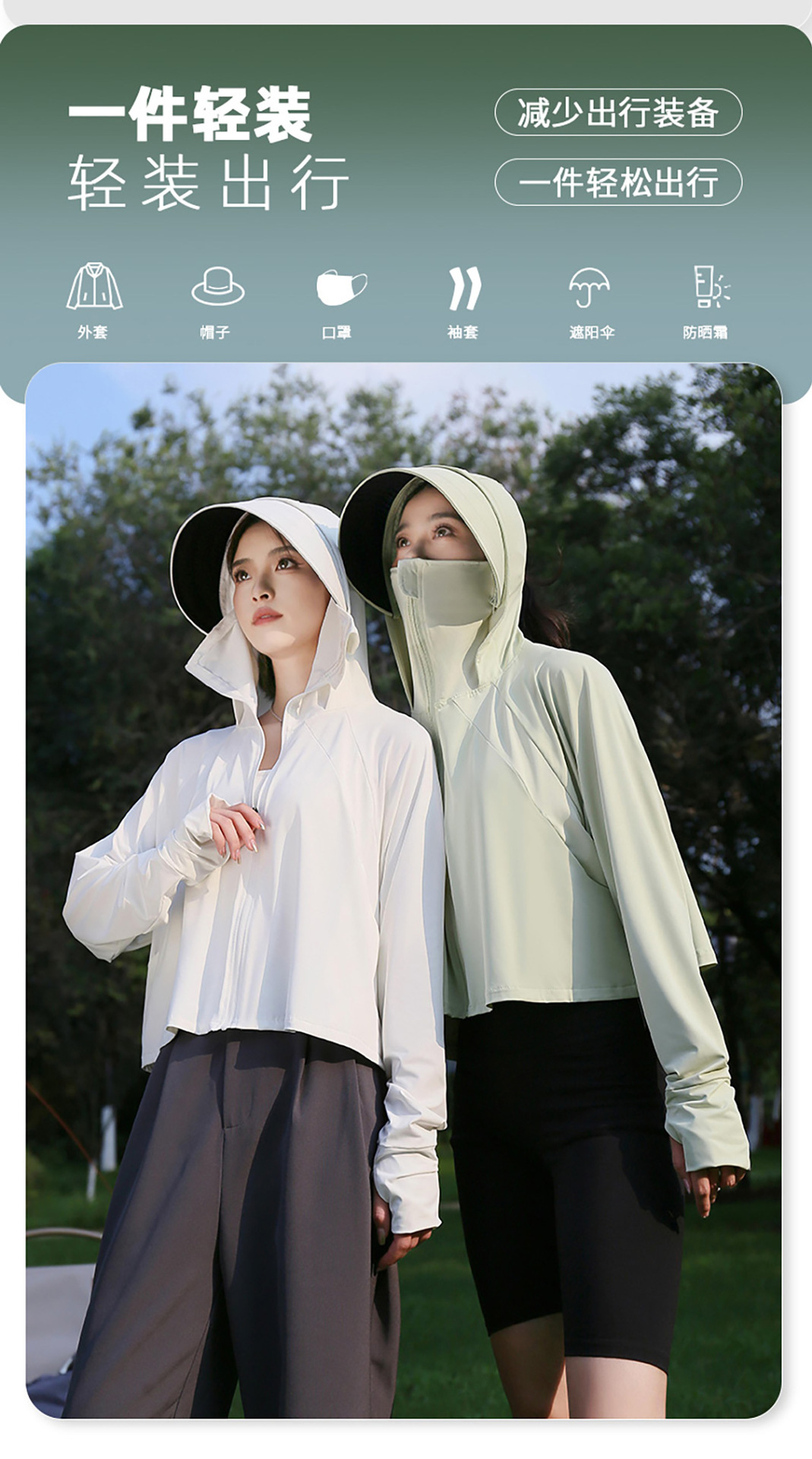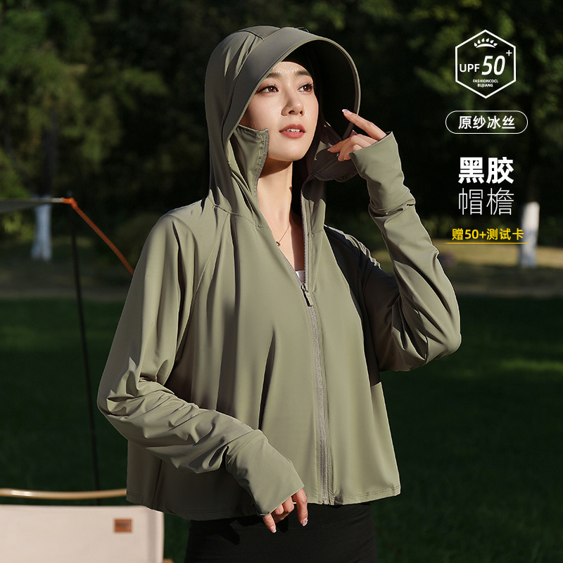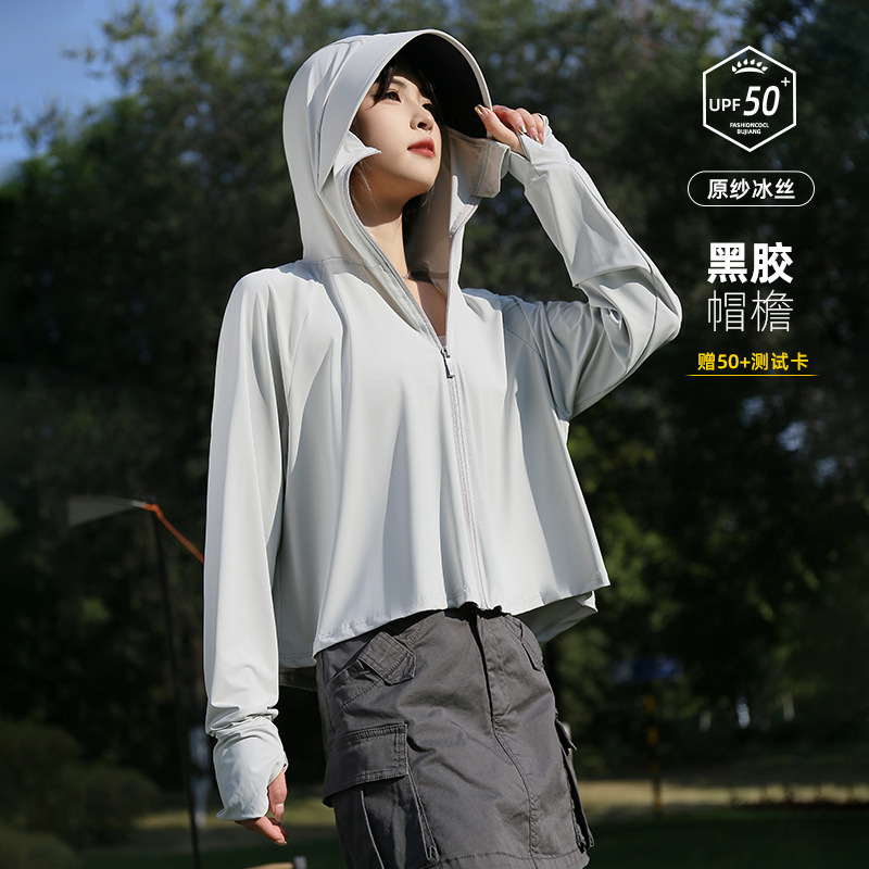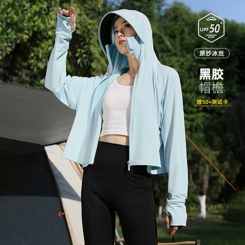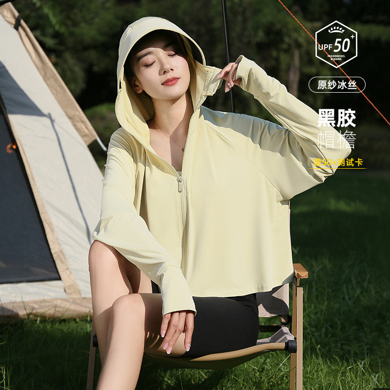2025夏季防晒衣女士户外防紫外线黑胶帽檐冰丝原纱凉感防晒服外套